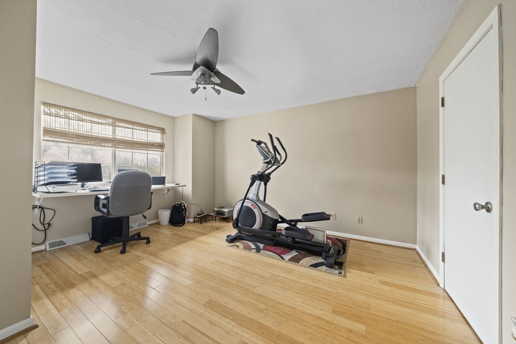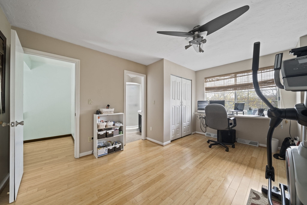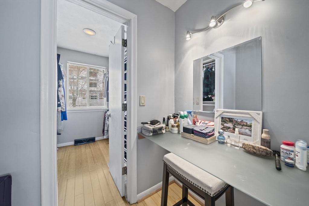 Welcome to this beautifully maintained three-story condominium offering approximately 1,500 square feet of comfortable and thoughtfully designed living space. Built in 1984, this inviting townhouse blends classic features with modern updates. The kitchen is both stylish & functional, featuring stainless steel appliances, solid countertops, and a center island—perfect for everyday living & entertaining. The kitchen flows seamlessly into the sunken living room, creating an open & airy layout ideal for gatherings, complete with a wood burning fireplace. A sliding glass door leads to a private outdoor deck, extending your living space even further.There are 2 well-appointed ensuite bedrooms, one with a walk-in shower & the main bath with a tiled tub/shower combination. This home showcases hardwood flooring and plenty of storage. Additional highlights include a dedicated laundry room, main walk in closet, and central air. Conveniently located near Route 3 and Derby Street Shops.