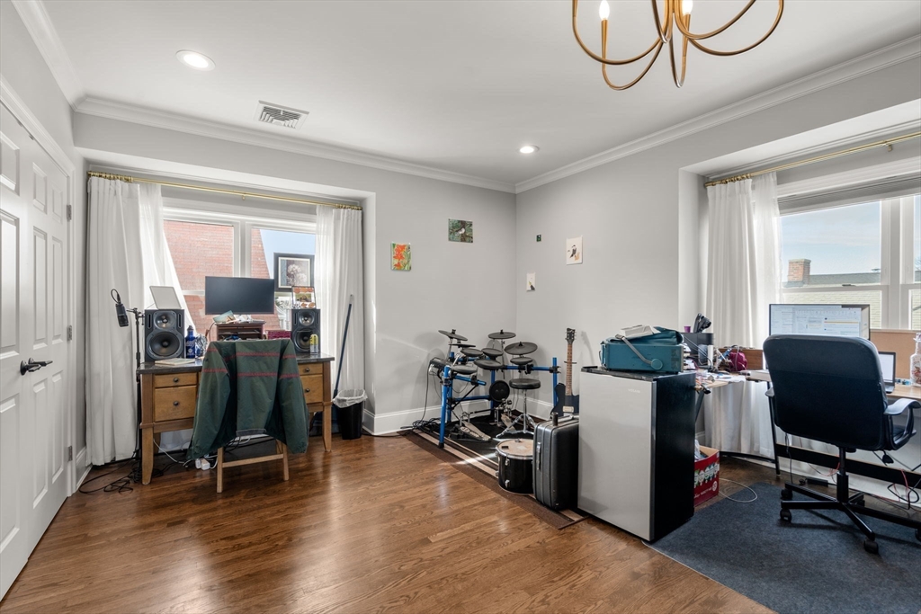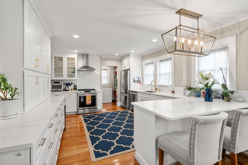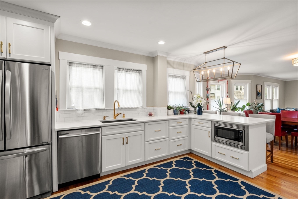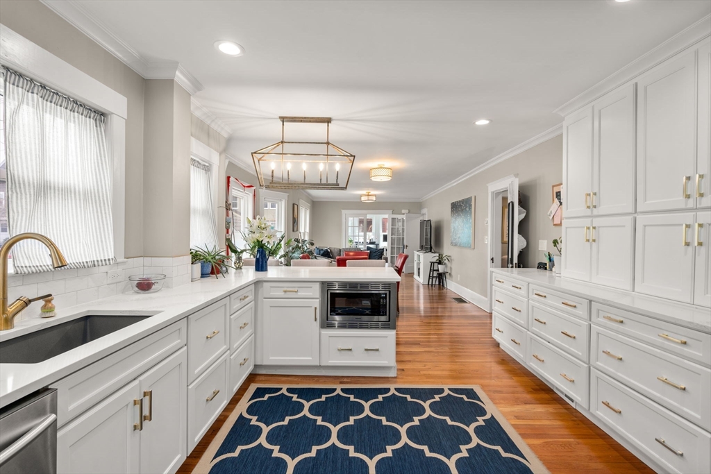 Situated on a pronounced corner lot is an exquisite two family residence. The home underwent an extensive restoration and renovation which included a third floor addition. Comprised of two palatial units. The first floor is an expansive and open residence offering 2 bedrooms, 1 bathroom and office. The upper floor duplex presents 5 bedrooms, 2 full bathrooms, a lofted study and direct access to front facing deck space overlooking manicured grounds. Accented by a 3rd floor primary bedroom offering 3 exposures and a spa inspired bathroom. Both units feature private laundry, central HVAC, hardwood floors and tall ceilings. The kitchens are the envy of even the most discerning chef with abundant cabinet storage, spacious stone counters and stainless appliances. The building has 4 decks, off street parking for 6 cars and direct access to the basement with generous storage for all. A perfect opportunity for a primary home owner or investor looking for a turn key portfolio addition.