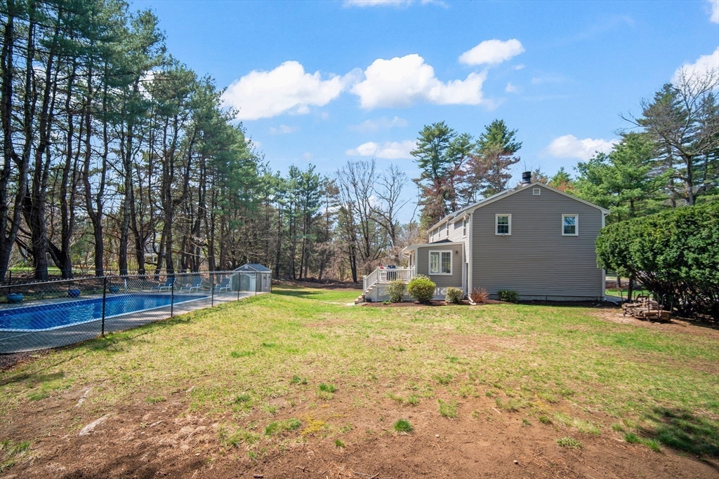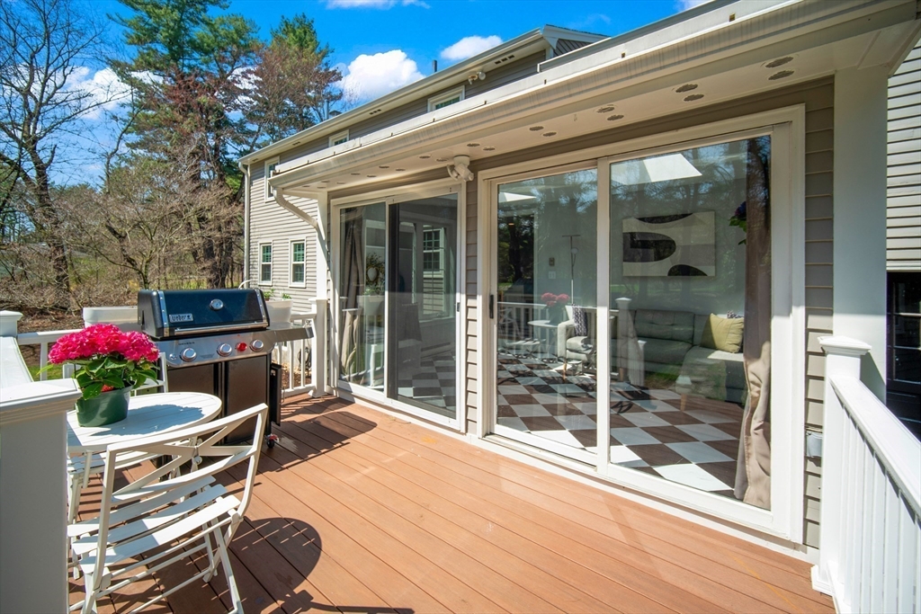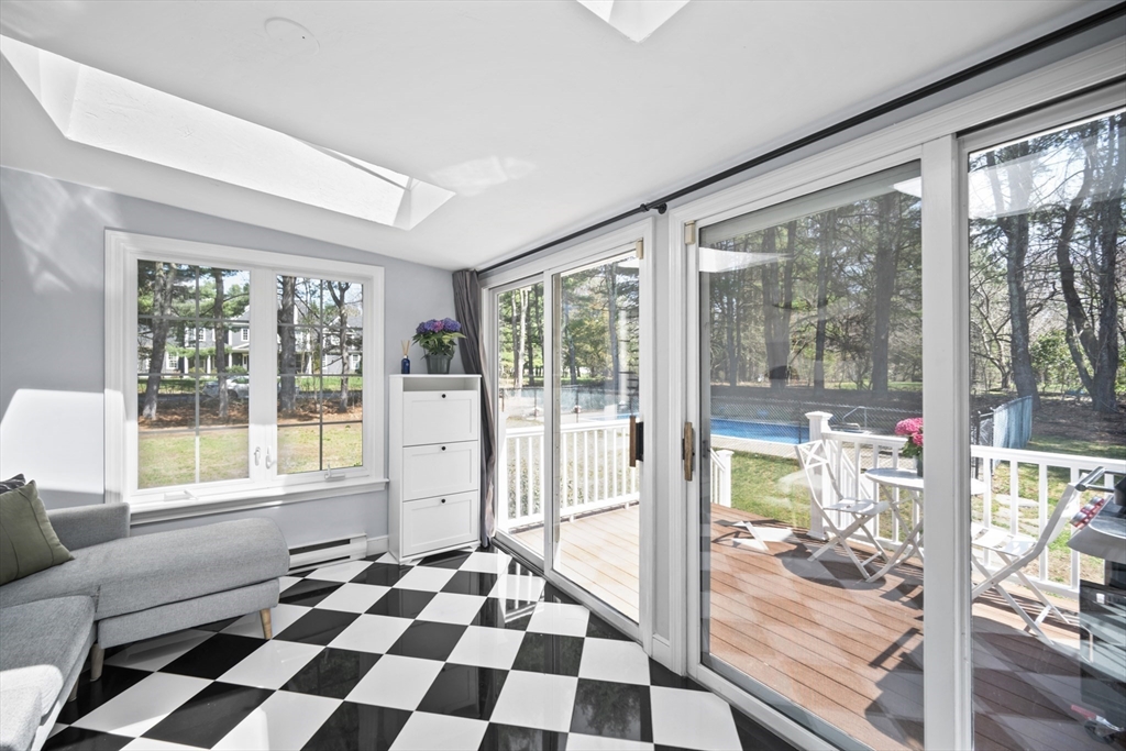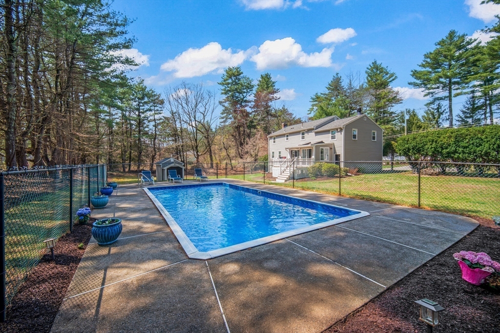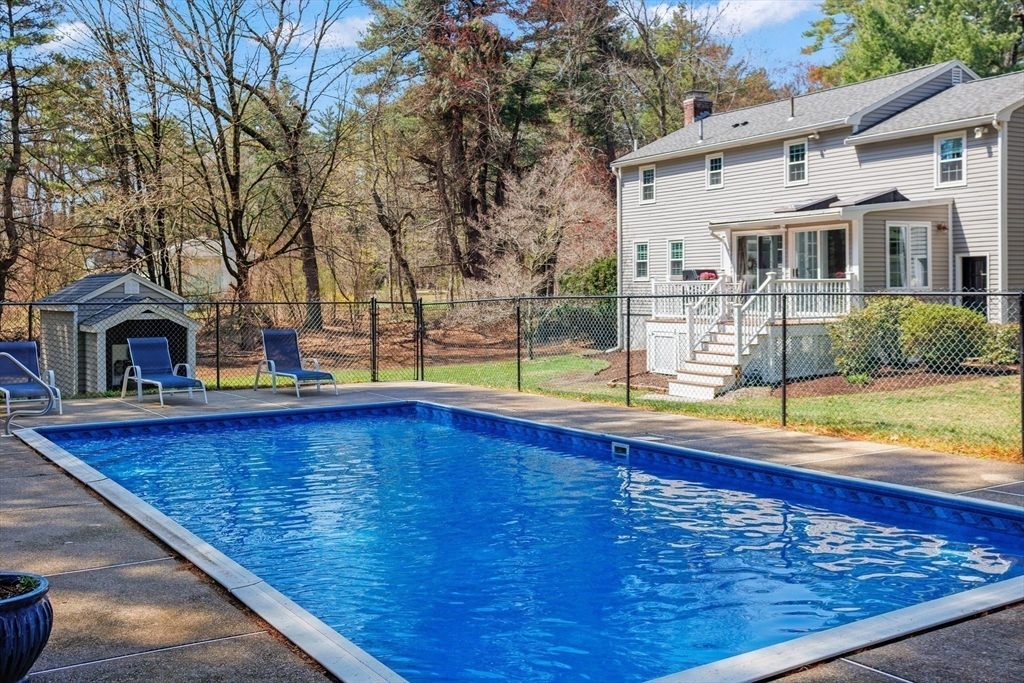 Guaranteed to check all the boxes! This gorgeous 4 bedroom, 2.5 bath colonial delivers on quality, style, floor plan & boasts an exceptional corner lot with an in-ground pool! All within a scenic walk to the Fairbank Community Center & Haskell Field + playground. Enjoy family & friends in the sun-filled white kitchen with stainless steel appliances, granite counters, center island & a breakfast bar, all ideally open to the dining area! Sip your morning coffee in the skylit 4 season sun rm with walls of glass & inspirational views! Light a fire in one of this homes TWO fireplaces on chilly evenings. The livingrm offers beamed ceilings & windows galore, with plantation shutters! Work from home in the 24x14 familyrm with custom built-ins which provide 2 works stations! Primary bdrm has a beautiful bathrm with a tiled shower. Bdrms are nicely proportioned & the renovated full bath is gorgeous! A field of dreams level corner lot on a quiet cul-de-sac! Hdwd flrs, Gas heat, C/A, MINT!