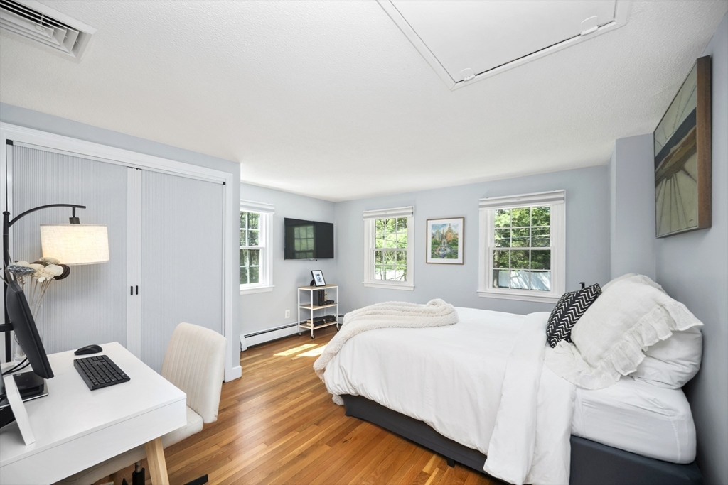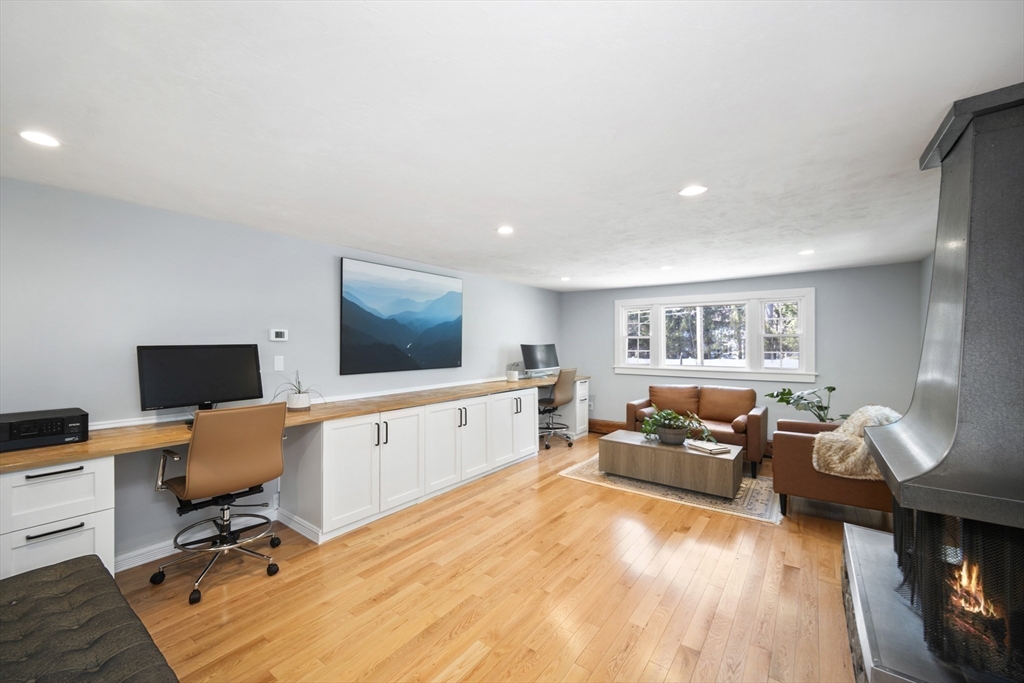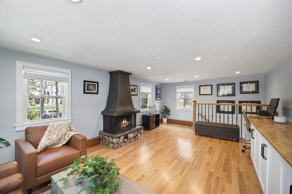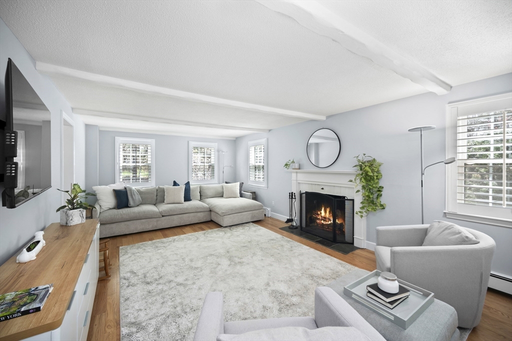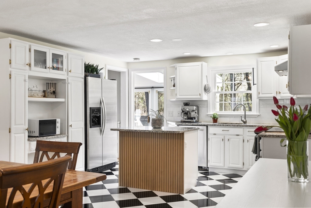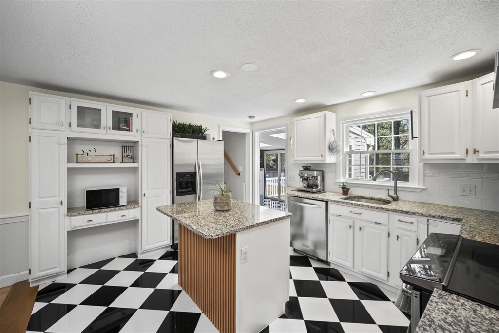 Guaranteed to check all the boxes! This gorgeous 4 bedroom, 2.5 bath colonial delivers on quality, style, floor plan & boasts an exceptional corner lot with an in-ground pool! All within a scenic walk to the Fairbank Community Center & Haskell Field + playground. Enjoy family & friends in the sun-filled white kitchen with stainless steel appliances, granite counters, center island & a breakfast bar, all ideally open to the dining area! Sip your morning coffee in the skylit 4 season sun rm with walls of glass & inspirational views! Light a fire in one of this homes TWO fireplaces on chilly evenings. The livingrm offers beamed ceilings & windows galore, with plantation shutters! Work from home in the 24x14 familyrm with custom built-ins which provide 2 works stations! Primary bdrm has a beautiful bathrm with a tiled shower. Bdrms are nicely proportioned & the renovated full bath is gorgeous! A field of dreams level corner lot on a quiet cul-de-sac! Hdwd flrs, Gas heat, C/A, MINT!