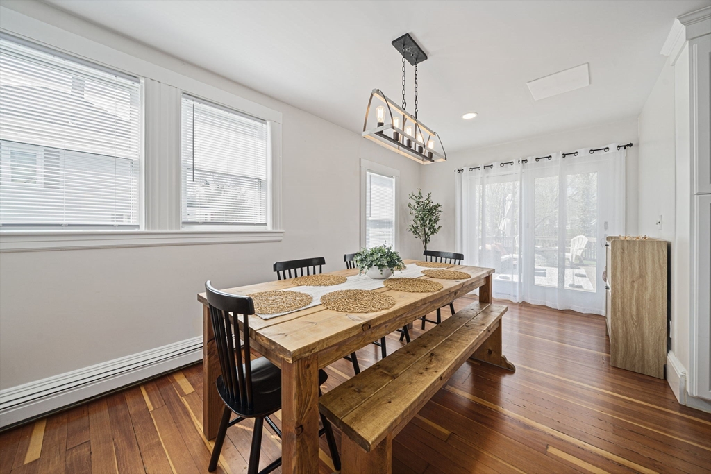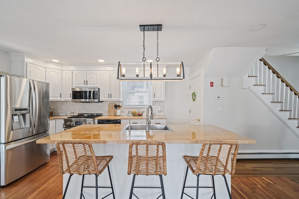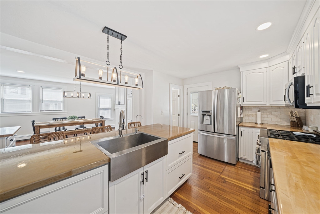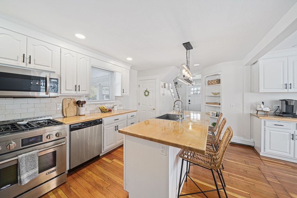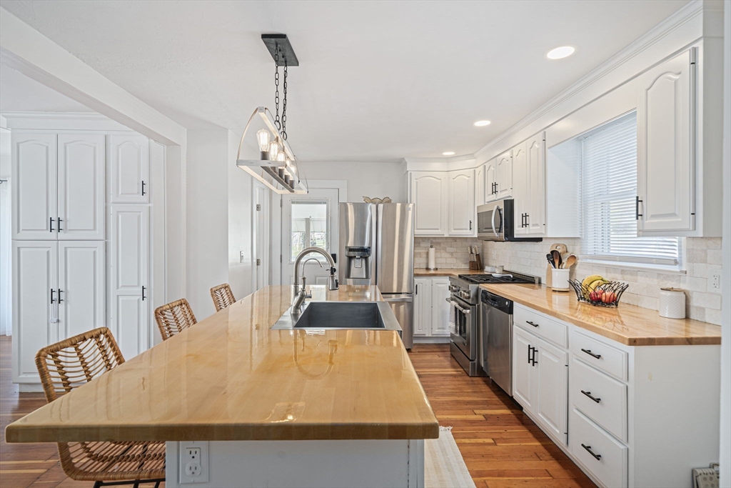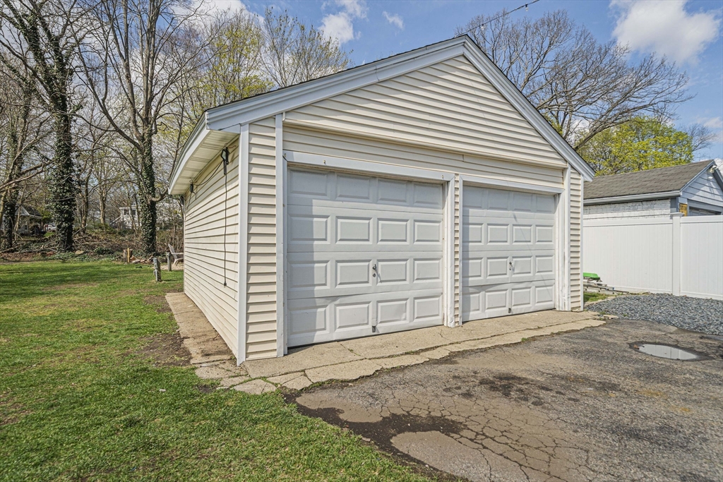 Move-In Ready South Shore Gem! Welcome to a beautifully maintained and updated 3-bedroom, 1.5-bathroom home that perfectly blends classic charm with modern convenience. Step inside to find gleaming hardwood floors that flow throughout an open and inviting layout. The heart of the home is the updated kitchen, featuring sleek stainless steel appliances, gas cooking, great Island & ample cabinetry-perfect for every home. Relax by the cozy fireplace in the living room or extra-large back deck overlooking a beautiful yard. Both bathrooms have been tastefully updated with contemporary finishes. Outdoor living is a dream ideal for summer gatherings and morning coffee. This property also boasts a rare 2-car detached garage, providing plenty of storage and parking. The partially finished basement, offering versatile space for a home office, gym, or playroom. Situated on a side st in Rockland with easy access to local amenities, schools, and major commuter routes. Don't miss this one!