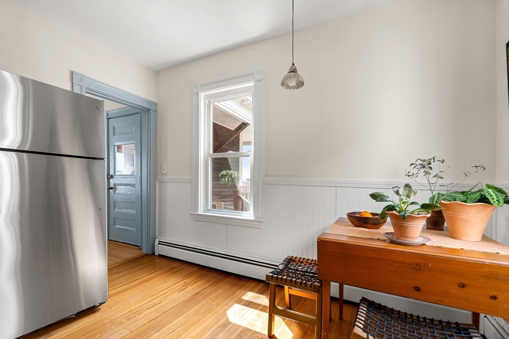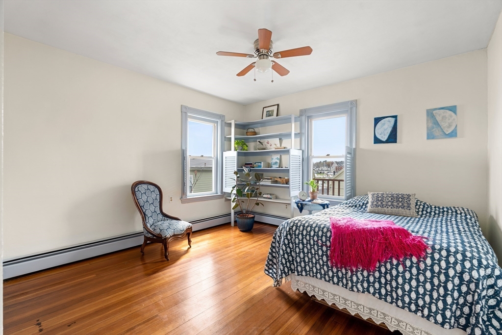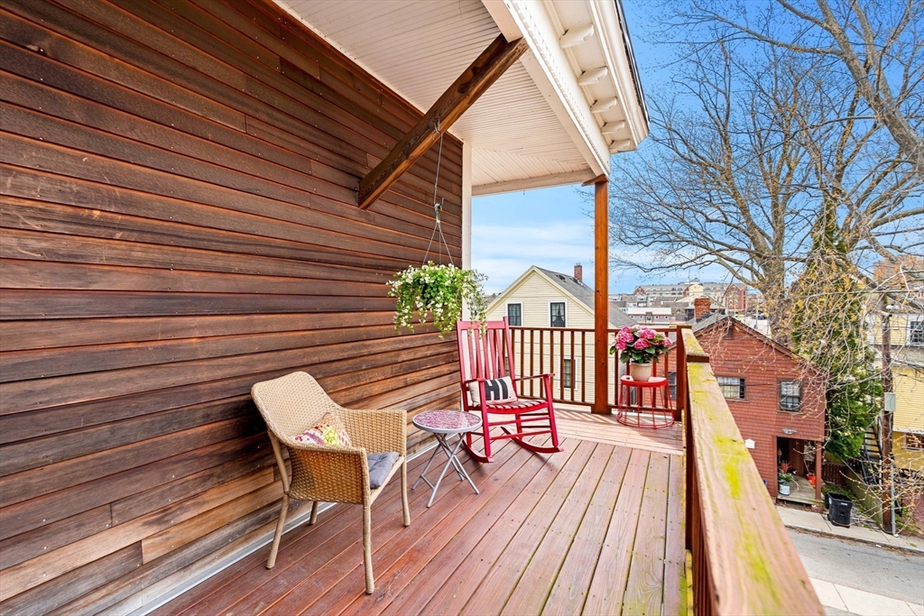 Enjoy great harbor views and generous natural light at 26-5 Daniels Street. Positioned with an elevated perspective, this condo unit is well-suited as a streamlined primary home or a private pied-à-terre. Located just off a side street in one of Salem’s most storied districts, the property offers a peaceful enclave yet is steps from a dynamic mix of contemporary shops, dining, and entertainment. Large windows fill the residence with sun, highlighting the wood floors and bright, airy interior. Fresh paint and a new hot water heater ensure move-in condition. A private wrap-around deck provides dedicated space to enjoy the coastal air. An appealing courtyard entrance with gardens and granite steps welcomes you. Significant assets include assigned parking, additional guest space, common laundry, and storage unit. Steps from the waterfront, near Derby Wharf, Salem Willows, and the ferry to Boston. Residents enjoy proximity to the MBTA Commuter Rail, Peabody Essex Museum, and Salem Common.