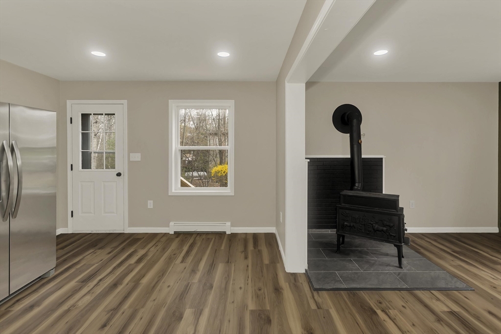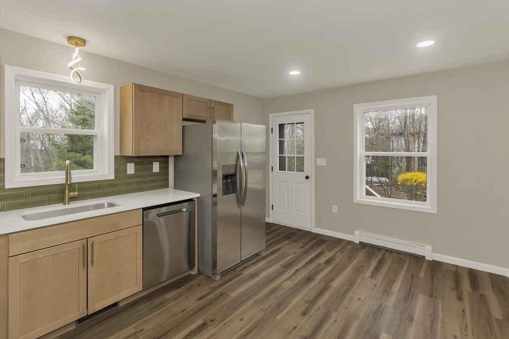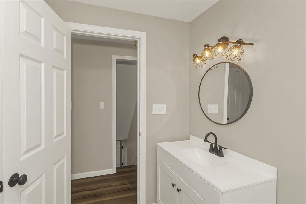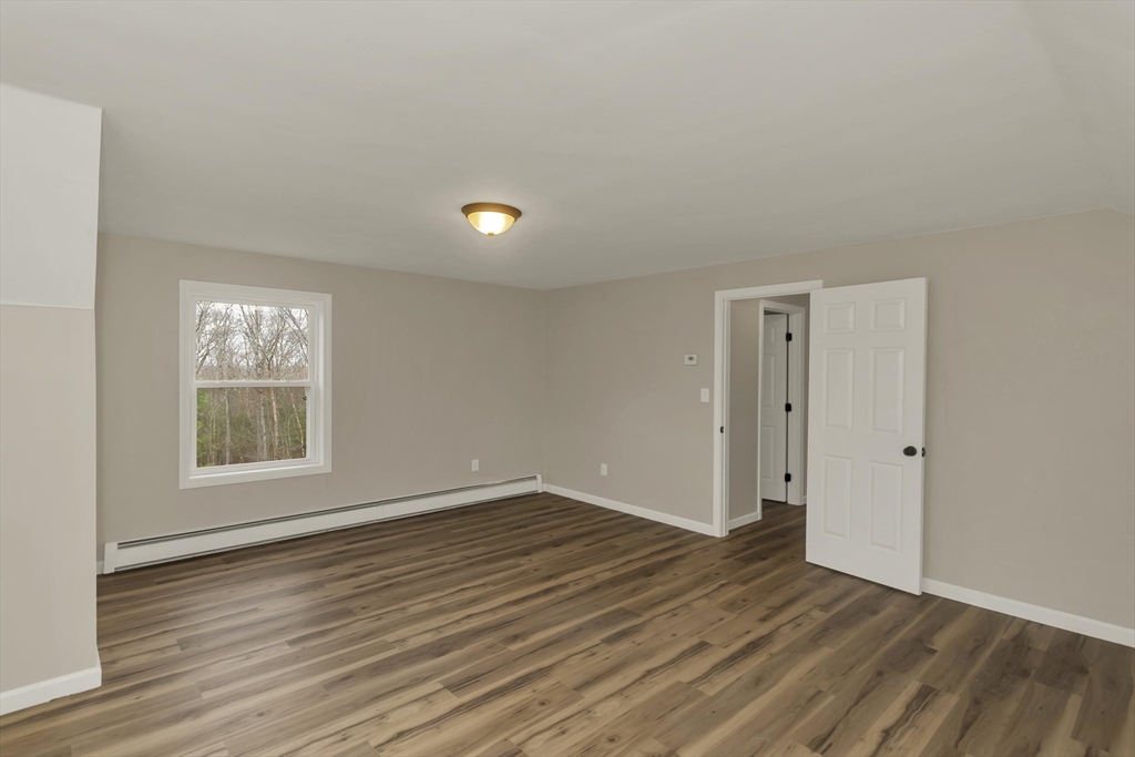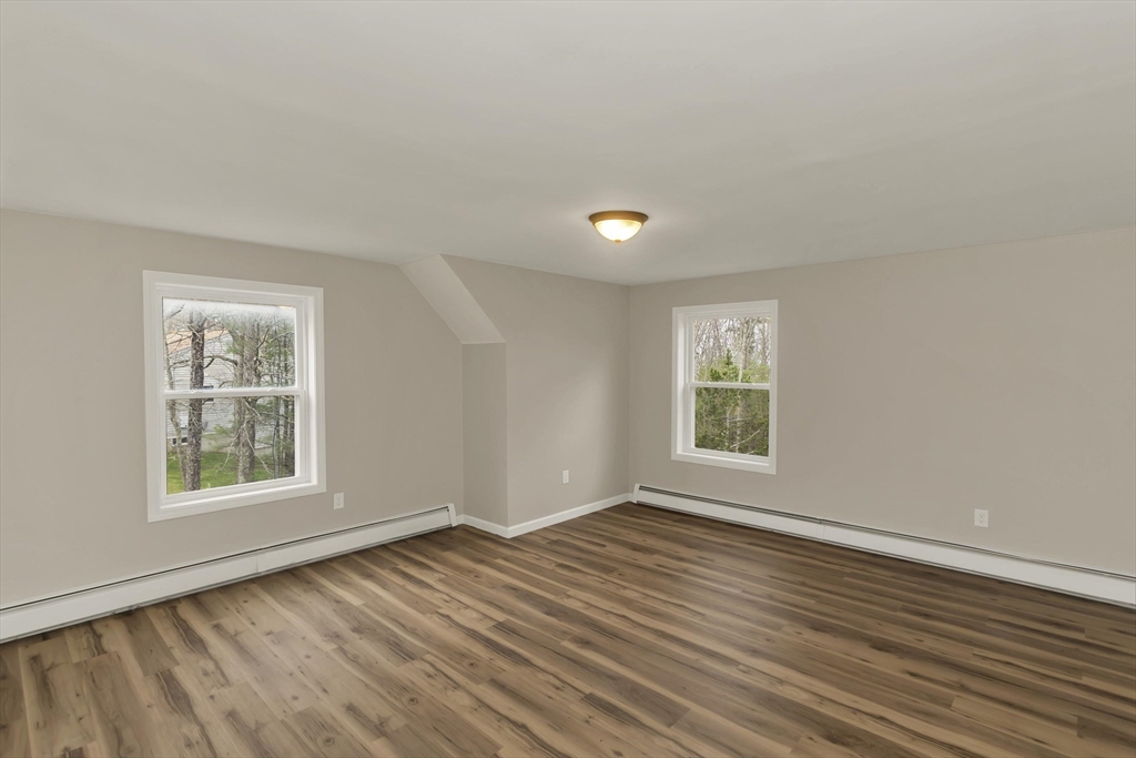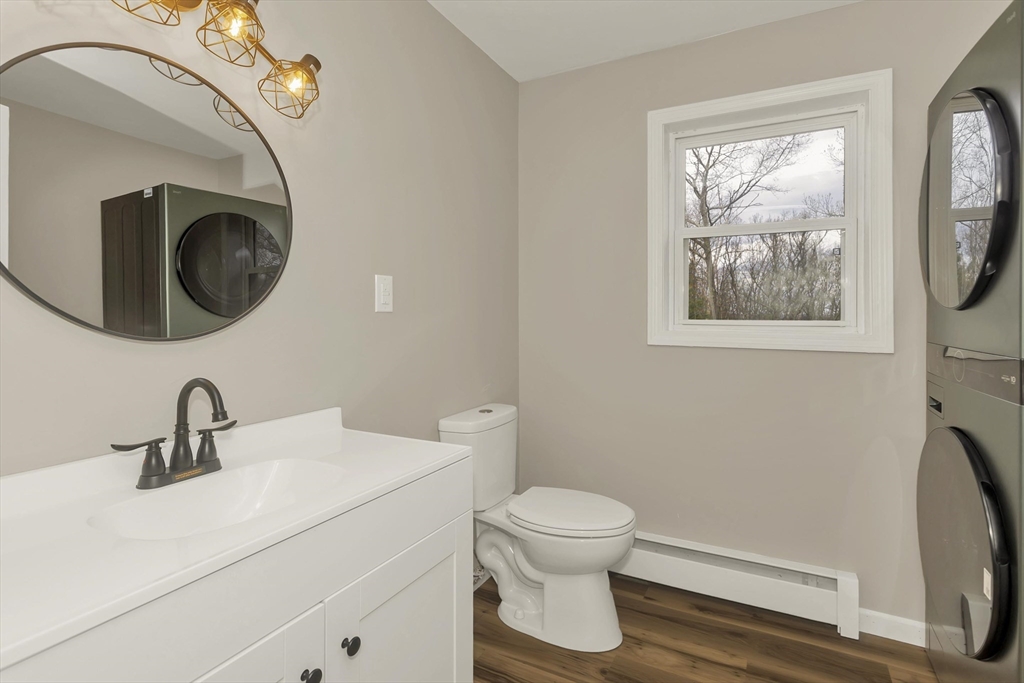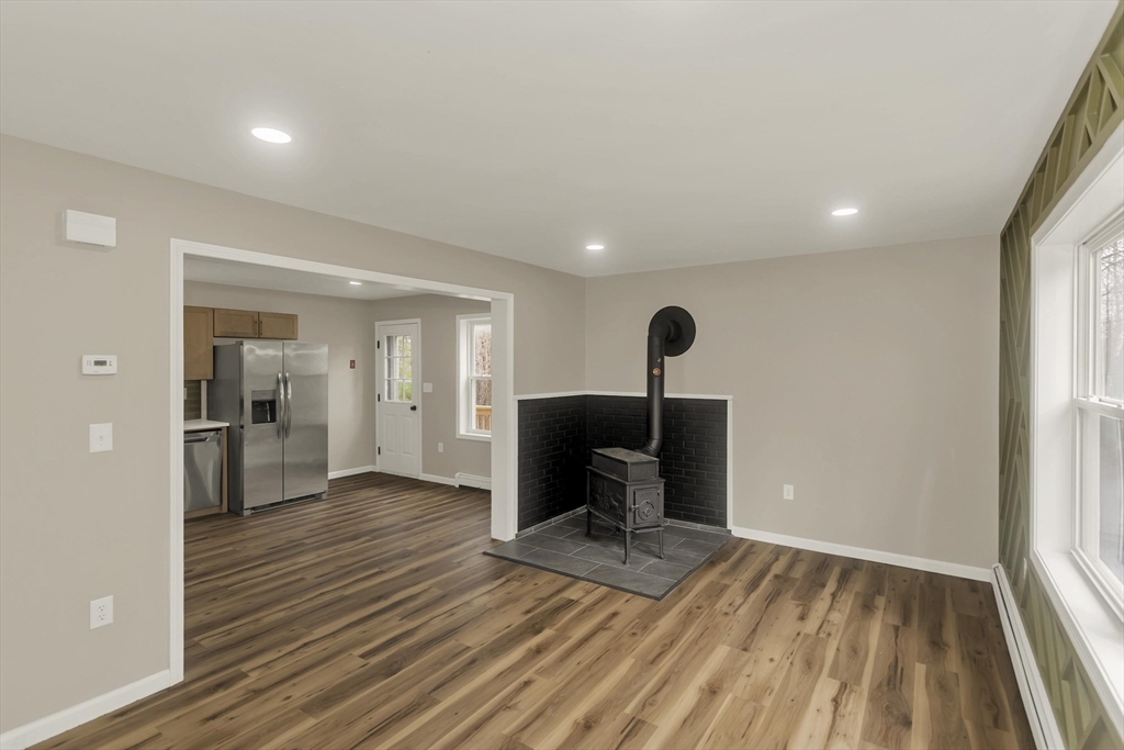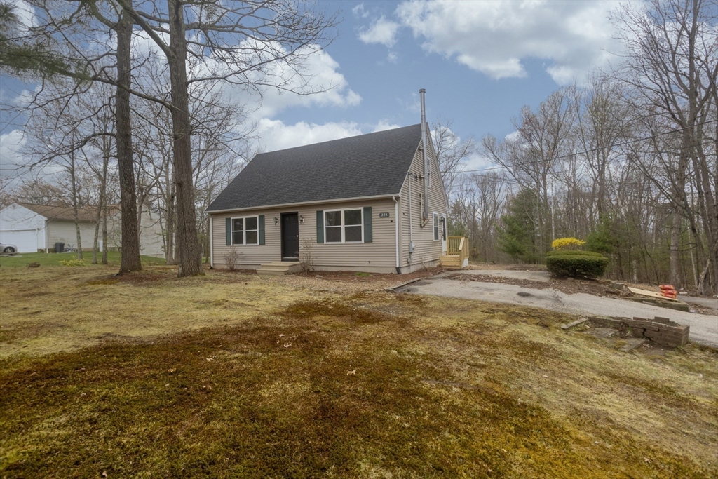 Location, location! This move-in ready cape sits on over 2 acres of land and is located on a desirable dead-end street! The beautifully renovated kitchen features quartz countertops, new cabinets, an eye-catching backsplash and stainless steel appliances. The first floor also features the living room with wood stove, two bedrooms and the full bathroom. Upstairs you'll find an expansive third bedroom with a large walk-in closet in the hallway, a half bathroom with convenient second floor laundry, plus a bonus room - great for a home office or even a potential fourth bedroom. The unfinished basement leaves room for future expansion and the large backyard offers 2.29 acres to explore!