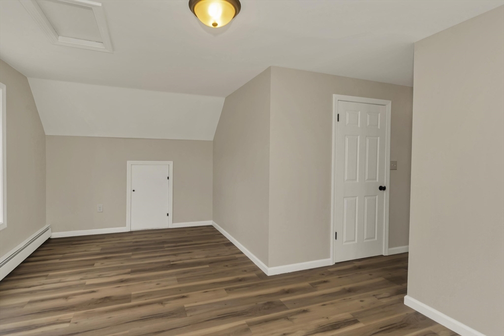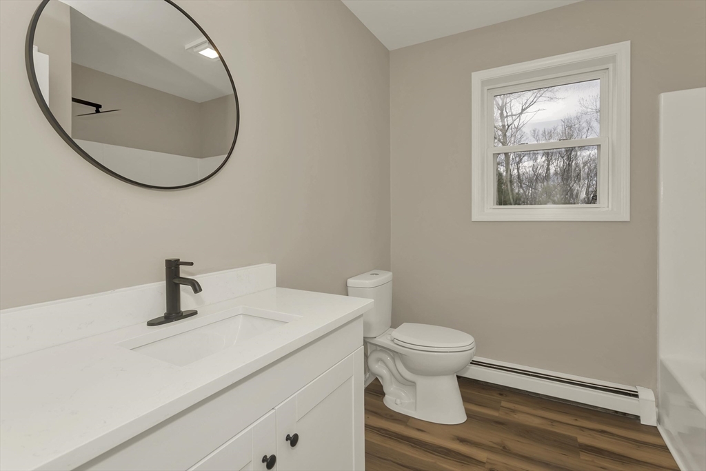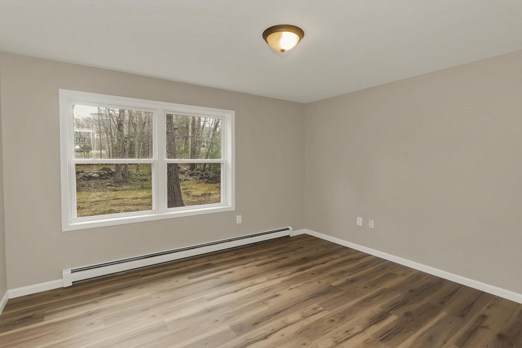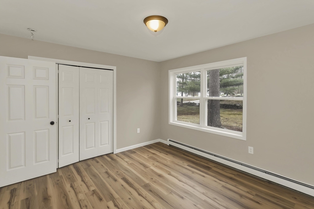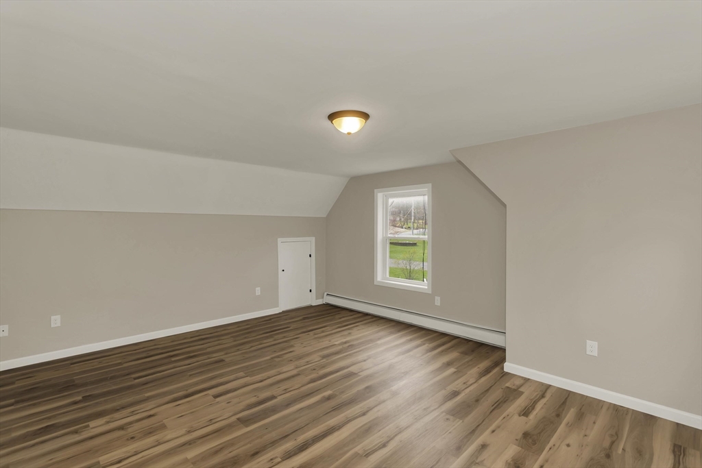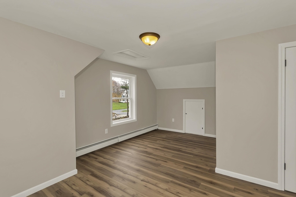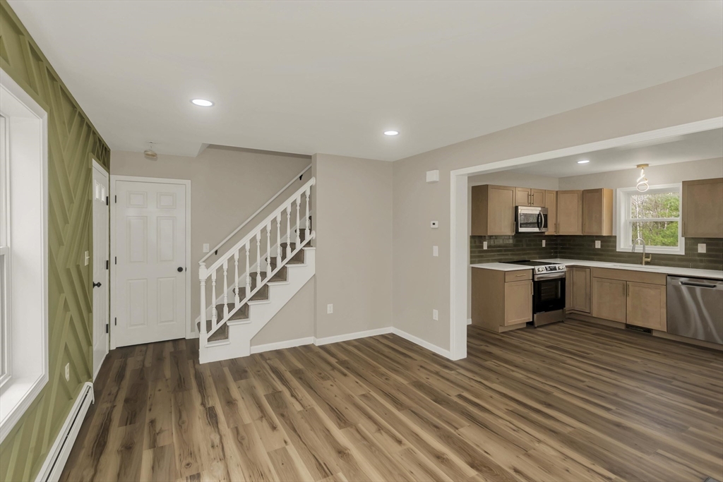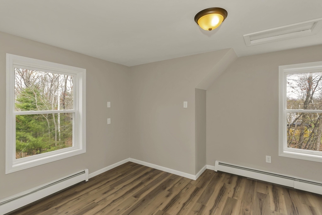 Location, location! This move-in ready cape sits on over 2 acres of land and is located on a desirable dead-end street! The beautifully renovated kitchen features quartz countertops, new cabinets, an eye-catching backsplash and stainless steel appliances. The first floor also features the living room with wood stove, two bedrooms and the full bathroom. Upstairs you'll find an expansive third bedroom with a large walk-in closet in the hallway, a half bathroom with convenient second floor laundry, plus a bonus room - great for a home office or even a potential fourth bedroom. The unfinished basement leaves room for future expansion and the large backyard offers 2.29 acres to explore!