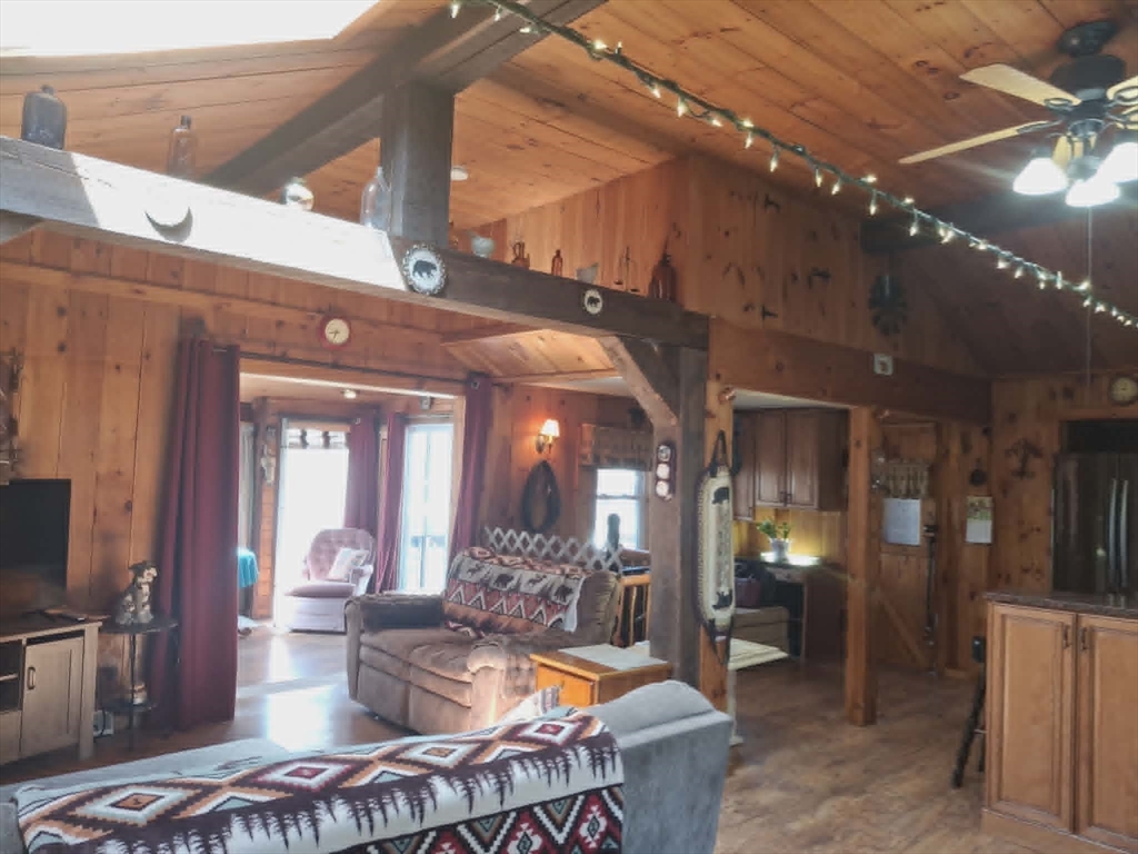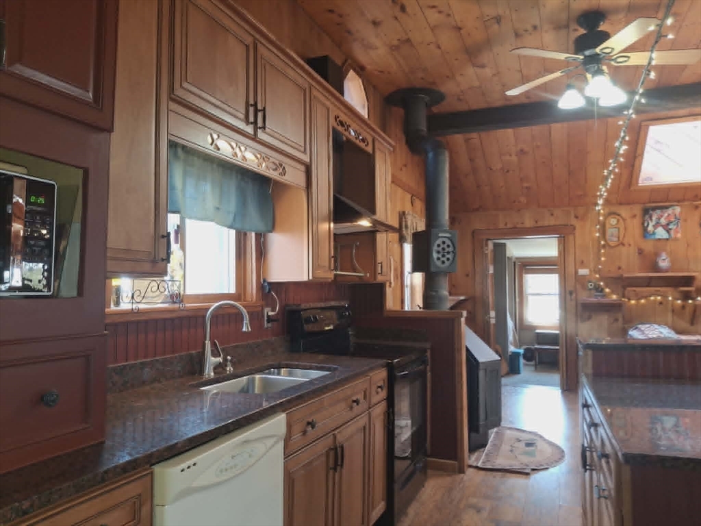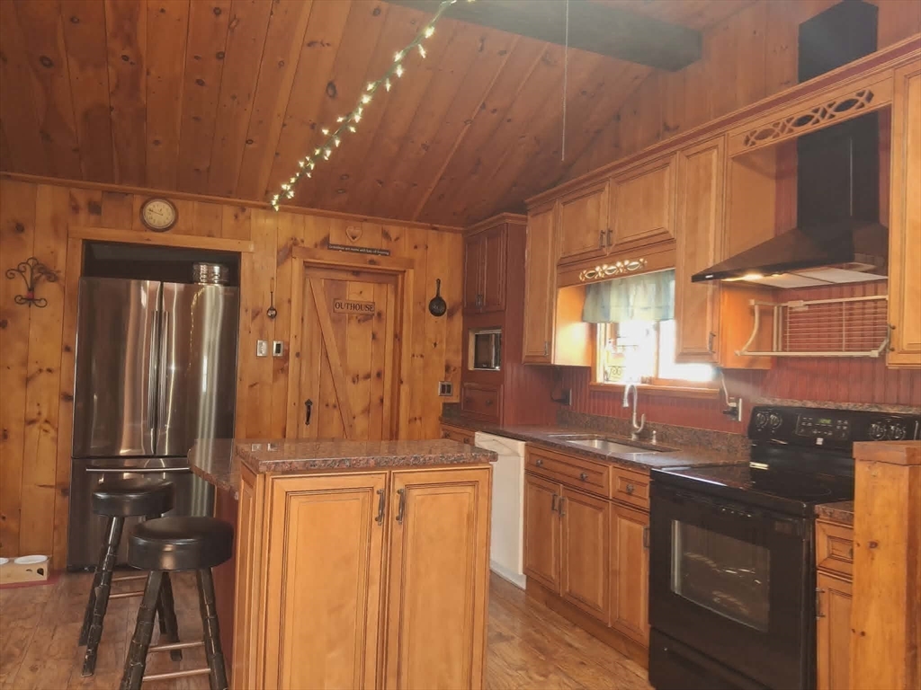 Beautiful Open-Concept Home Near Lower Naukeag Lake!This gorgeous open-concept home features warm natural pine wood walls that create a cozy, inviting atmosphere throughout. Enjoy relaxing in the sun-filled porch and sunroom, perfect for year-round enjoyment. The kitchen is equipped with granite countertops and flows seamlessly into the living space, highlighted by a charming fireplace.The finished basement is ideal for entertaining, complete with a bar area and a third bedroom currently set up as a home theater.Located just two minutes from the Lower Naukeag Lake association beach, this home offers the perfect blend of comfort, character, and convenience.