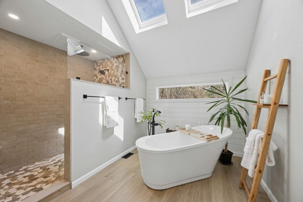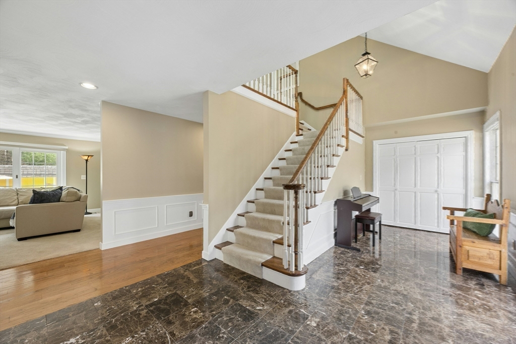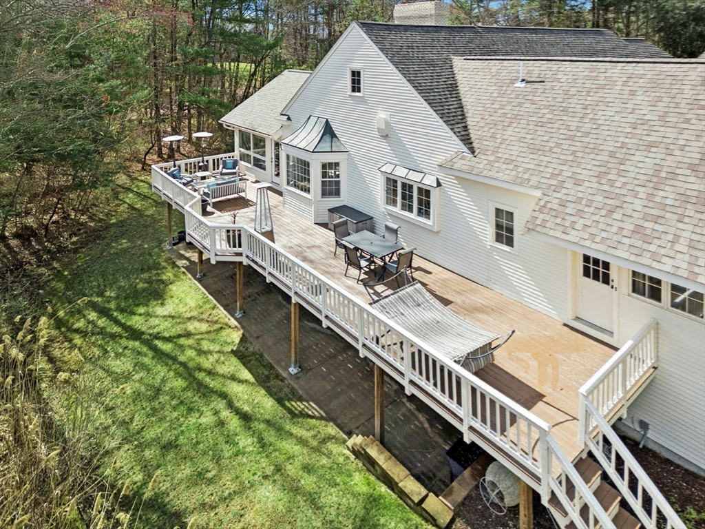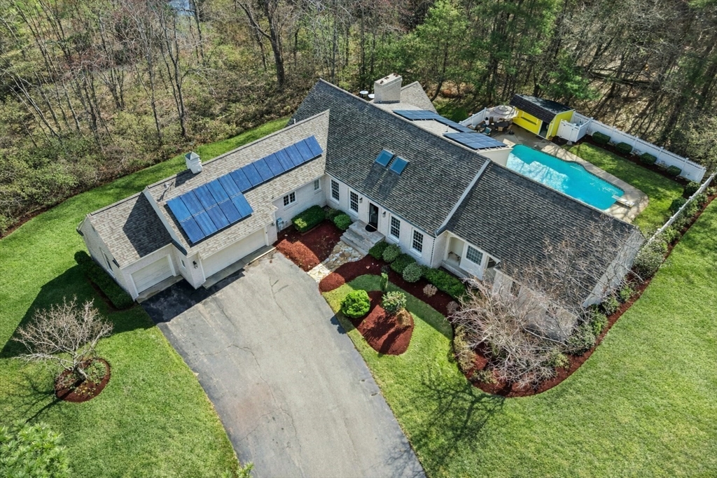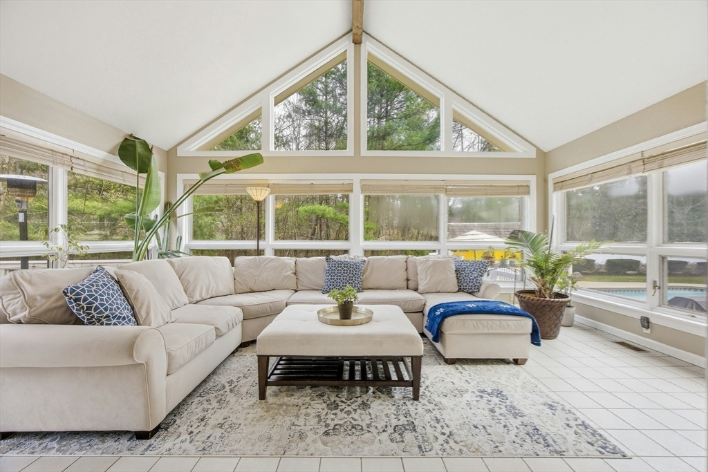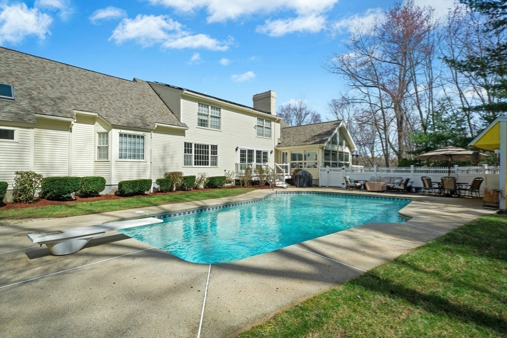 Set on 2.17 private acres, this custom cape blends classic form w/ contemporary design & thoughtfully curated architectural detail. A dramatic vaulted four season sunroom creates a light-filled focal point, seamlessly connecting indoor & outdoor living. The heart of the home features a chef’s kitchen w/ extensive cabinetry, oversized island seating & direct sightlines to multiple gathering spaces. A striking stone fireplace anchors the main living area, while refined millwork, skylights & varied ceiling heights add depth & character throughout. The first-floor primary suite offers a spacious, spa-inspired bath & exceptional privacy. Upstairs, a spacious loft connects two generously sized bdrms w/ a Jack & Jill bath. Outdoors, enjoy a resort-style setting w/ in-ground Gunite heated pool, cabana, composite deck & oversized wood deck overlooking professionally landscaped grounds w/ stonework & mature plantings. The LL walkout & 2 addit'l unfin attics = potential to expand! 4th BD septic!
