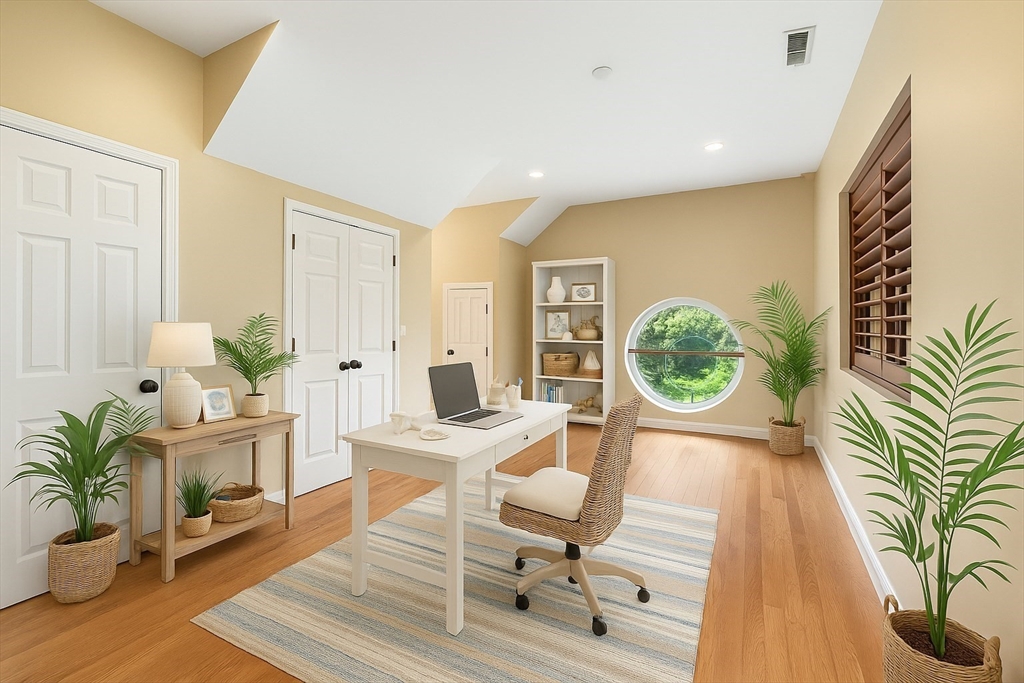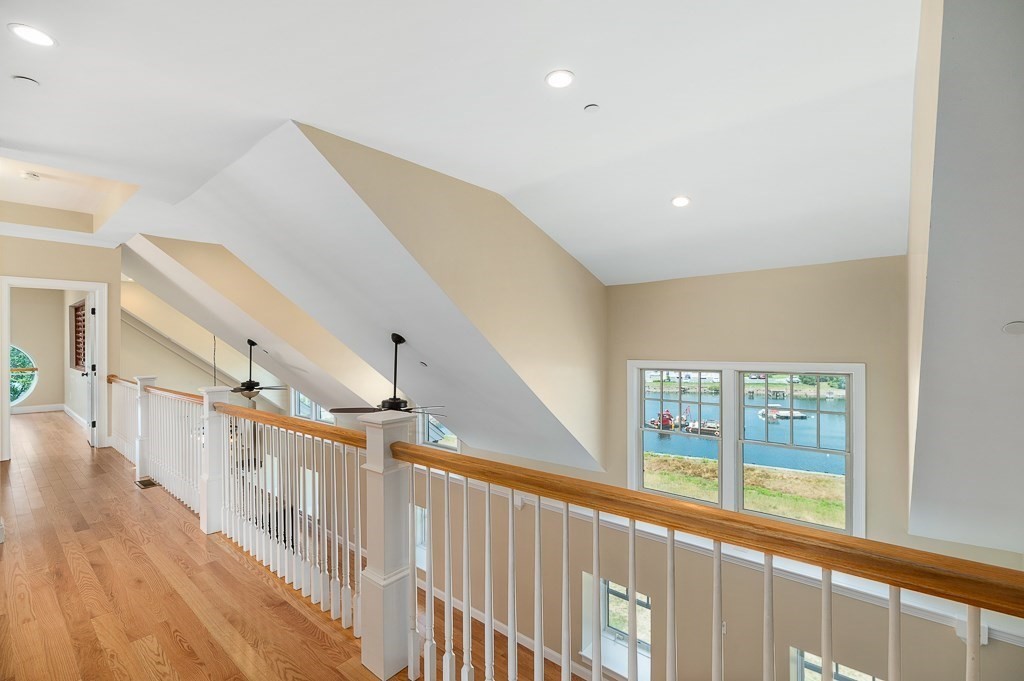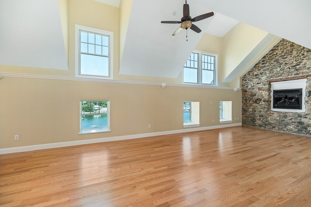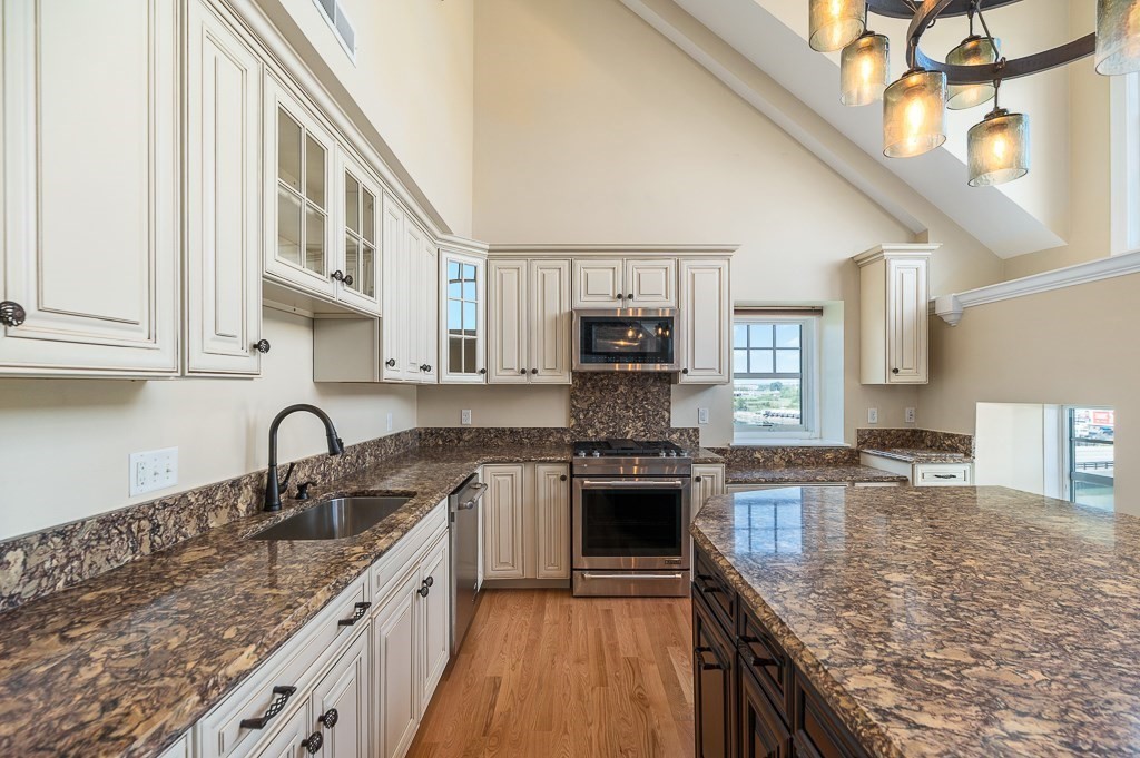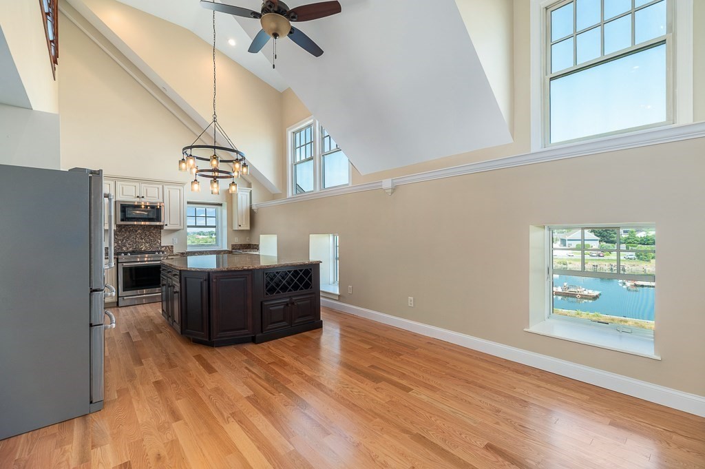 Welcome to this stunning luxury townhome offering exceptional views of the Crane River. Step into a sun-drenched open-concept living and kitchen area, highlighted by soaring vaulted ceilings and hardwood floors throughout. Stone accent wall frames the cozy gas fireplace, creating an inviting ambiance for relaxing or entertaining. The chef’s kitchen-featuring Jenn-Air gas appliances, quartz countertops, and a spacious center island with ample storage, is perfect for gatherings and everyday living. The main level offers a primary suite with full en-suite bath, a generous second bedroom with a large closet, and an additional full bath. Upstairs, you'll find a versatile open loft area, cupola access, a third bedroom with closet and full bath. Additional features include one reserved parking spot, one-car detached garage and oversized storage area. Enjoy breathtaking sunset views over the river, as this home offers a lifestyle of comfort and beauty.