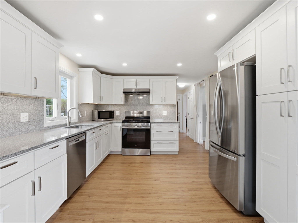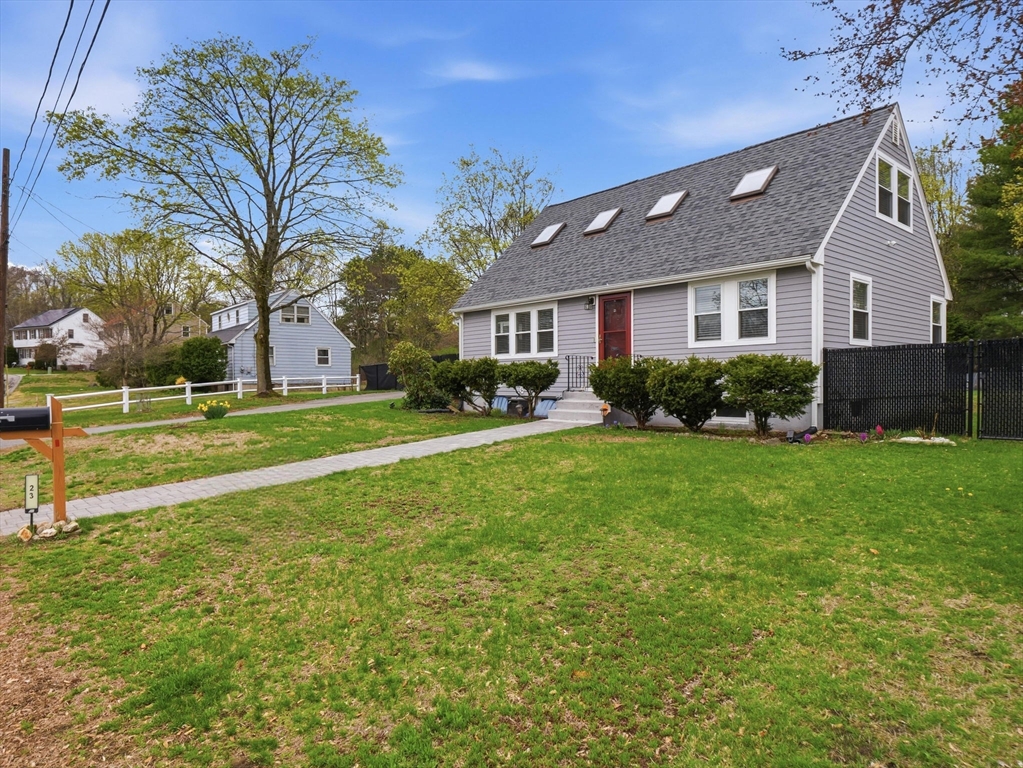 Picture-perfect Cape, ready for you to move right in! From the moment you enter, you’ll appreciate the many thoughtful updates throughout. Features include beautiful hardwood floors, a granite stainless-steel kitchen, and two full updated bathrooms. Major improvements, including the heating system, hot water, windows, everlast composite siding, electrical panel, and roof have all been updated within the last five years, offering peace of mind for years to come. The finished basement includes a bonus room, perfect for a rec room, along with plenty additional storage space. For those who work from home, there are multiple options for a comfortable home office setup. Enjoy outdoor living at its best with a charming porch, a spacious level fenced yard, and a stunning stone patio—perfect for entertaining. A convenient shed adds even more storage. Located in the highly desirable Westlands neighborhood, just minutes from Route 495, Route 3, & shopping, this home truly has it all !