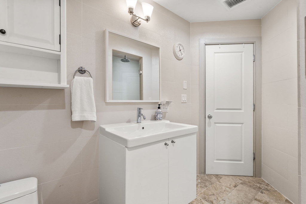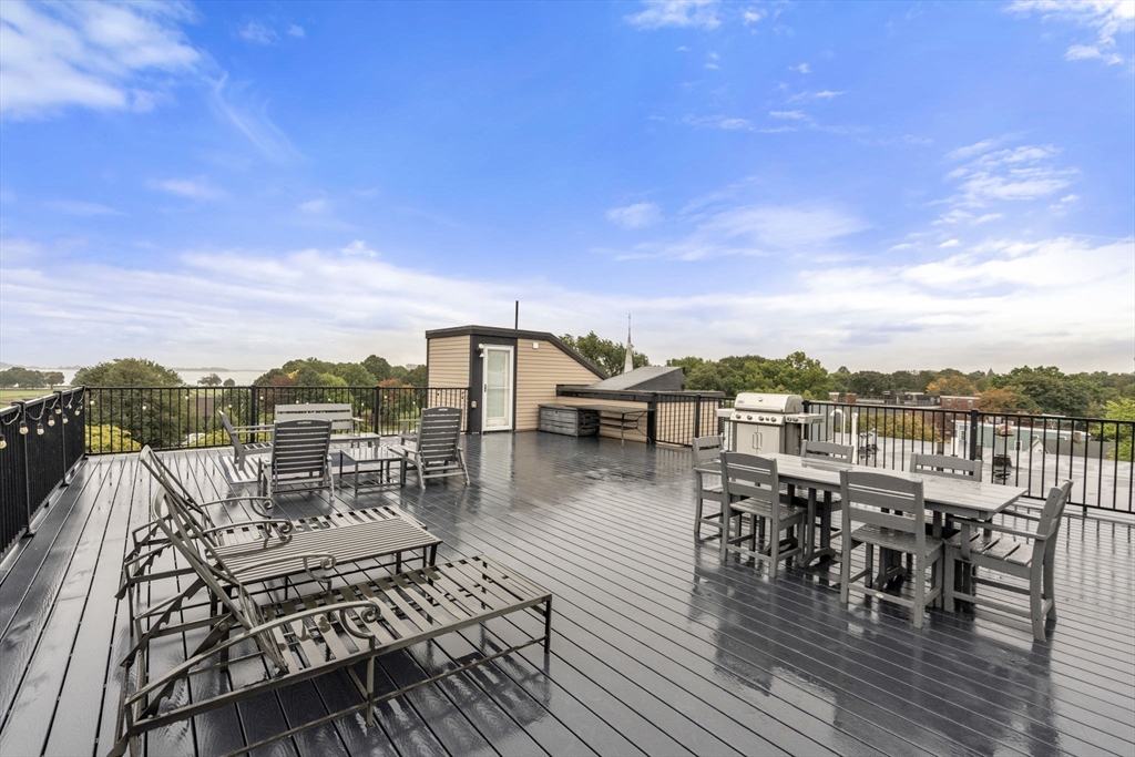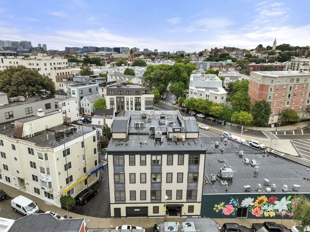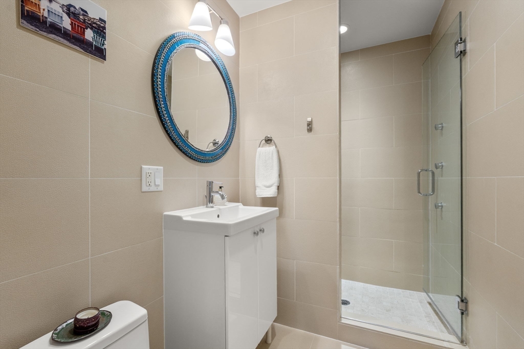 Welcome to 45 Vinton, where Unit 1 sits above street level, filled with natural light, soaring ceilings, and oversized rooms that create a bright, open feel. The flexible layout offers a pocket-door bedroom, perfect for guests or a nursery. Both full baths feature spa-style finishes with rainfall showers, body jets, and a soaking tub. The kitchen features a large island alongside Bosch and Bertazzoni appliances, ideal for any home chef. Step outside to a roof deck with city views, an outdoor shower, and a natural-gas grill—perfect for entertaining or watching the Boston fireworks. A deeded garage space with direct elevator access to your floor makes life easy, while Carson Beach, Moakley Park, and Andrew Station are just minutes away. With F45, Peter Welchs, Bspoke, Hunters, Capo, Lincoln, Fat Baby, Loco within half a mile this home offers the best of city living with comfort, style, and convenience.