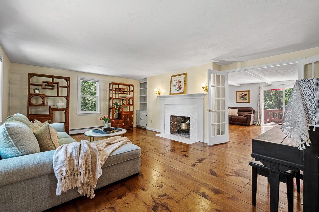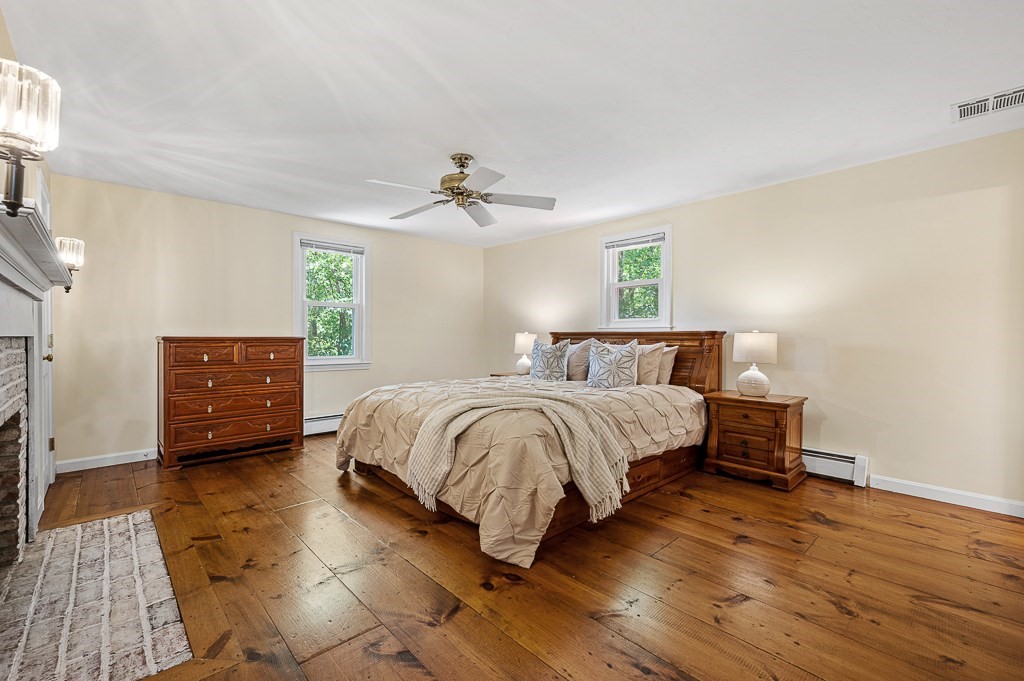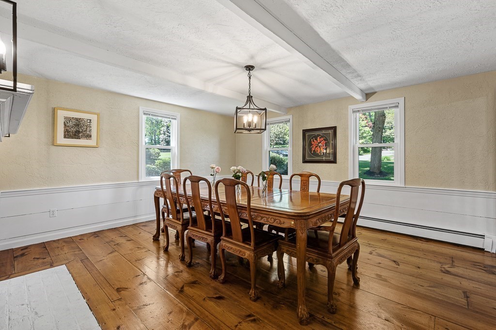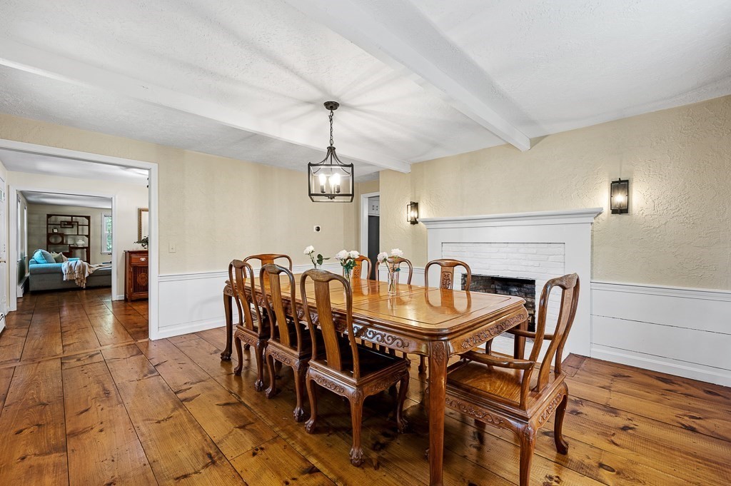 Heritage Meets Modern Comfort....Welcome to idyllic Olde Jackstraw Village—where timeless charm meets thoughtful updates! This 5BR Colonial stuns with wide pine floors, built-ins, and five fireplaces. Four bedrooms feature two large closets each. The huge walk-up attic (10-ft ceilings, insulated floor) offers 800+ sq ft of potential living space. Cook like a pro in the large kitchen with fireplace, vented hood, and freshly painted cabinets. Central A/C upstairs, Nest thermostats, smart lighting, and many 2022–2025 upgrades reflect pride of ownership. Enjoy a newer roof, windows, oil tank, water heater, heating system and New driveway. Outdoors: a serene 2-tier yard with firepit, trail, raised beds, and a shaded creek side area. Entertain on the deck or shoot hoops on the flat driveway with pro-grade system. The oversized 2-car garage has epoxy floors, painted walls, shelves, and ample storage. Quiet cul-de-sac near top-rated Fales School—immaculate, move-in ready, and truly special!