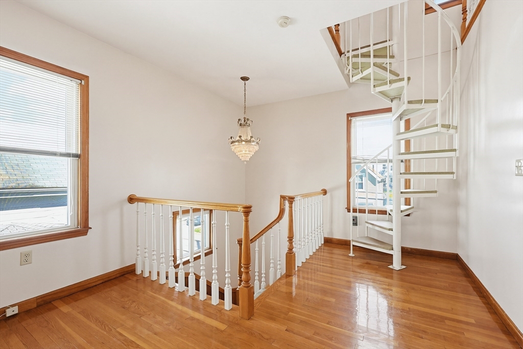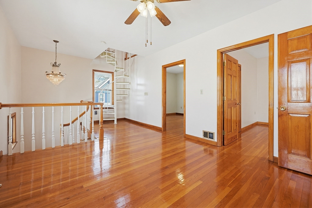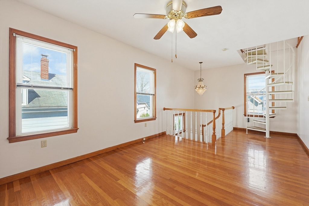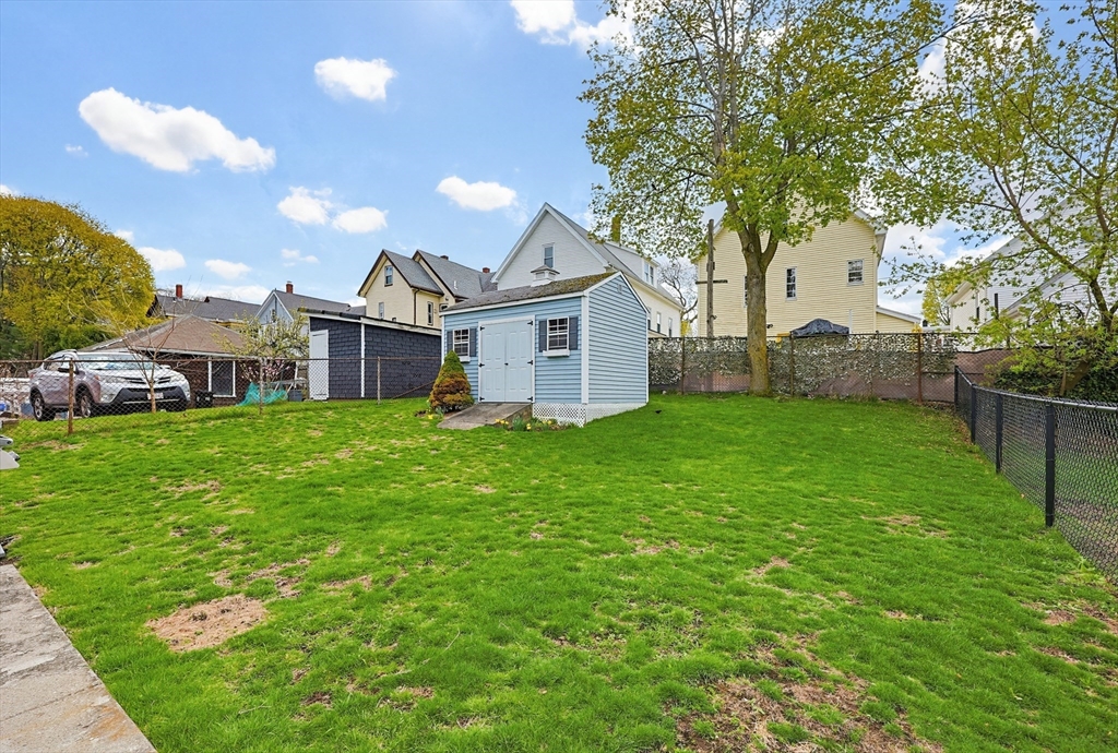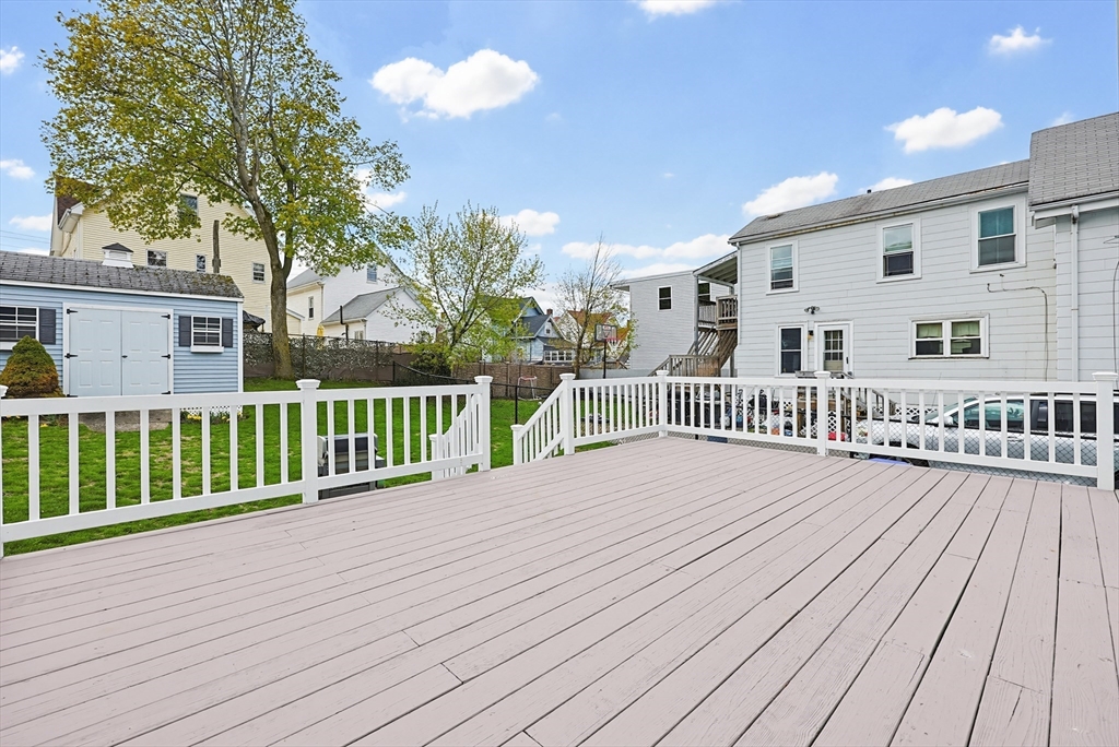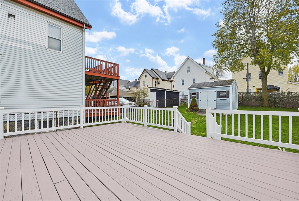 Welcome to this charming 3 Bedroom, 1 1/2 Bath Colonial, proudly owned & lovingly maintained by the same family for over 40 years! This well-cared-for home offers a wonderful blend of character, space, & convenience. The main level features a comfortable living room, an eat-in kitchen w/ ample space for dining, & an additional seating area just off the kitchen—perfect for entertaining. From here, step out onto a beautiful Oversized Deck overlooking a fully fenced-in backyard w/ Large Shed, ideal for outdoor gatherings & pets. Upstairs, you’ll find a spacious hallway that can easily serve as a home office, along w/ 2 generously sized bedrooms & a full bathroom. A unique spiral staircase leads to the third floor, where a massive bonus room awaits—offering endless possibilities for a primary suite, playroom or creative workspace. Enjoy relaxing mornings on the inviting front porch. Additional highlights include off-street parking & a prime location just a short walk to the T and Shopping.