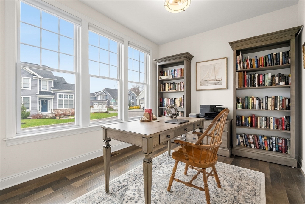Private, light-filled end-unit townhome at Seaside, a premier coastal 55+ community! This gorgeous, like-new home offers a dramatic entry with soaring ceilings, hardwood floors, and an open layout designed for effortless living and entertaining. The main level features a dining area, spacious living room with gas fireplace, and a chef’s kitchen with quartz countertops, high-end appliances, beverage storage, pantry, and a bright breakfast nook. A sun-filled office adds flexibility for work or guests. The first-floor primary suite includes three closets and a spa-like updated bath. Upstairs, a versatile loft, additional bedroom, and ample storage provide ideal guest or living space. Desirable Kington layout. Additional features include first-floor laundry, two-car garage, generator, and an expanded fenced private patio. Enjoy low-maintenance living with resort-style amenities including a pool, clubhouse, fitness center, pickleball courts, and vibrant social offerings!
