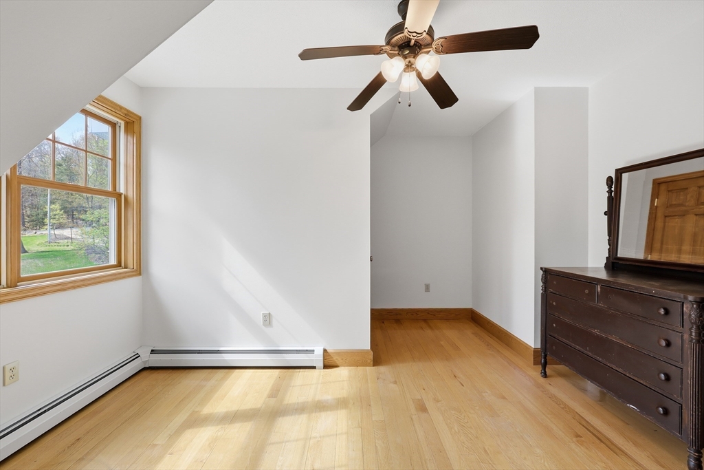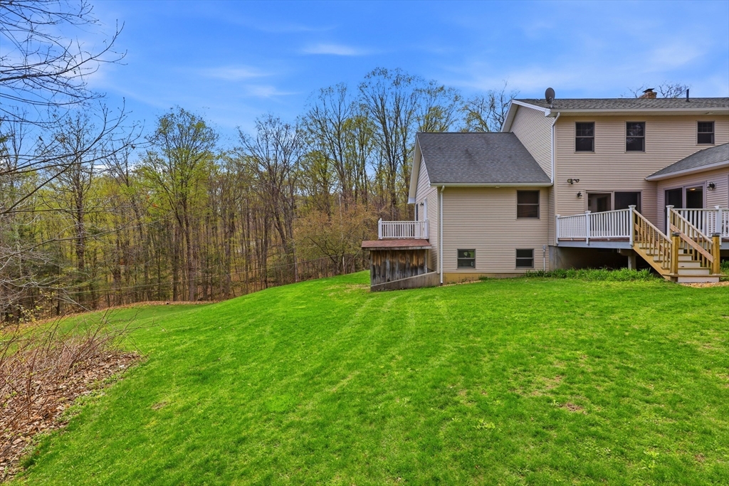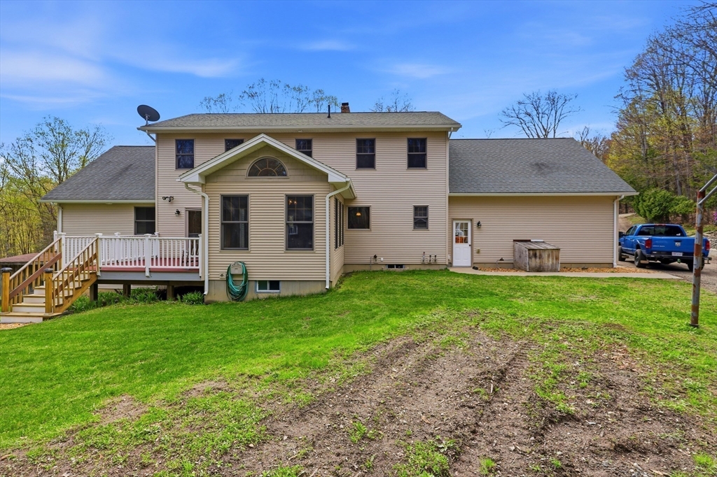 Tucked away on a dead-end street in the foothills of the Berkshires, this thoughtfully designed Cape offers space, flexibility, and a setting that feels like a retreat. Set back on 2.73 acres with scenic views, the open floor plan invites easy everyday living and effortless entertaining. The main level features a primary suite with a private bath, walk-in closet, and its own balcony for quiet morning coffee or unwinding at the end of the day. A first-floor laundry room adds convenience, while the dining area flows into a kitchen with granite counters and seating—perfect for gathering and conversation. A home office or flex room completes the first floor, offering options for work, hobbies, or guests. Upstairs, you’ll find four additional bedrooms plus access to a bonus space with a separate entrance from the garage—ideal for future expansion or creative use. The walk-out basement includes partially finished space with radiant floors, cold storage, and additional potential.