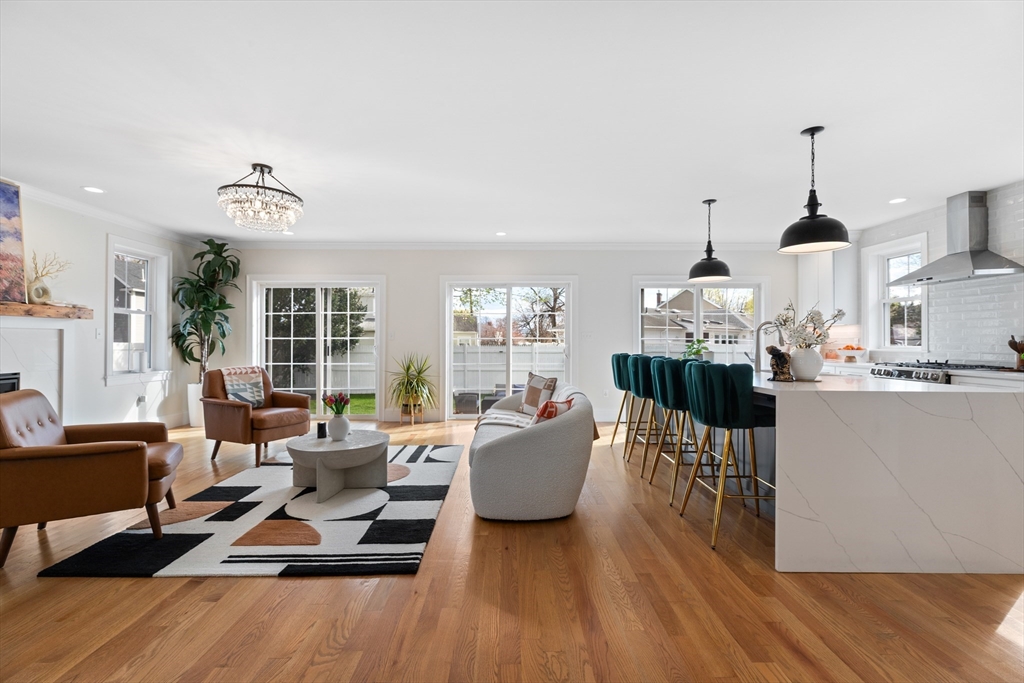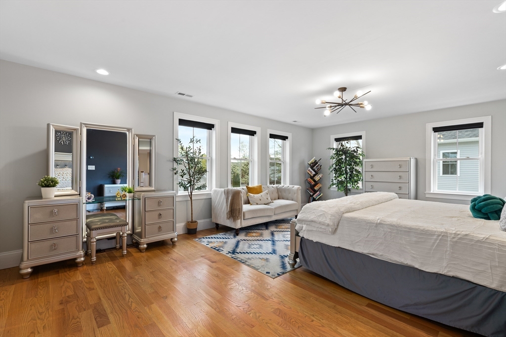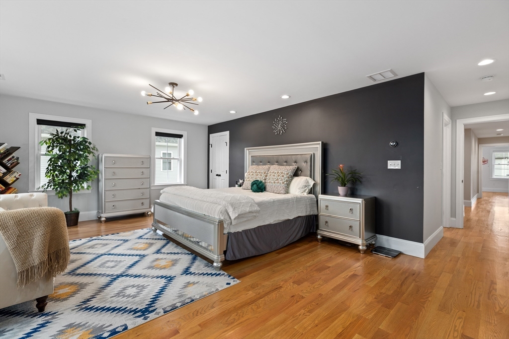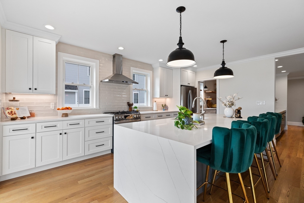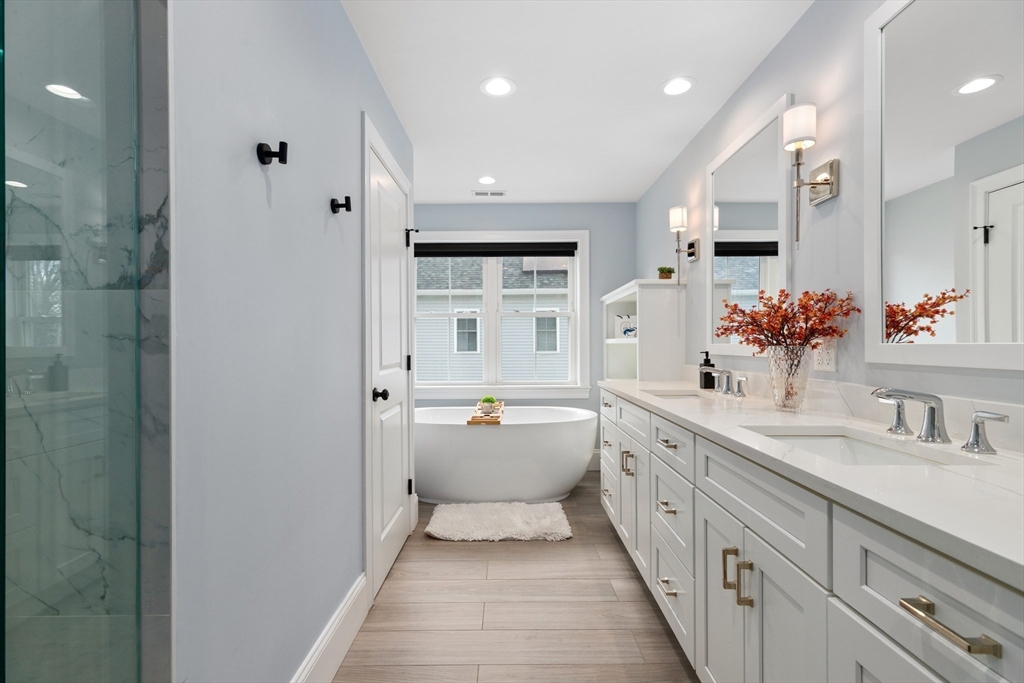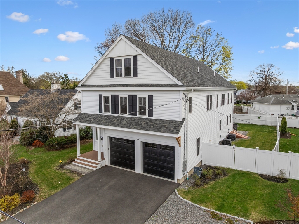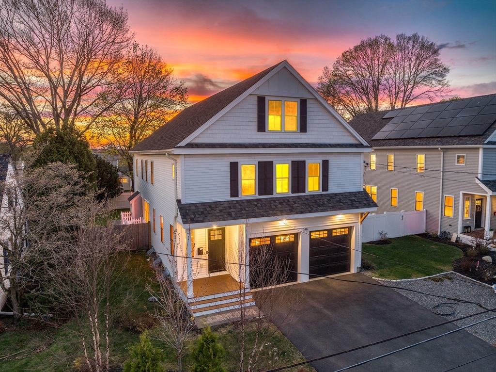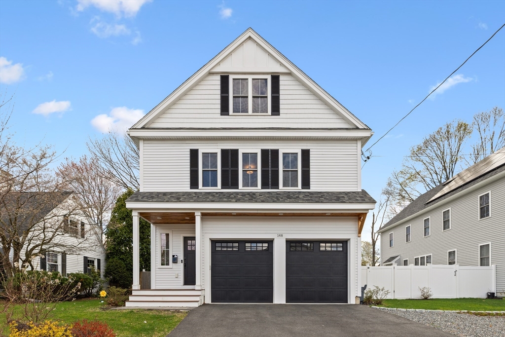 The luxury property at 148 Main St in Waltham’s desirable Rangley Acres is a stunning, recently constructed Colonial that perfectly blends modern elegance with functional design. Spanning approx. 4,514 sq.ft, this sun-drenched home features an open-concept first floor highlighted by a chef’s primary kitchen & a secondary large prep kitchen, bar with beverage fridge, both finished with quartz waterfall islands and premium ss appliances. The living area flows seamlessly thru triple sliding doors to a private fully fenced rear deck & patio. Upstairs, all bedrooms boast private ensuite baths, including a primary suite with a spa-like soaking tub and dual walk-in closets. A fully finished lower level adds a fourth bedroom and family room with full bath, while the walk-up attic offers future expansion potential. Located within walking distance to schools/parks, this home offers city views, a high-efficiency HVAC, and a two-car garage, representing the pinnacle of suburban luxury living.