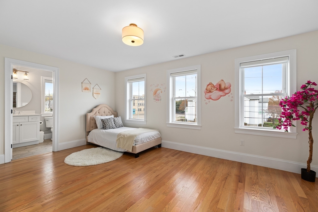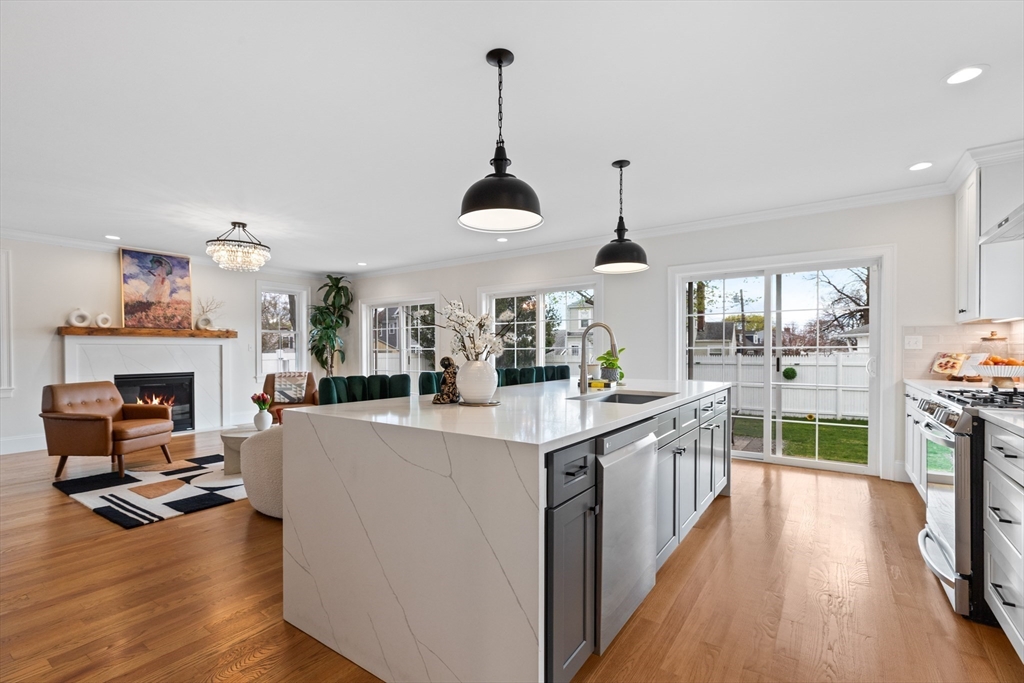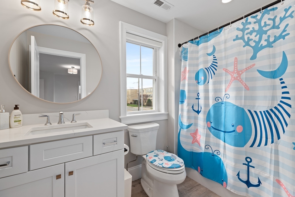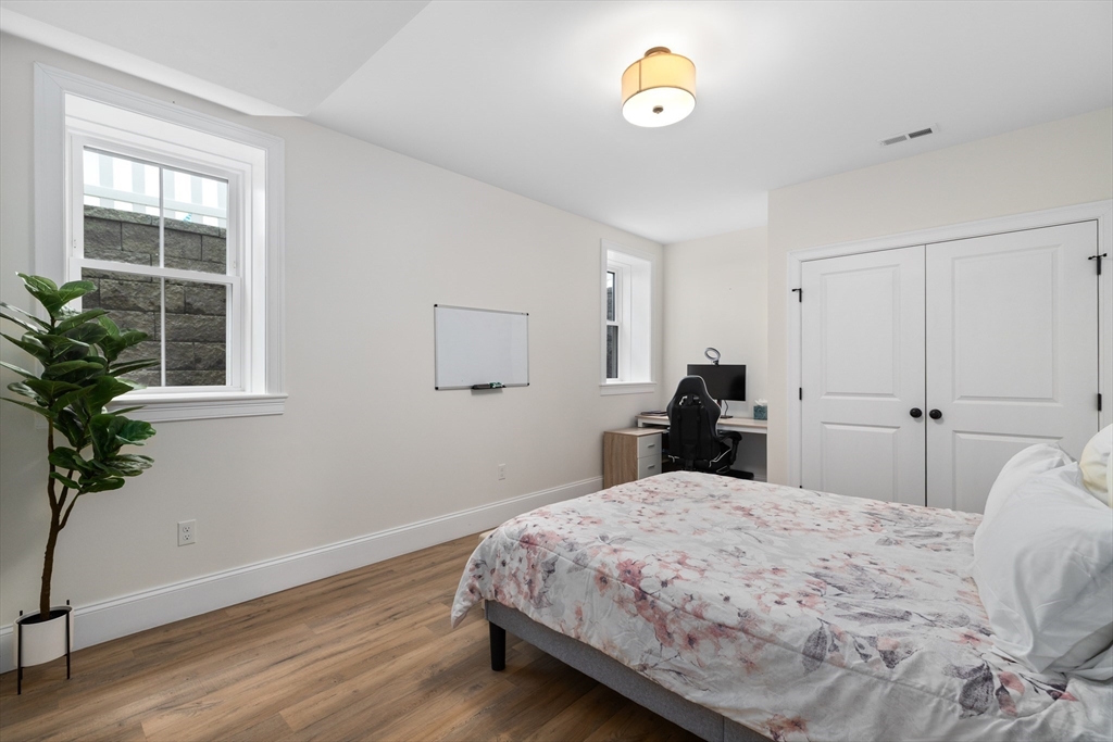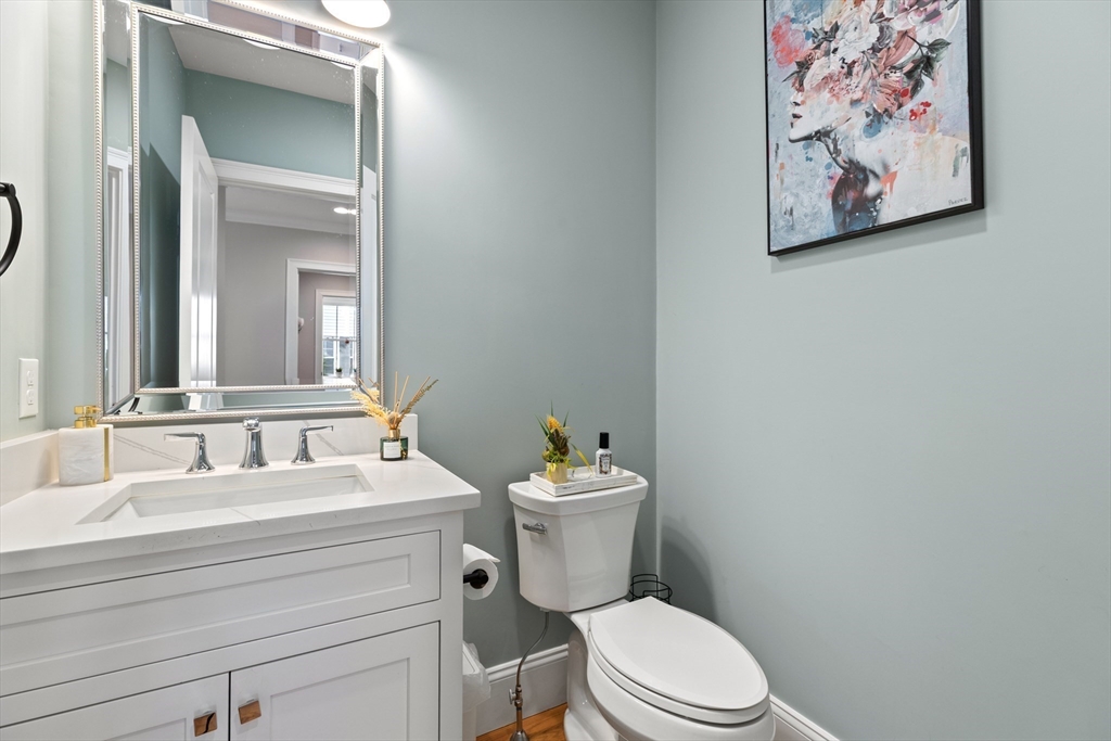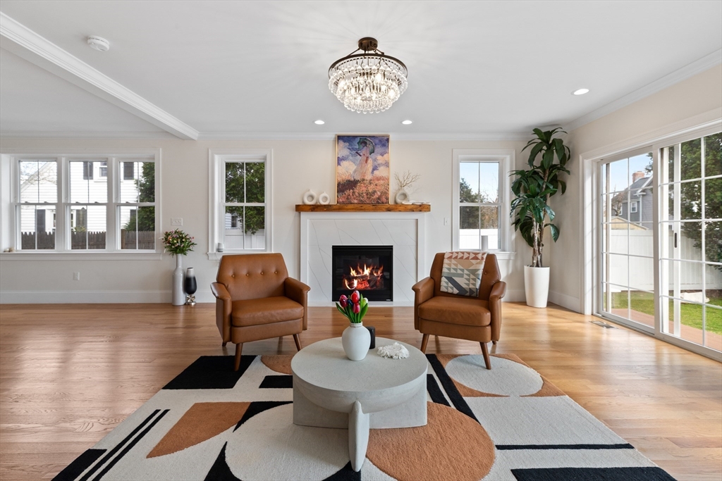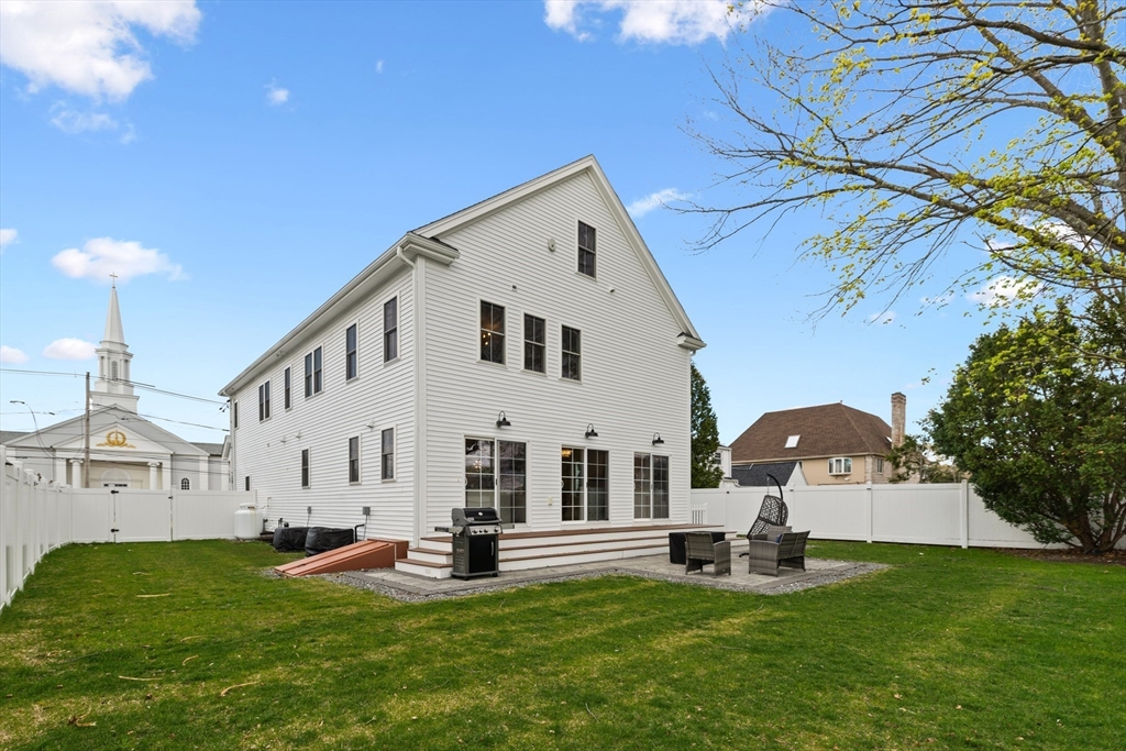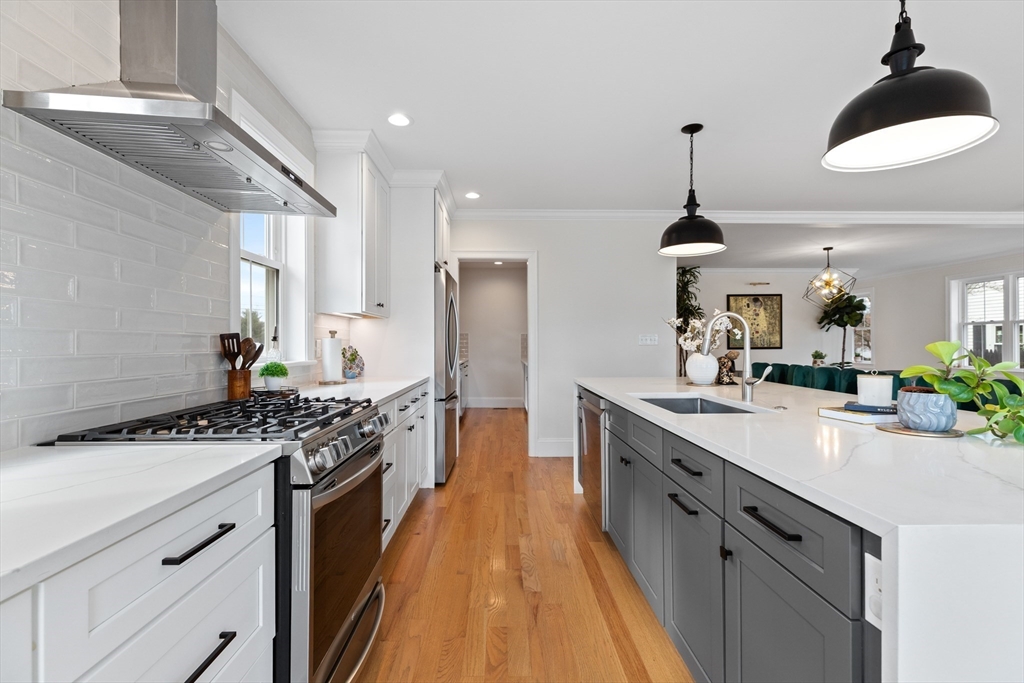 The luxury property at 148 Main St in Waltham’s desirable Rangley Acres is a stunning, recently constructed Colonial that perfectly blends modern elegance with functional design. Spanning approx. 4,514 sq.ft, this sun-drenched home features an open-concept first floor highlighted by a chef’s primary kitchen & a secondary large prep kitchen, bar with beverage fridge, both finished with quartz waterfall islands and premium ss appliances. The living area flows seamlessly thru triple sliding doors to a private fully fenced rear deck & patio. Upstairs, all bedrooms boast private ensuite baths, including a primary suite with a spa-like soaking tub and dual walk-in closets. A fully finished lower level adds a fourth bedroom and family room with full bath, while the walk-up attic offers future expansion potential. Located within walking distance to schools/parks, this home offers city views, a high-efficiency HVAC, and a two-car garage, representing the pinnacle of suburban luxury living.