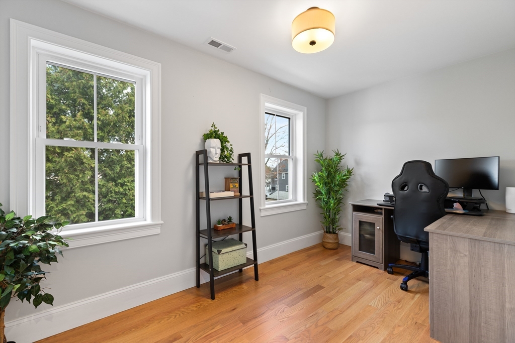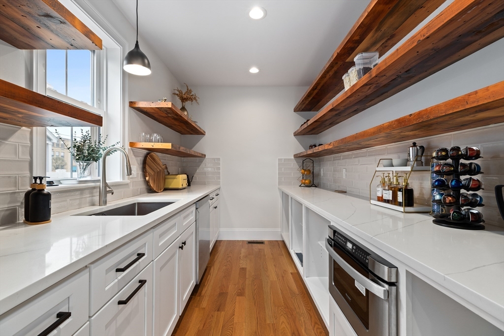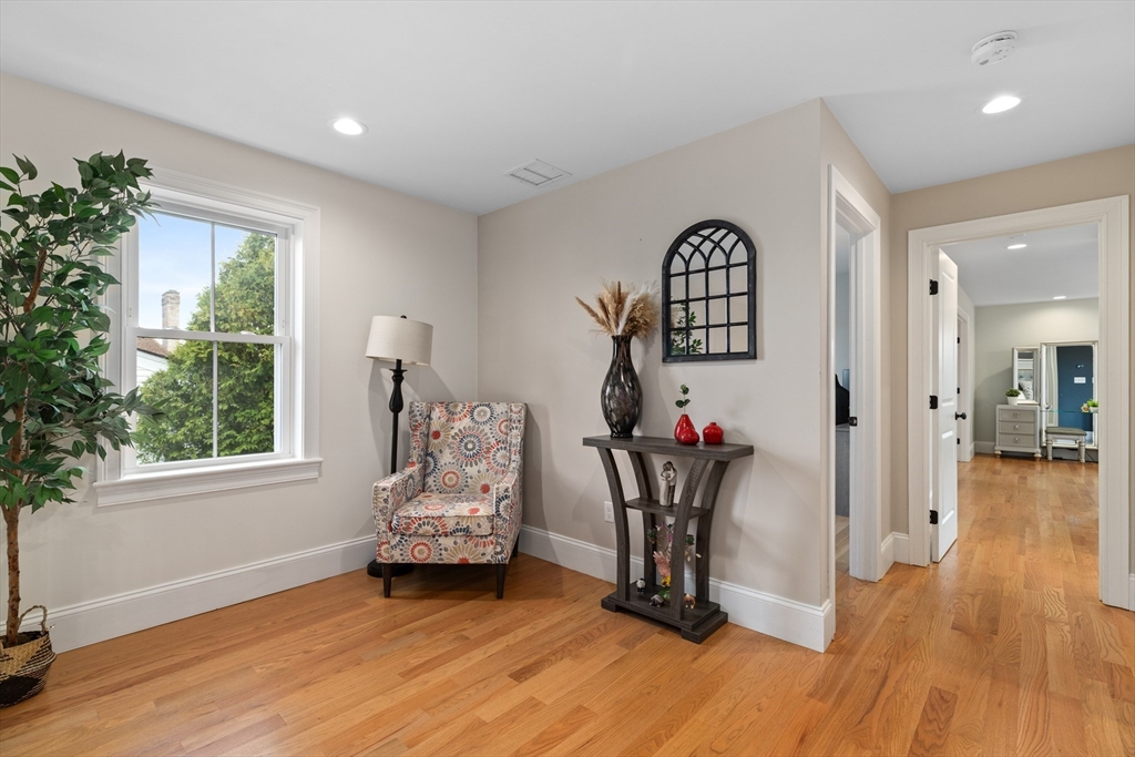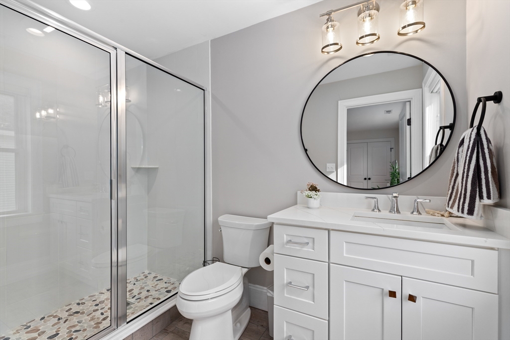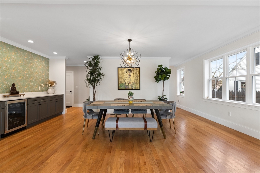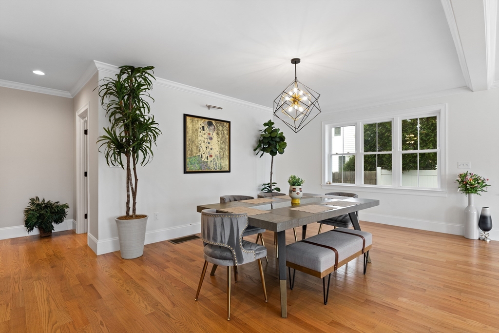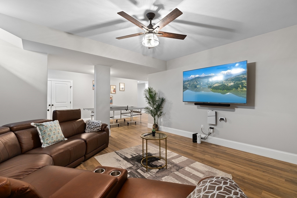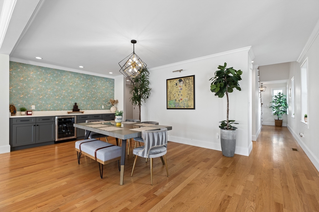 The luxury property at 148 Main St in Waltham’s desirable Rangley Acres is a stunning, recently constructed Colonial that perfectly blends modern elegance with functional design. Spanning approx. 4,514 sq.ft, this sun-drenched home features an open-concept first floor highlighted by a chef’s primary kitchen & a secondary large prep kitchen, bar with beverage fridge, both finished with quartz waterfall islands and premium ss appliances. The living area flows seamlessly thru triple sliding doors to a private fully fenced rear deck & patio. Upstairs, all bedrooms boast private ensuite baths, including a primary suite with a spa-like soaking tub and dual walk-in closets. A fully finished lower level adds a fourth bedroom and family room with full bath, while the walk-up attic offers future expansion potential. Located within walking distance to schools/parks, this home offers city views, a high-efficiency HVAC, and a two-car garage, representing the pinnacle of suburban luxury living.