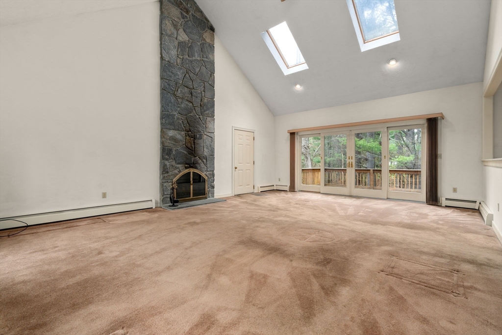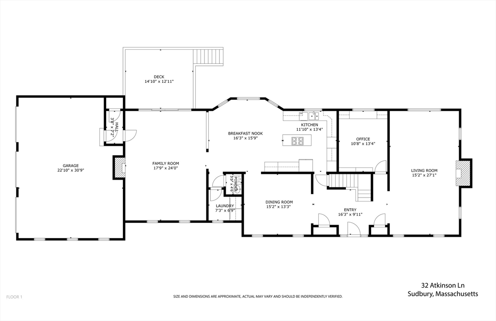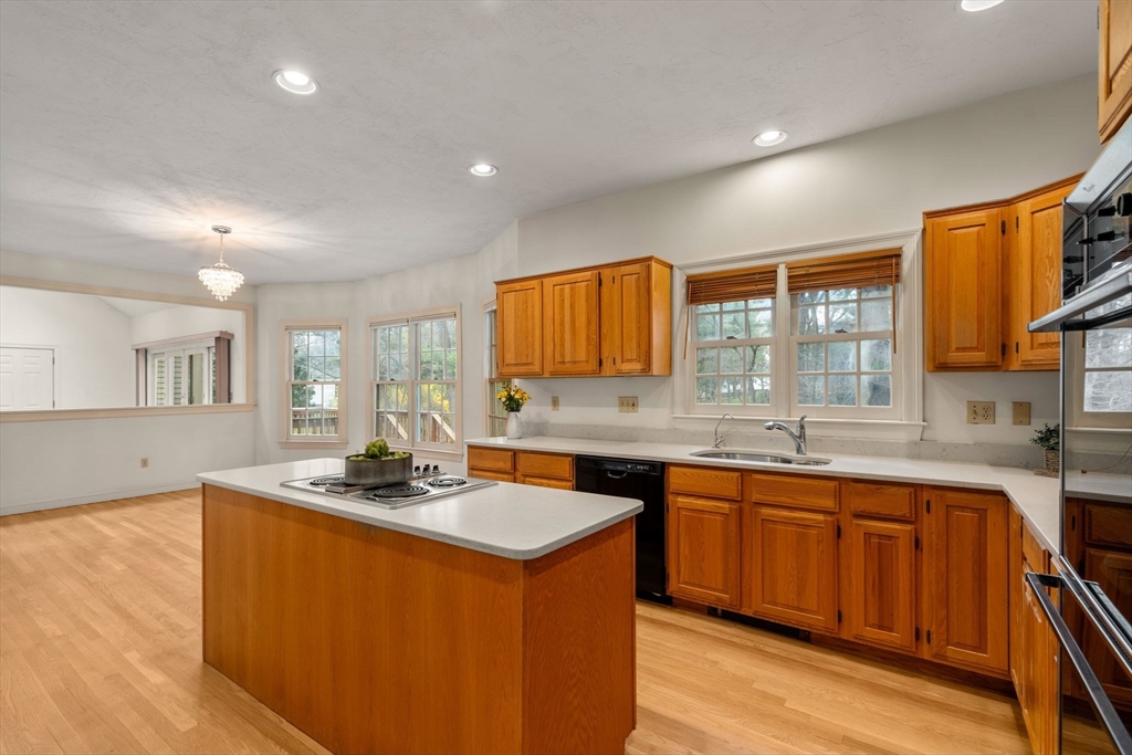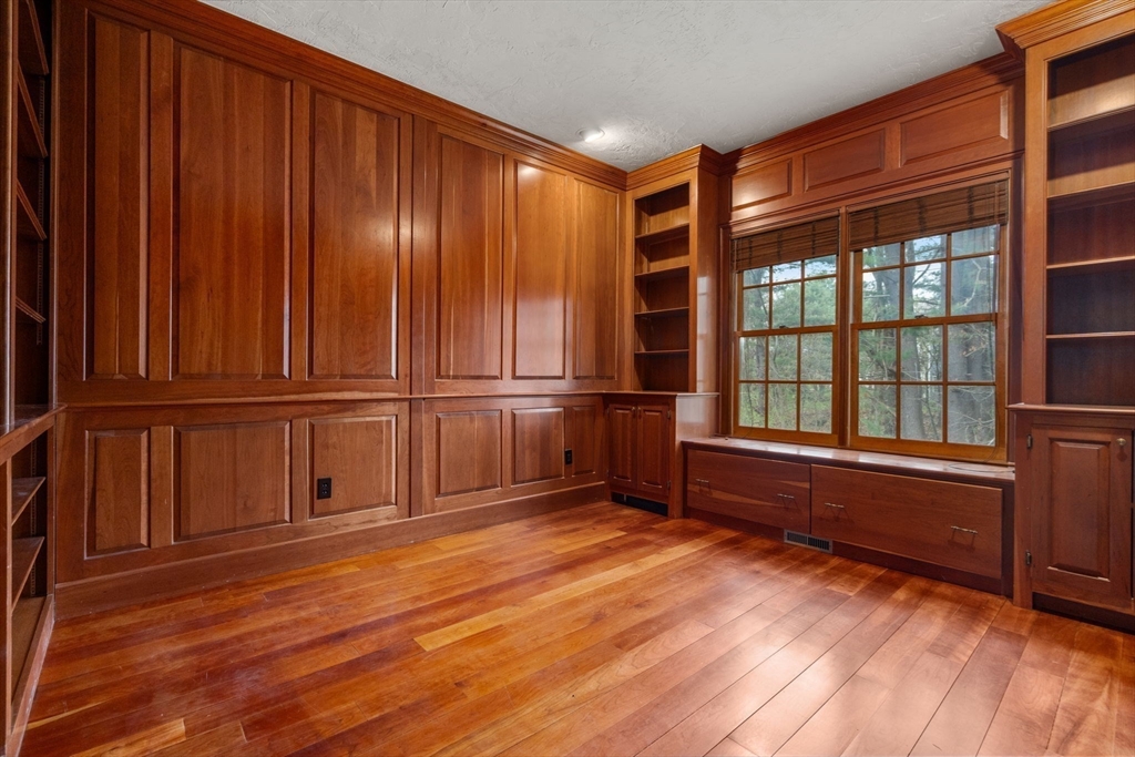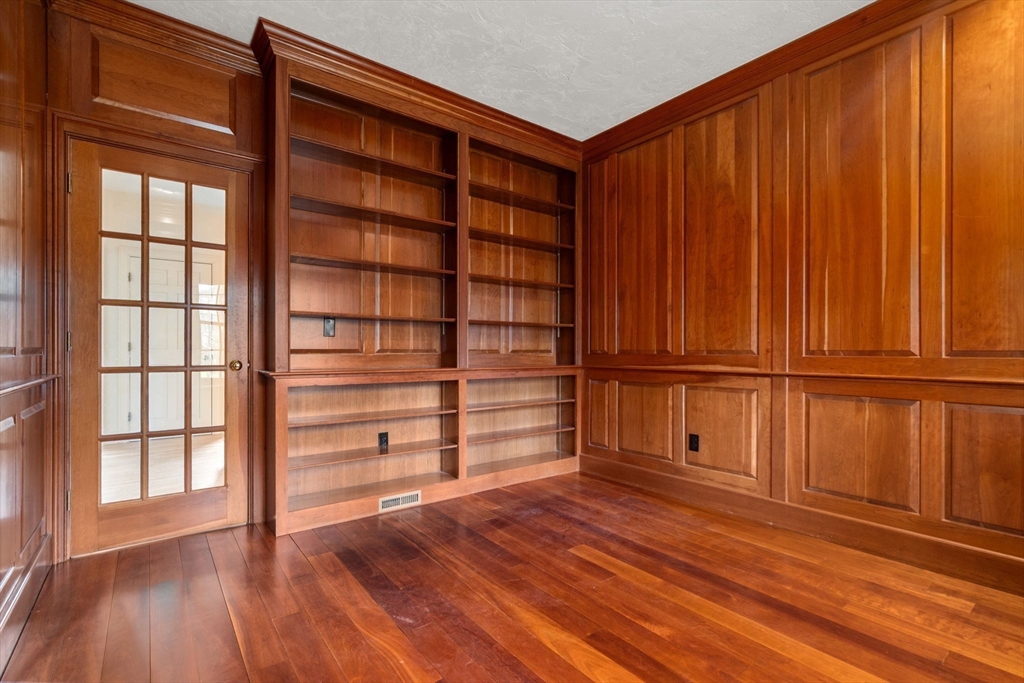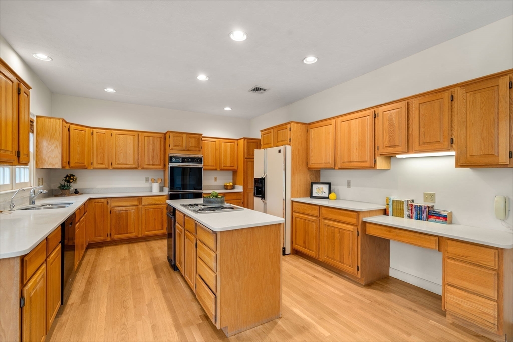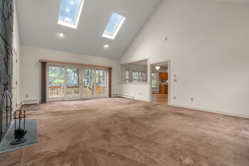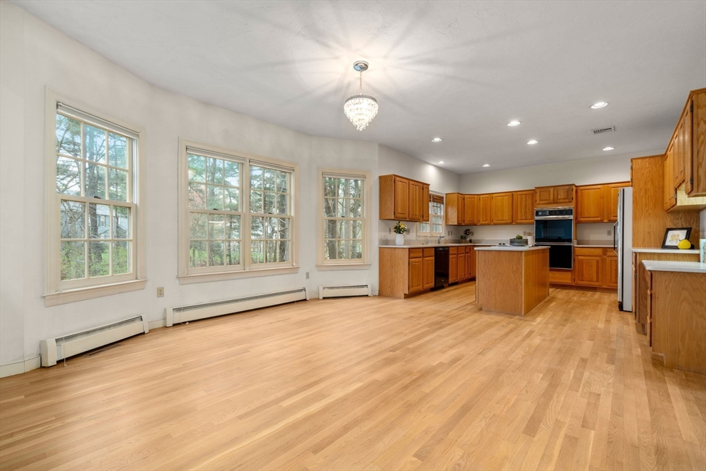 Set in the sought-after Atkinson Farms neighborhood, this elegant residence offers over 3,300 sq ft of refined living space across the main two floors, featuring newly refinished hardwood flooring on the first floor. A dramatic cathedral-ceiling family room with floor-to-ceiling fireplace flows seamlessly to a private deck through French doors and opens to an expansive eat-in kitchen with center island—ideal for both everyday living and entertaining. Formal living and dining rooms are enhanced by detailed crown molding. A private office with custom built-ins provides an exceptional work-from-home experience. First-floor laundry adds convenience. The spacious primary suite includes a private bath, complemented by three additional generously sized bedrooms. Level backyard, three-car garage, gas heat. Ideally located near town fields, playground, and community center