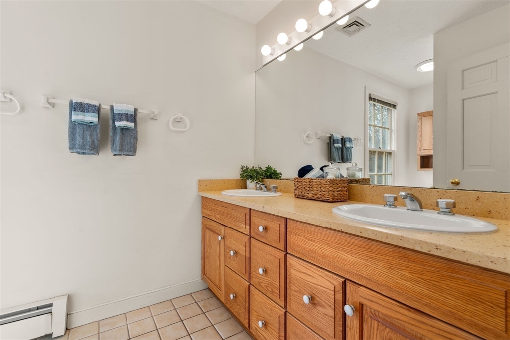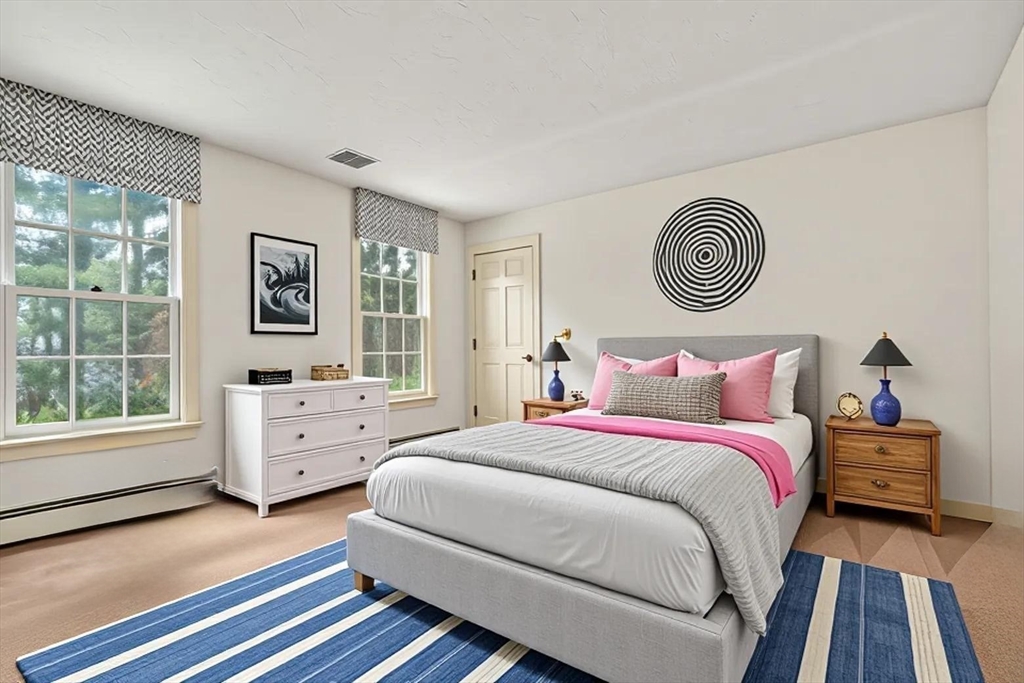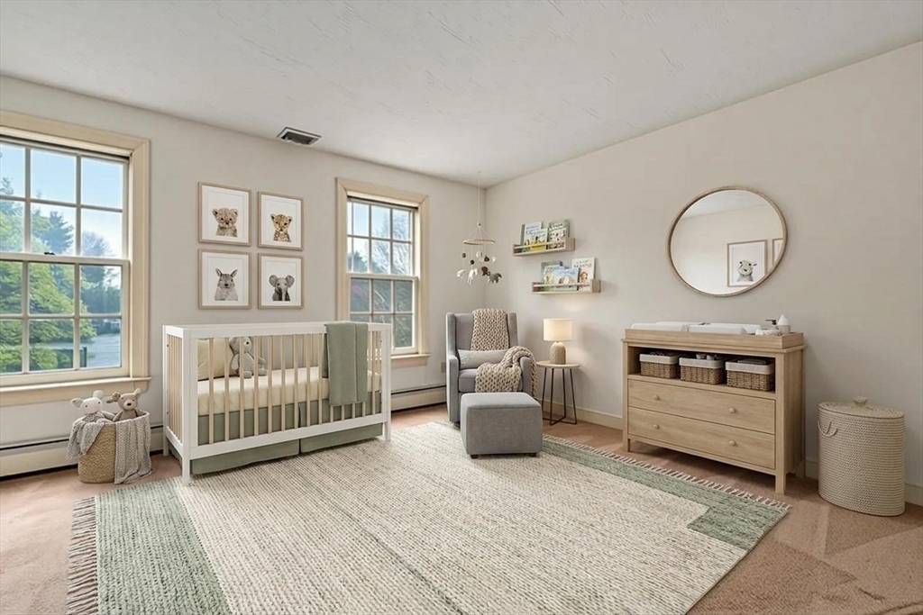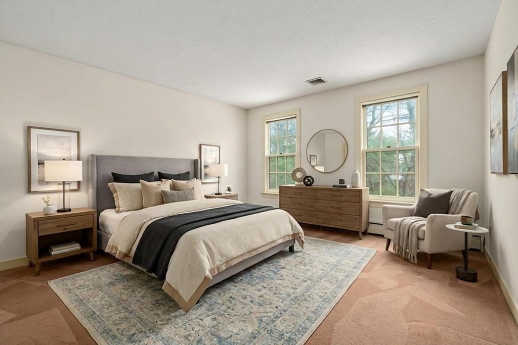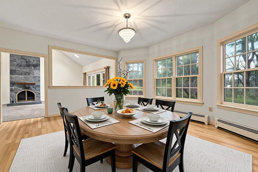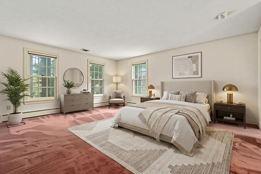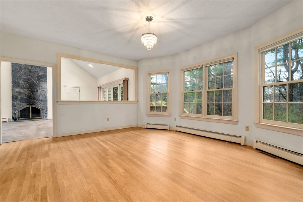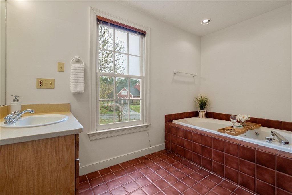Set in the sought-after Atkinson Farms neighborhood, this elegant residence offers over 3,300 sq ft of refined living space across the main two floors, featuring newly refinished hardwood flooring on the first floor. A dramatic cathedral-ceiling family room with floor-to-ceiling fireplace flows seamlessly to a private deck through French doors and opens to an expansive eat-in kitchen with center island—ideal for both everyday living and entertaining. Formal living and dining rooms are enhanced by detailed crown molding. A private office with custom built-ins provides an exceptional work-from-home experience. First-floor laundry adds convenience. The spacious primary suite includes a private bath, complemented by three additional generously sized bedrooms. Level backyard, three-car garage, gas heat. Ideally located near town fields, playground, and community center