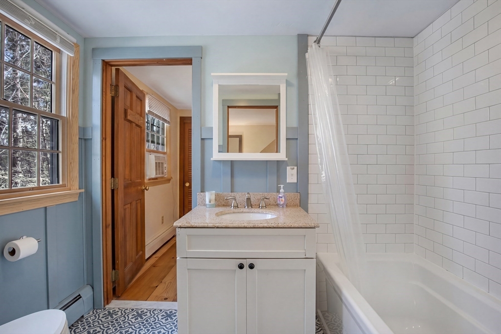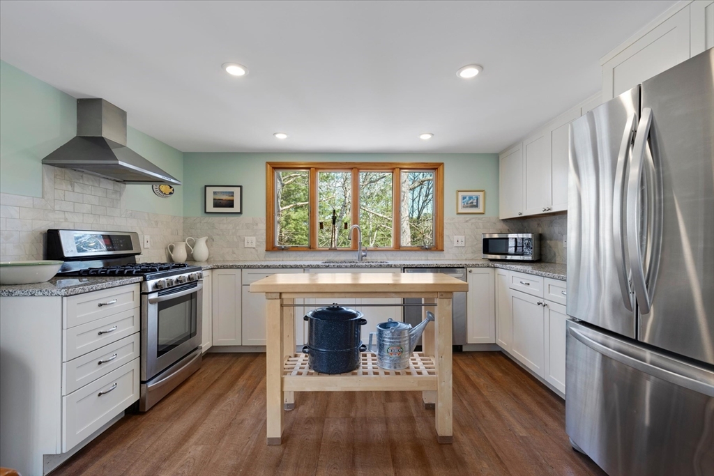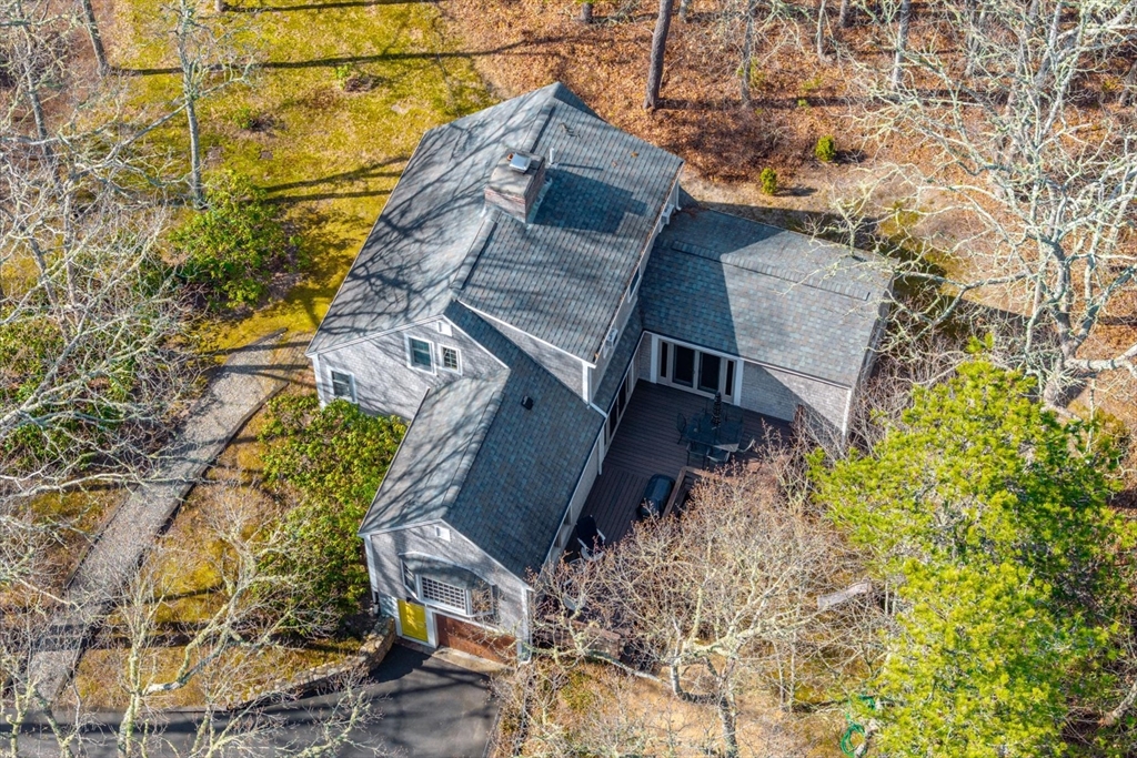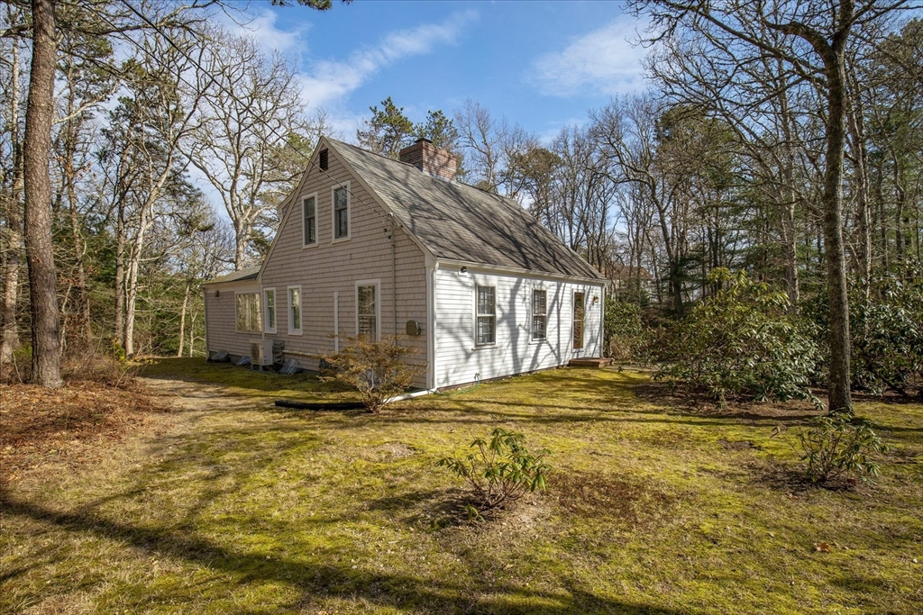 Meticulously maintained cape w/association beach access is located on a quiet cul-de-sac in Long Pond Farms, one of Marston Mills most desirable neighborhoods. Unwind on the rear deck, surrounded by mature plantings, stone walls & nature. Once inside, you'll love the bright & open feel of this unique floor plan. Entryway, w/open stairway & balcony, leads to a large room (currently used as a formal DR) w/fireplace & French doors opening to the rear deck, & to a large, bright LR w/bay window. A small hallway separates a large, modern eat-in kitchen w/updated cabinetry, granite counters, & SS appliances. Guests can come & go from the dining area to the rear deck. ½ bath in the hall leading to the large primary suite, w/full, private bath. On the 2nd level, you'll find 2 good-sized beds, w/adjoining full bath. You'll find the washer/dryer in the unfinished lower level, which could be finished to create more living space. There is direct access to the garage, which is deep enough for 2 cars