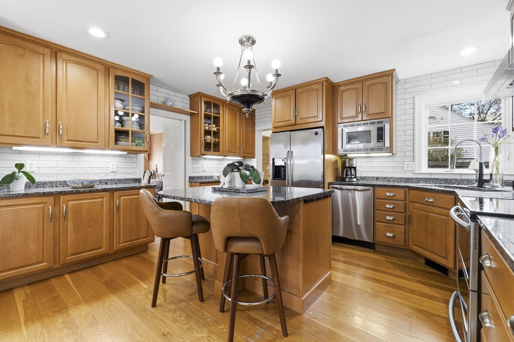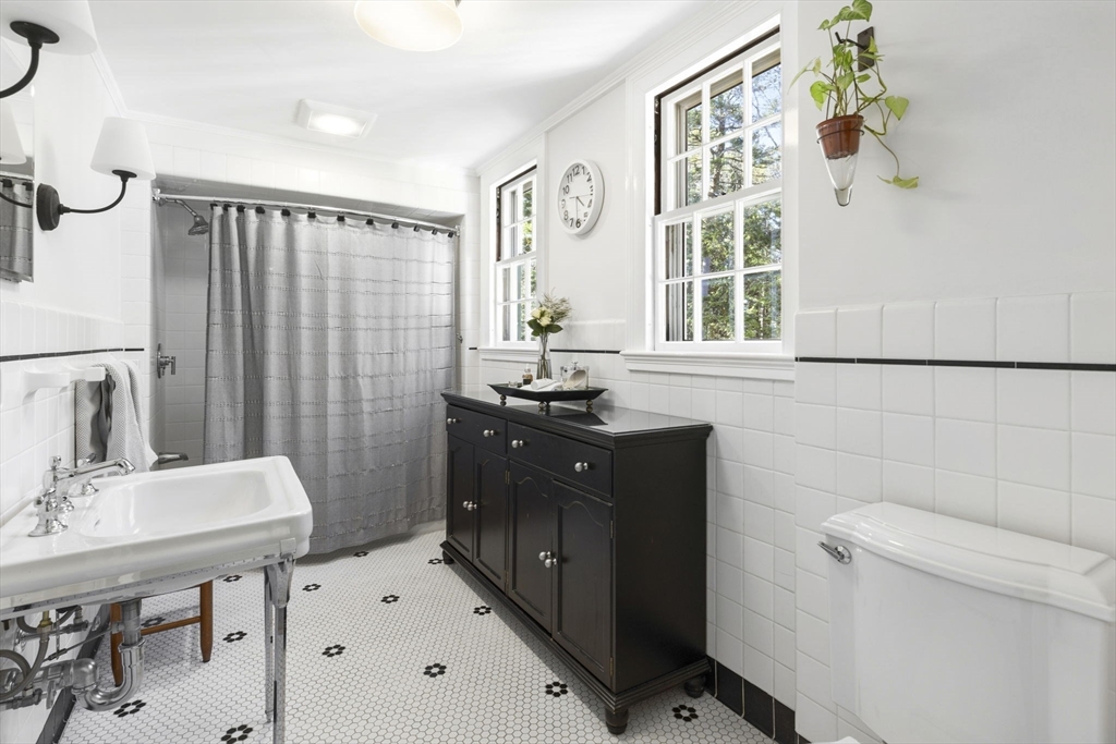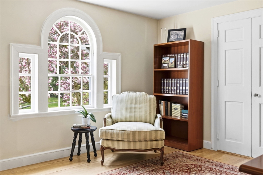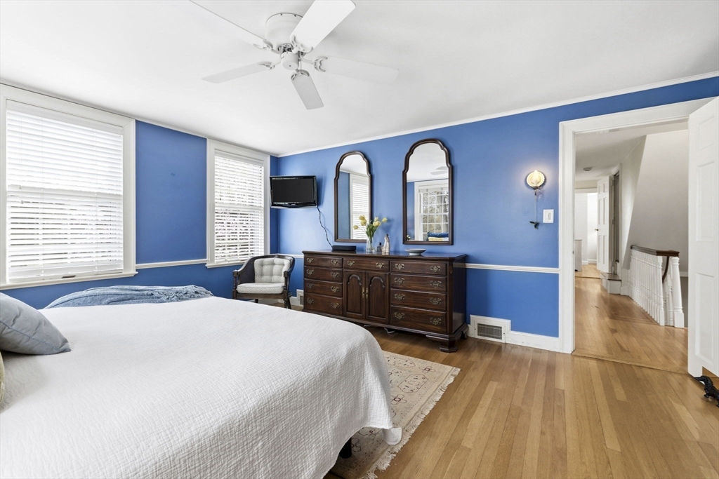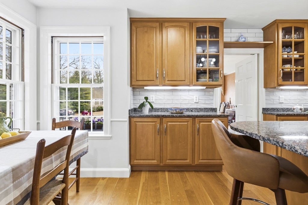 This classic Royal Barry Wills home is beautifully sited on one of the loveliest lots in the highly sought-after Johnson Acres neighborhood. Full of charm and timeless appeal, the home offers hardwood floors throughout and gracious, inviting living spaces. A spacious entry foyer opens to a lovely dining room w/ two built-in china cabinets. The kitchen features a center island, SS appliances, a b'fast nook, and opens to a sunroom overlooking the expansive backyard. The front-to-back living room is warm and elegant, with a fireplace, built-in cabinetry, and French doors leading to a beautiful patio surrounded by lush gardens. A 1/2 bath & laundry completes the main level. Upstairs are four bedrooms, including the primary ensuite w/ walk-in closet and private bath, along with a guest bath.The third floor offers flexible bonus space ideal for a family room, or home office. A special offering with timeless design, beautiful grounds and easy access to downtown shops, restaurants & schools.