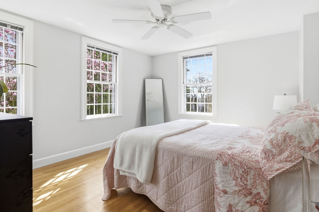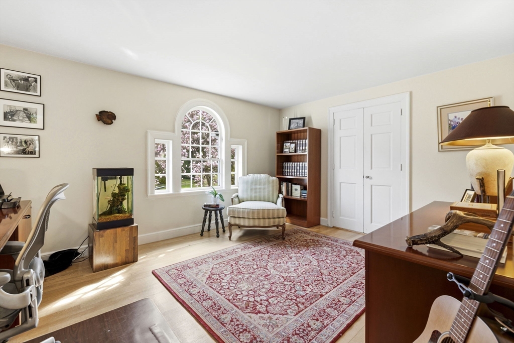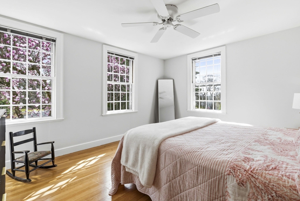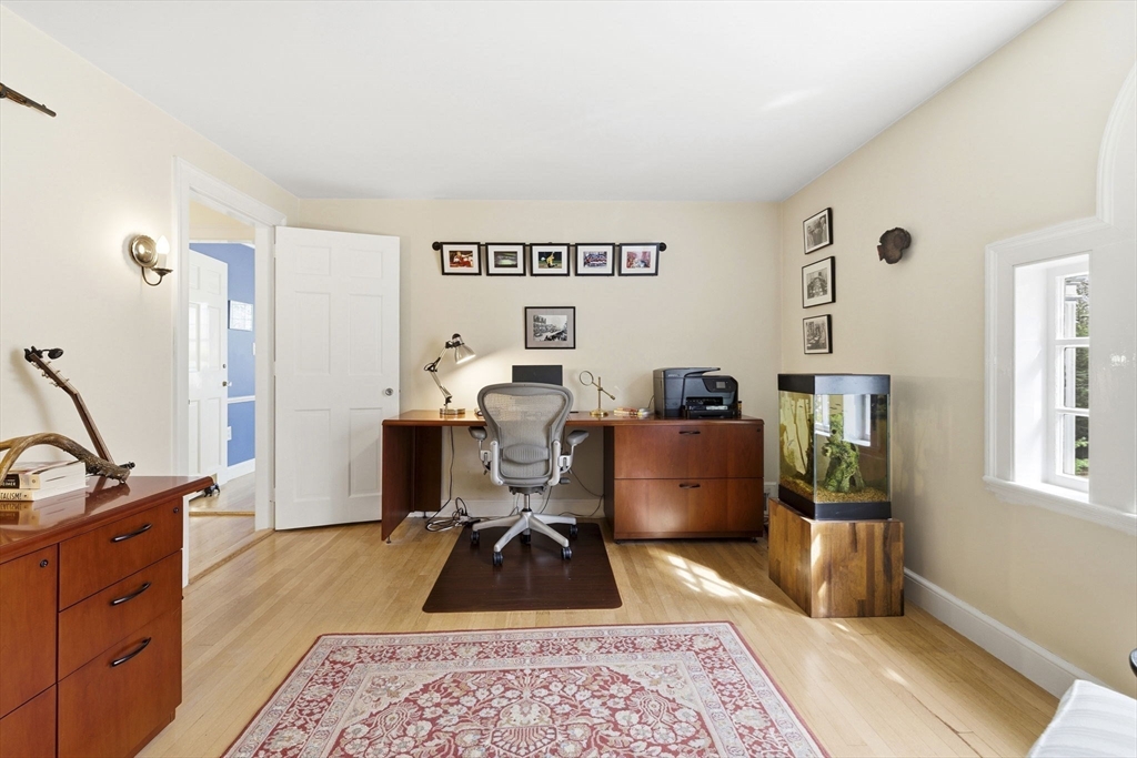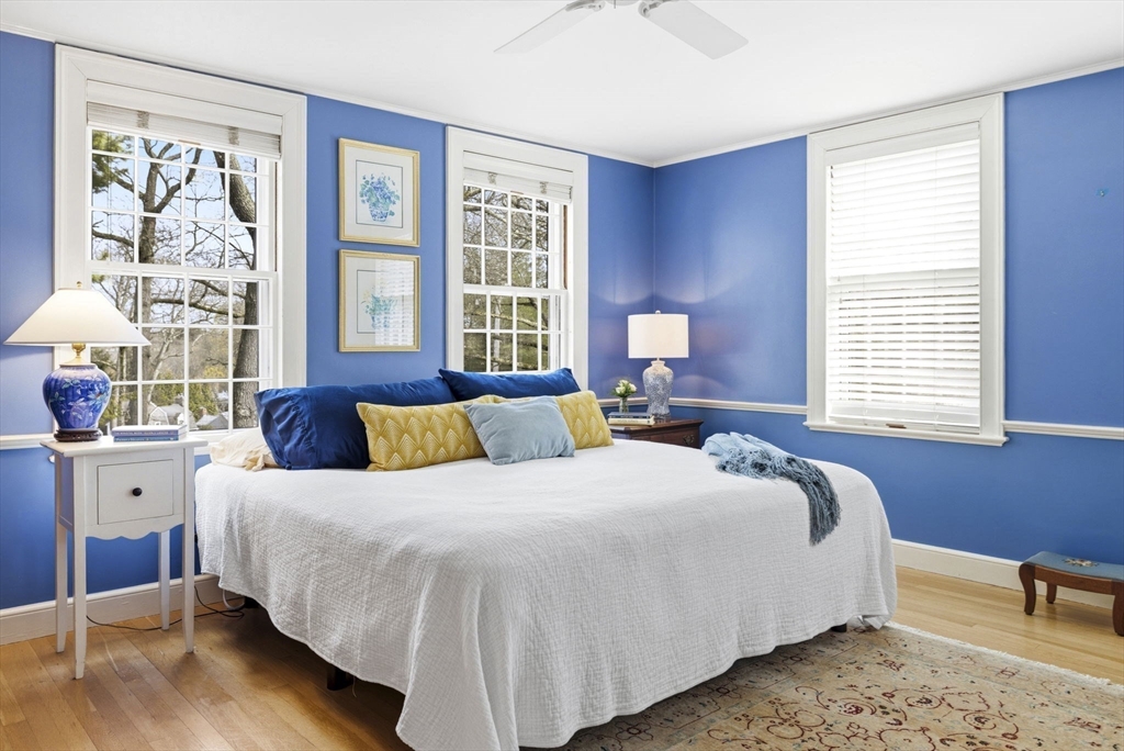 This classic Royal Barry Wills home is beautifully sited on one of the loveliest lots in the highly sought-after Johnson Acres neighborhood. Full of charm and timeless appeal, the home offers hardwood floors throughout and gracious, inviting living spaces. A spacious entry foyer opens to a lovely dining room w/ two built-in china cabinets. The kitchen features a center island, SS appliances, a b'fast nook, and opens to a sunroom overlooking the expansive backyard. The front-to-back living room is warm and elegant, with a fireplace, built-in cabinetry, and French doors leading to a beautiful patio surrounded by lush gardens. A 1/2 bath & laundry completes the main level. Upstairs are four bedrooms, including the primary ensuite w/ walk-in closet and private bath, along with a guest bath.The third floor offers flexible bonus space ideal for a family room, or home office. A special offering with timeless design, beautiful grounds and easy access to downtown shops, restaurants & schools.