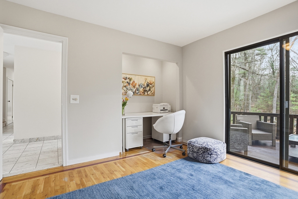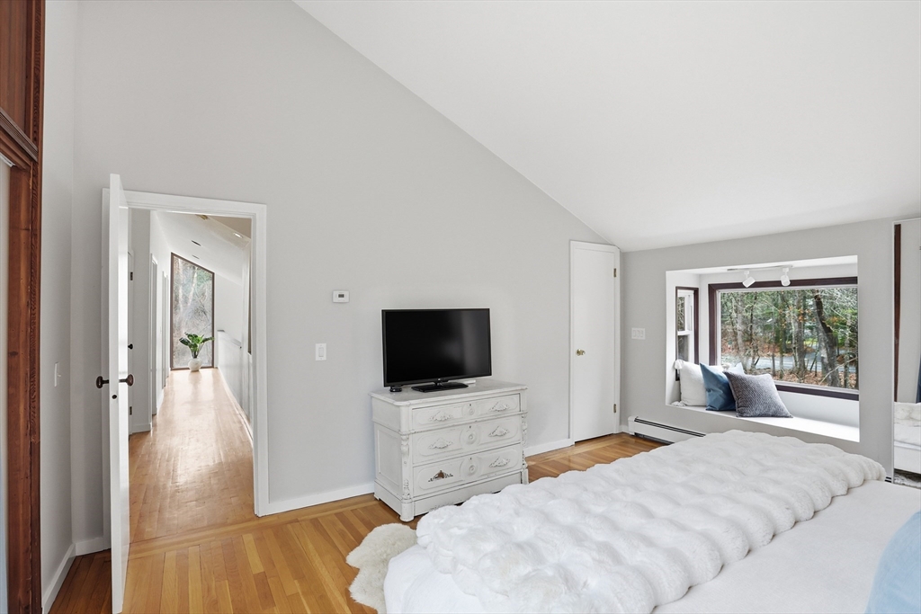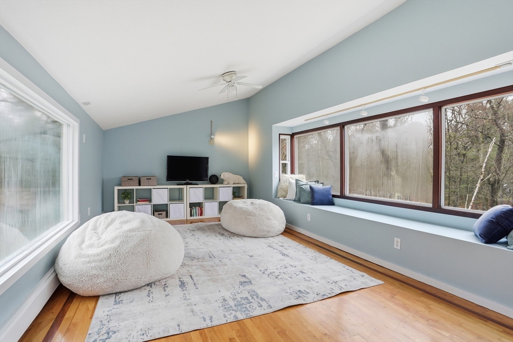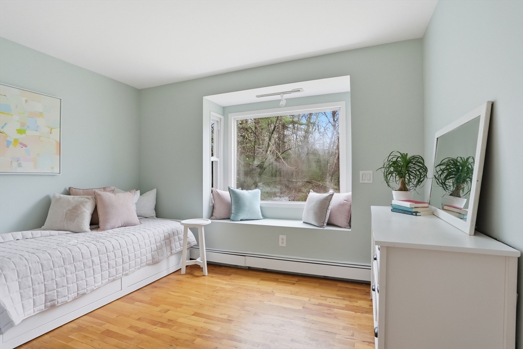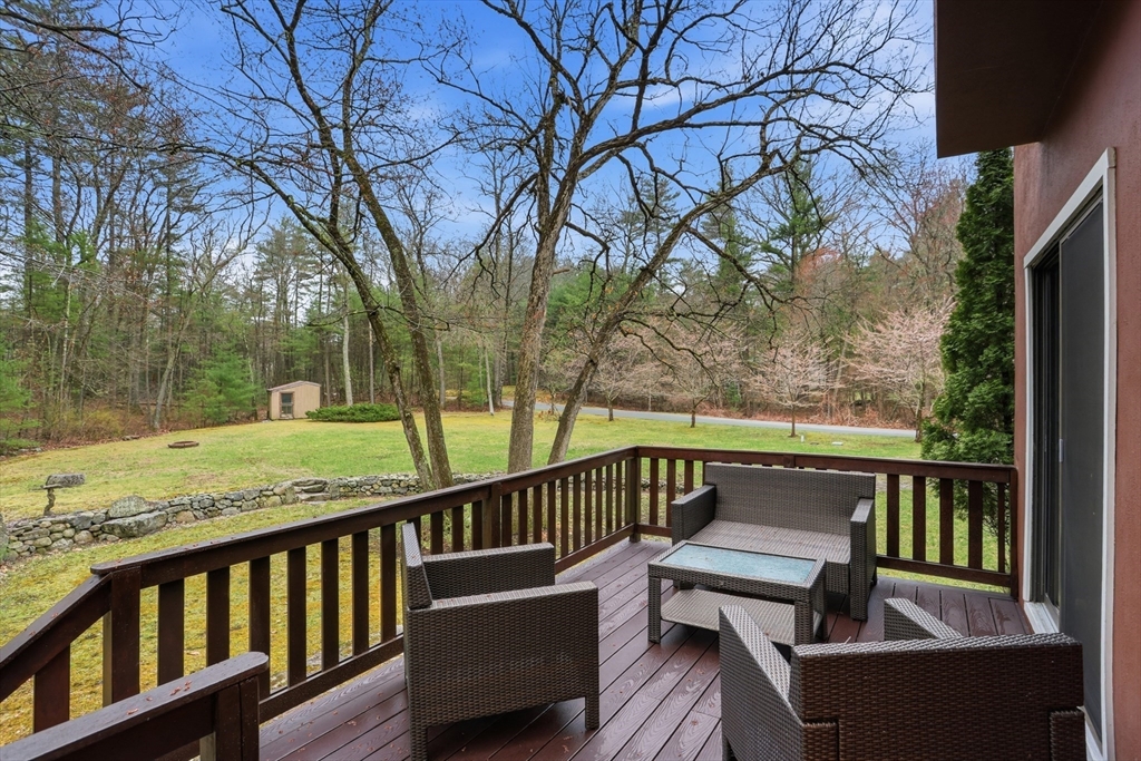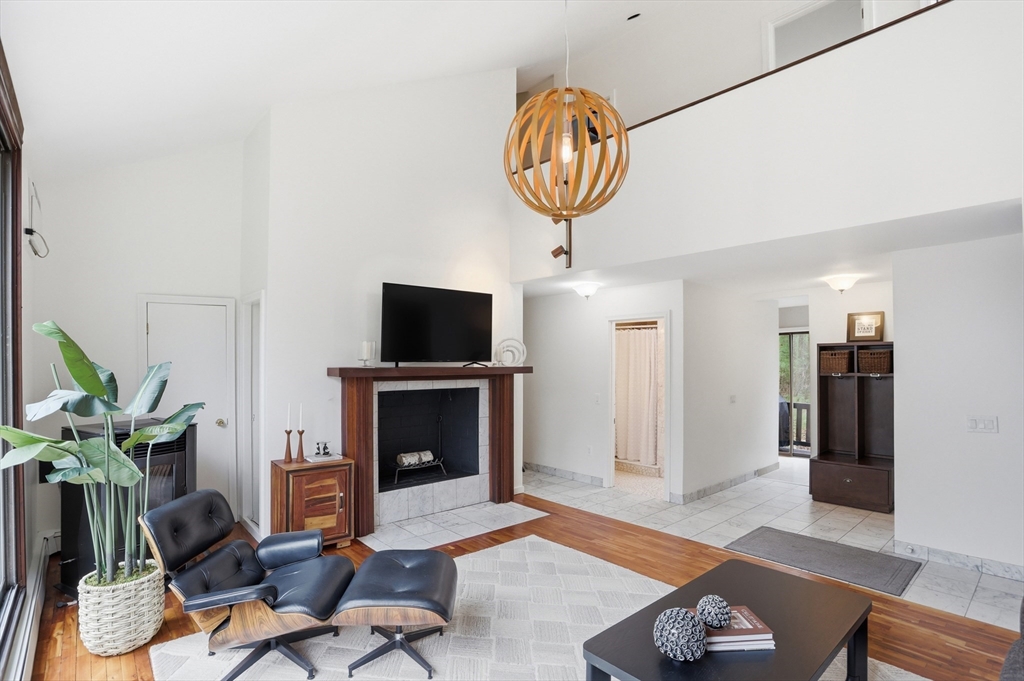 Nestled on a picturesque lot, abutting conservation land & trails, this contemporary home blends modern design & natural beauty. Set back & surrounded by trees, this property provides a peaceful retreat w/a special landscape. A bright layout w/soaring ceilings, expansive windows & seamless flow. A sun-filled LR is anchored by a FP & pellet stove & opens to an oversized deck. Kitchen offers SS appliances & dining w/lovely views. 4 BR’s, including a spacious primary, along w/a versatile bonus rm perfect for office, playroom or studio provide comfort & functionality. Outside enjoy an expansive yard, stonework & natural features, where a seasonal vernal pond enhances the property’s charm & ecological appeal. Relax on the deck, explore the grounds, or host gatherings, this home offers a rare connection to nature. Located in Chestnut Estates, close to local amenities, conservation land & top-rated schools. A truly special offering—where contemporary living meets a peaceful, natural setting.