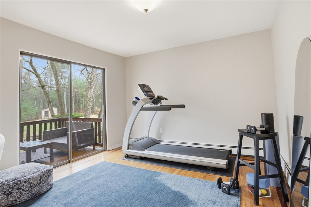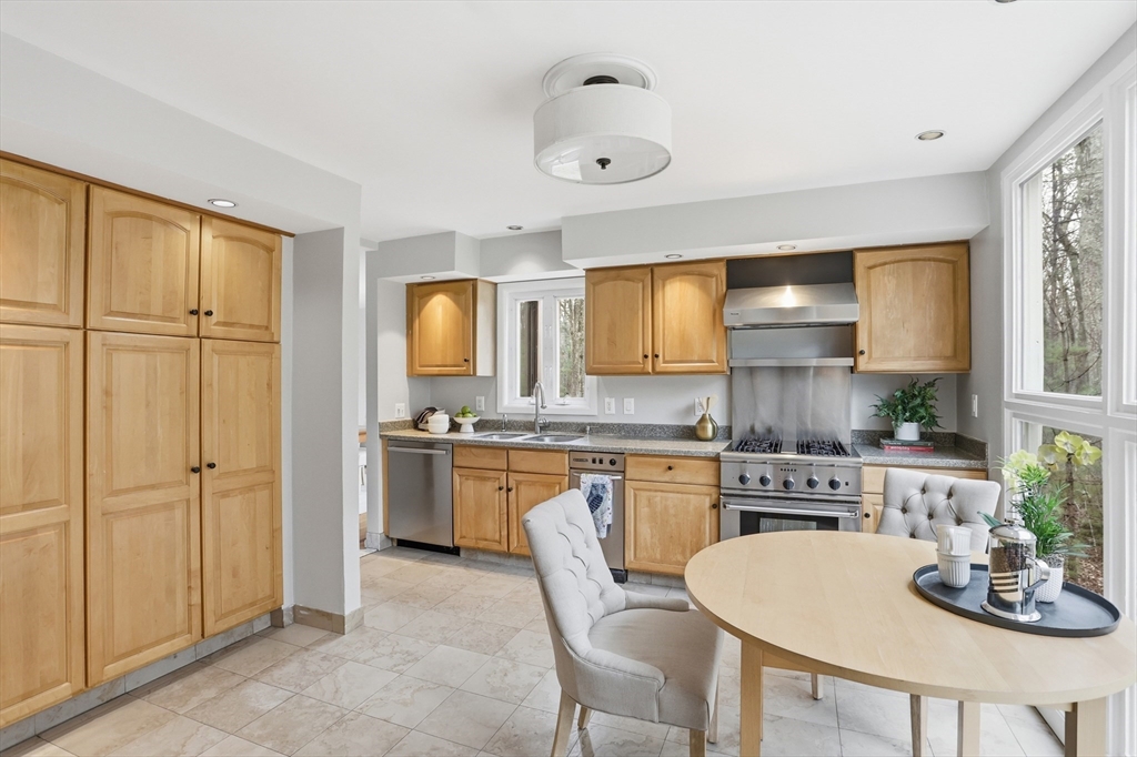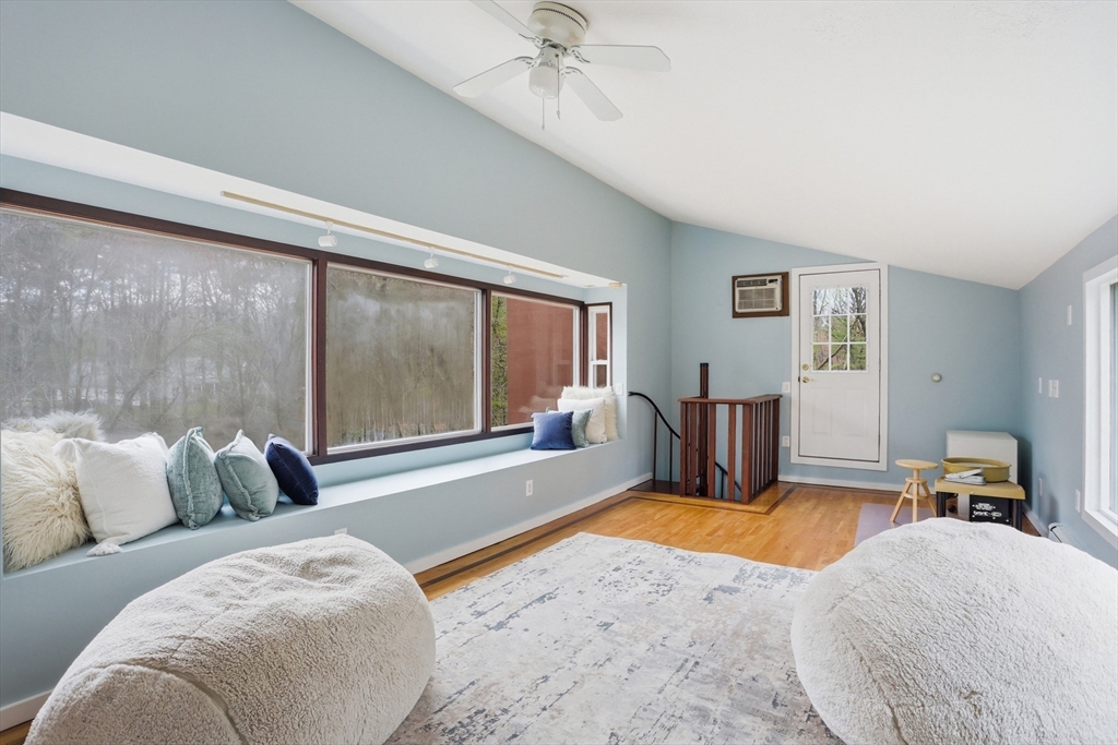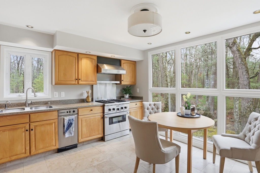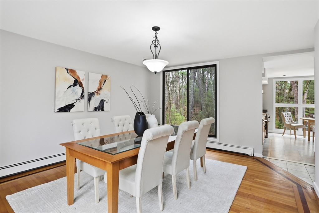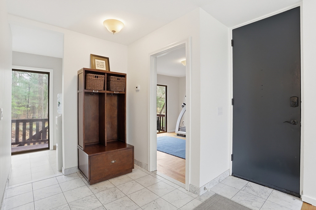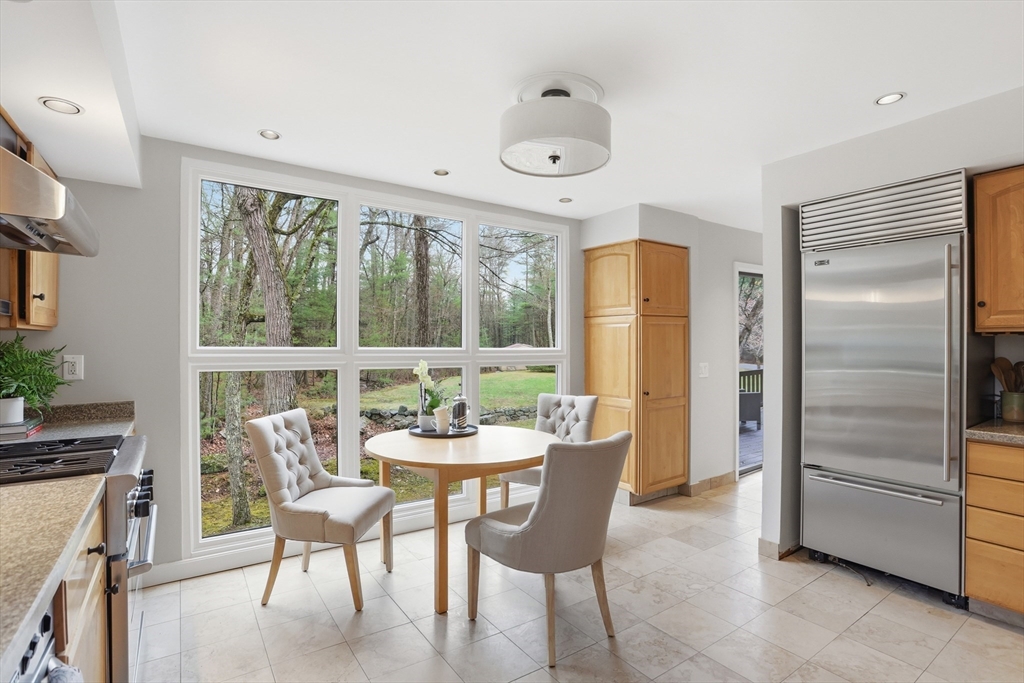 Nestled on a picturesque lot, abutting conservation land & trails, this contemporary home blends modern design & natural beauty. Set back & surrounded by trees, this property provides a peaceful retreat w/a special landscape. A bright layout w/soaring ceilings, expansive windows & seamless flow. A sun-filled LR is anchored by a FP & pellet stove & opens to an oversized deck. Kitchen offers SS appliances & dining w/lovely views. 4 BR’s, including a spacious primary, along w/a versatile bonus rm perfect for office, playroom or studio provide comfort & functionality. Outside enjoy an expansive yard, stonework & natural features, where a seasonal vernal pond enhances the property’s charm & ecological appeal. Relax on the deck, explore the grounds, or host gatherings, this home offers a rare connection to nature. Located in Chestnut Estates, close to local amenities, conservation land & top-rated schools. A truly special offering—where contemporary living meets a peaceful, natural setting.