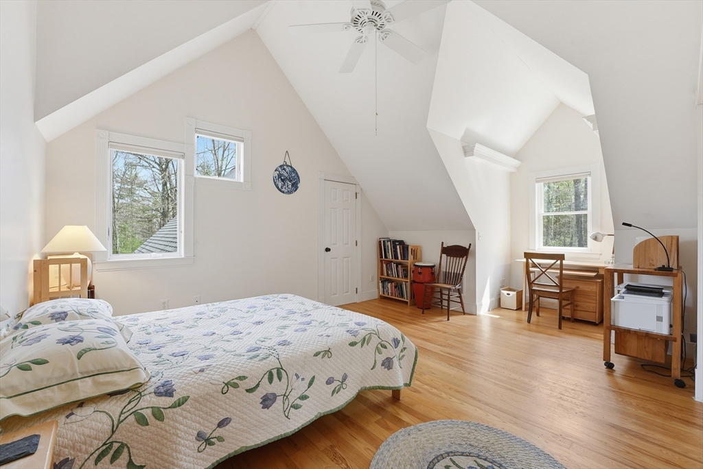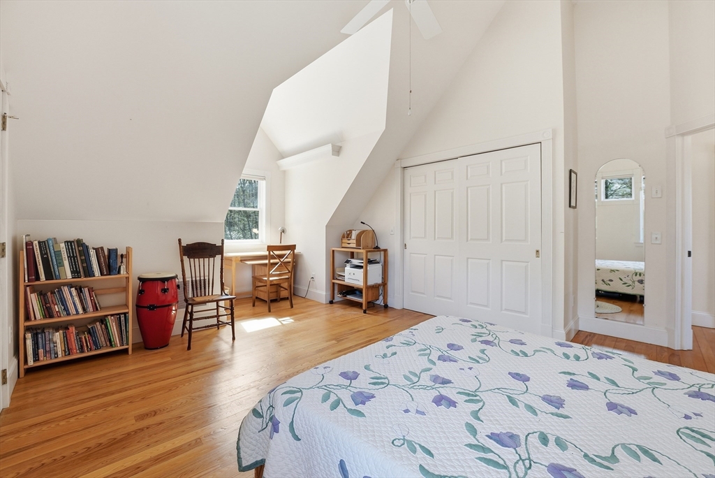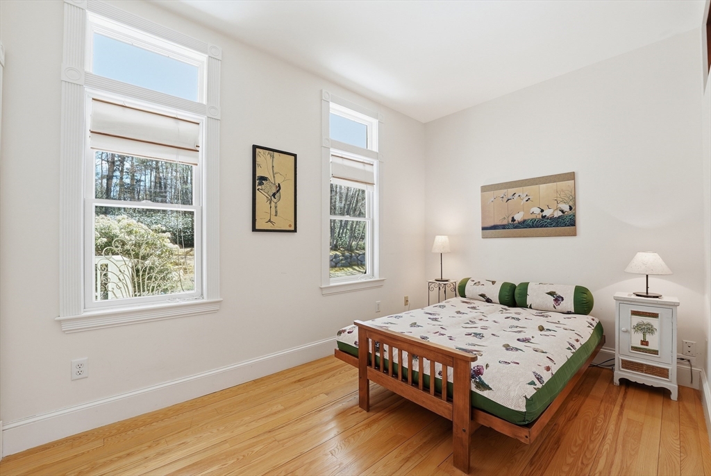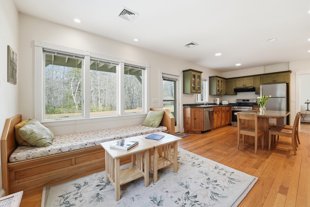 Tucked down a winding drive, this stunning 5bed/3bath contemporary home is a rare find in the Pioneer Valley - a true sanctuary where beauty & versatility converge.This single or 2-family home (you choose!) is surrounded by open spaces alive w/perennials & framed by light-dappled woods. High ceilings, hardwood floors, and an abundance of windows throughout bring the natural world in. The 1st floor includes a great rm w/wood stove & cozy window seat, open to a dining area w/sliders to a deck, & spacious kitchen, plus 1st floor bed & bath. Upstairs are 2 expansive bedrooms w/cathedral ceilings, tiled bath w/soaking tub & walk-in attic, w/option to add an addt'l room. The refined lower level has flexible use for more family space or rental or in-law apt w/ an open living rm/kitchen, 2 beds, full bath & patio. Tastefully wheelchair accessible both inside & out includes compressed-earth trails that curve through moss and woodland. All next to Mineral Hills trails. Your magical oasis awaits!