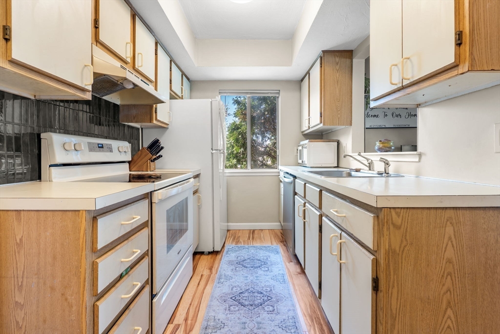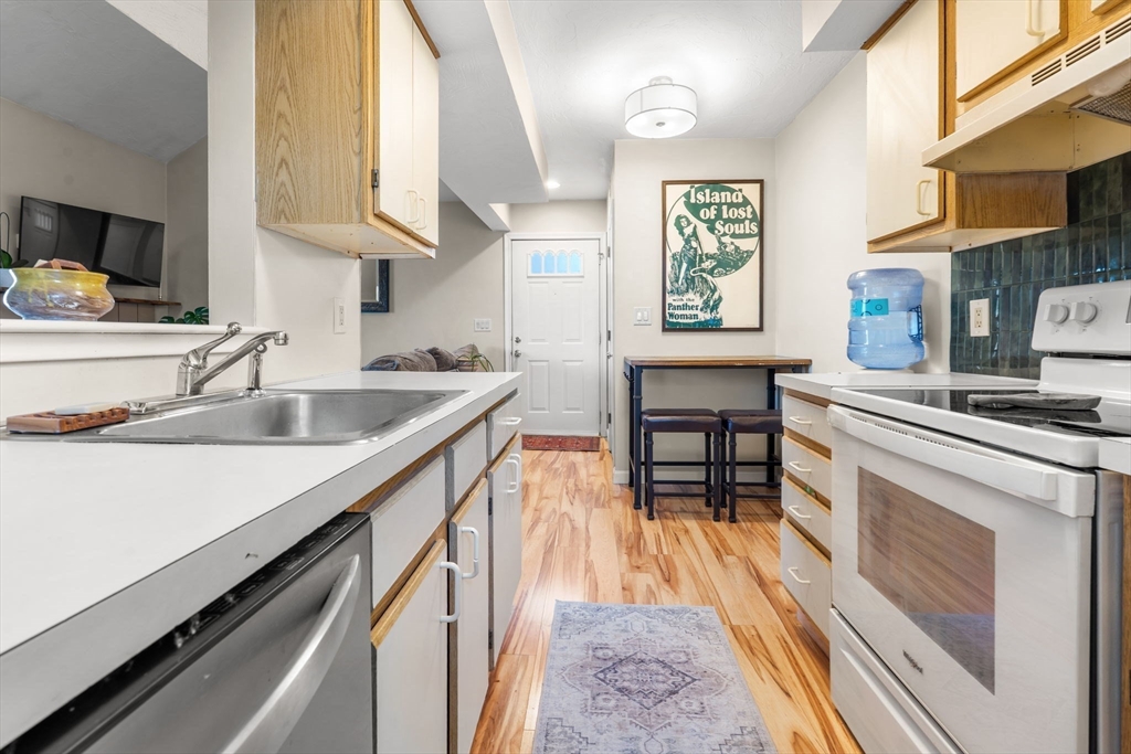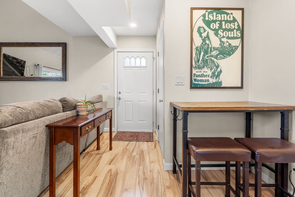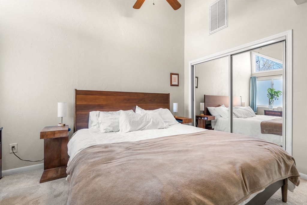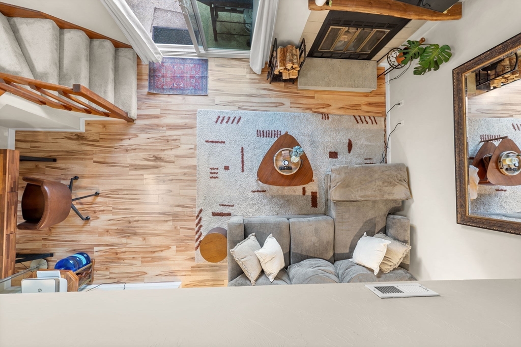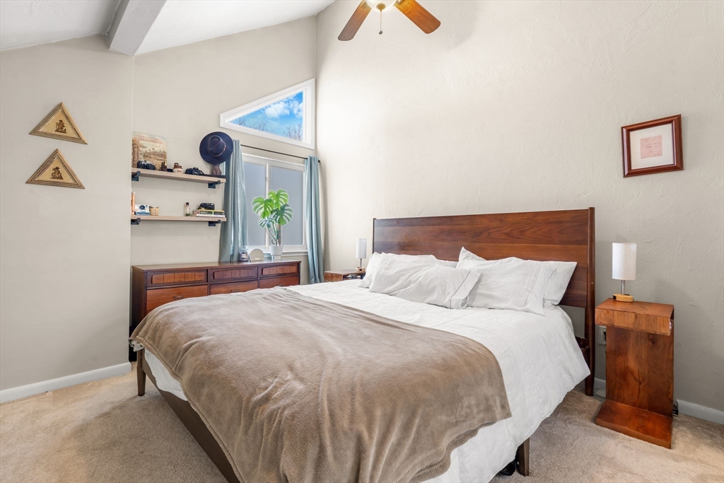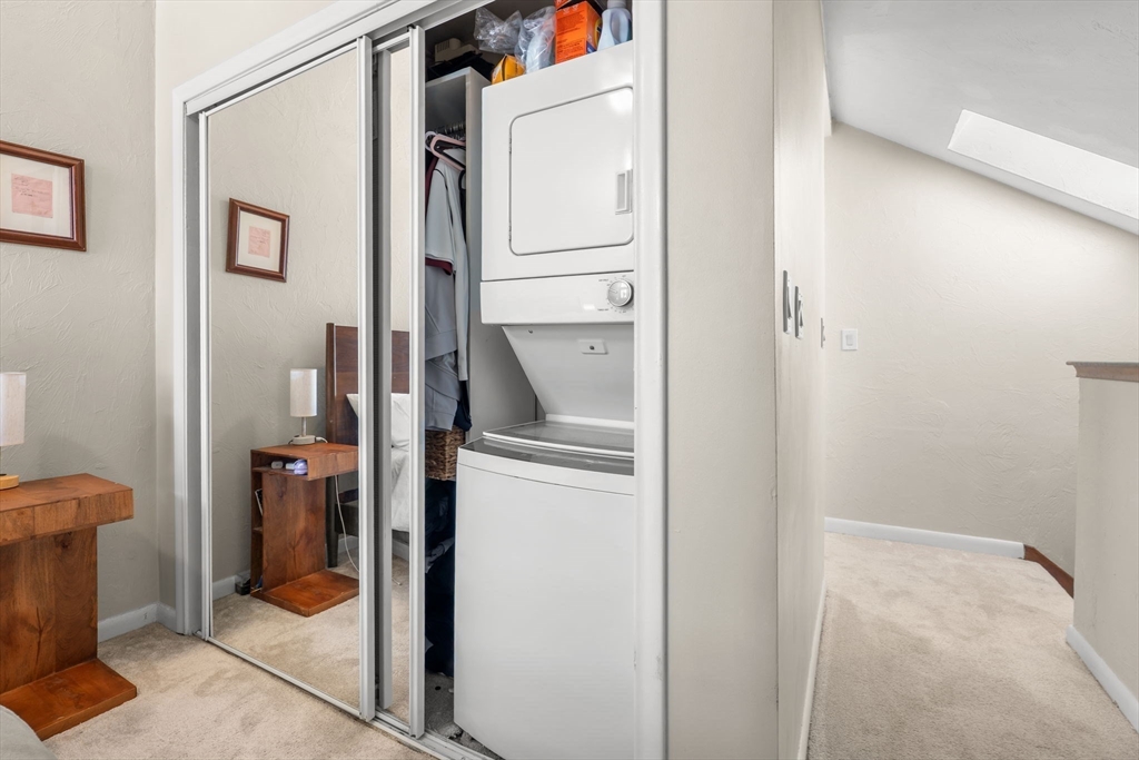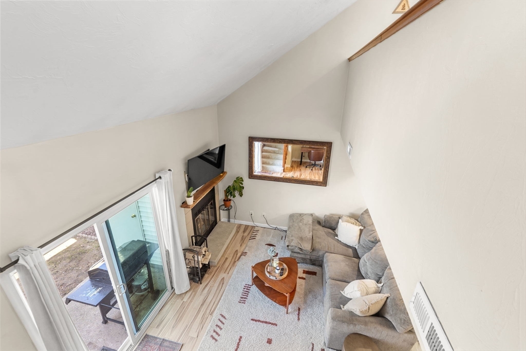 Welcome to Whitman Pond Village! Step into this adorable one-bedroom unit and you’re immediately greeted by soaring vaulted ceilings and an abundance of natural sunlight pouring in through the sliding glass door, which opens to your own private yard space. The main level features a cozy living room with a fireplace, along with a flexible area perfect for a home office or dining space, and a charming kitchen. Upstairs, the loft-style bedroom offers a bright and airy retreat, complete with in-unit laundry conveniently tucked into the closet. You’ll also find a freshly painted full bathroom with new tile flooring. This unit truly checks all the boxes for easy homeownership—private outdoor space, in-unit laundry, deeded parking, and extra storage. What more could you need?