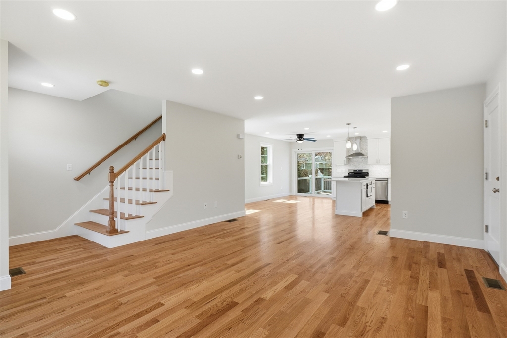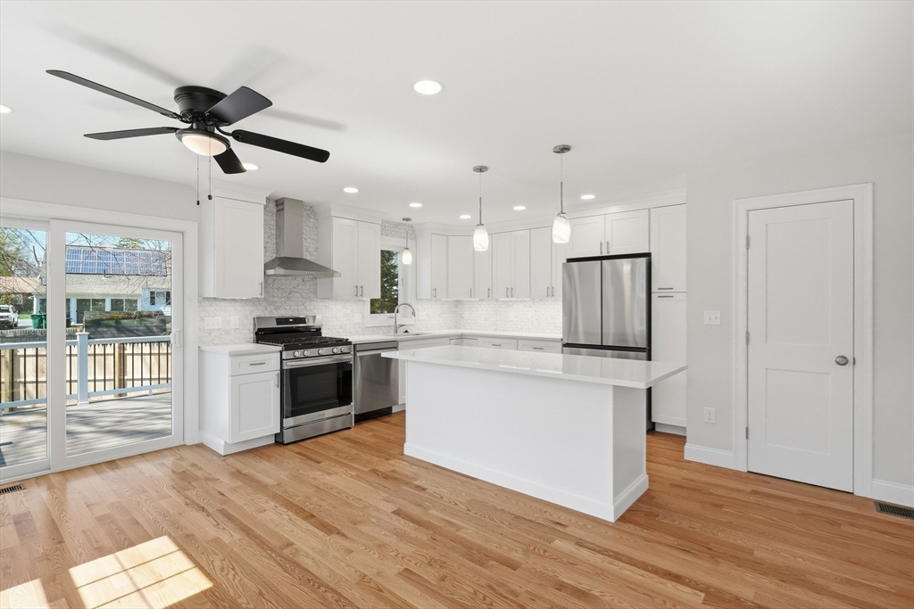 Welcome home to 25 Cumberland Rd, one of Lynn's newest constructions. Tucked away just off of Lynnfield Street with close proximity to the highway and two blocks away from Gowdy Memorial Playground, this beautifully built home opens to a sunkissed open floor plan and the spacious living room, which offers an electric fireplace with media connections. The kitchen layout includes an island with seating, ventilation/hood over gas stove, pendant lighting, and quartz countertops. The second floor houses four bedrooms, including a primary bedroom with ensuite full bathroom featuring double sinks and a soaker tub. Need more space? The full-size, unfinished basement is perfect for expansion if needed! Two-car garage and a lot size of 16,000+ sq ft, this home has it all and then some! Don't miss out on your chance to make this dream house yours!