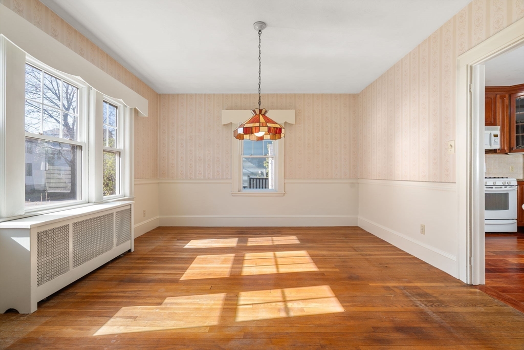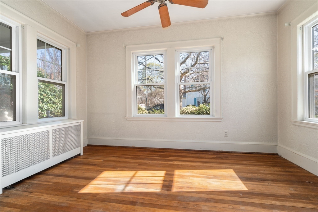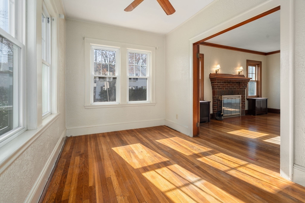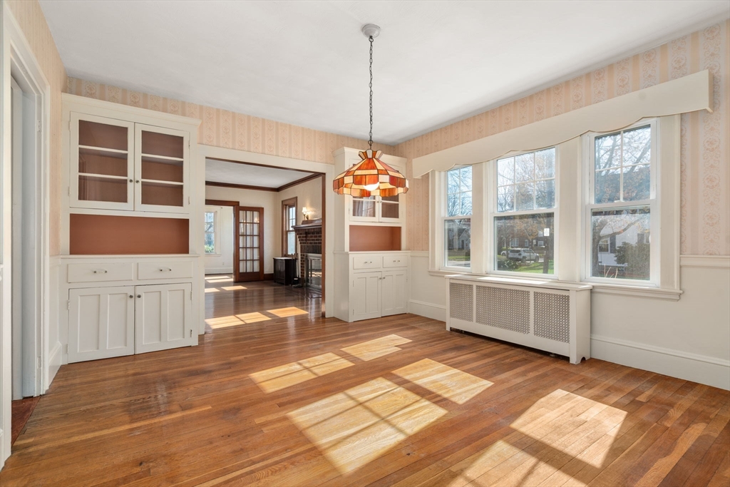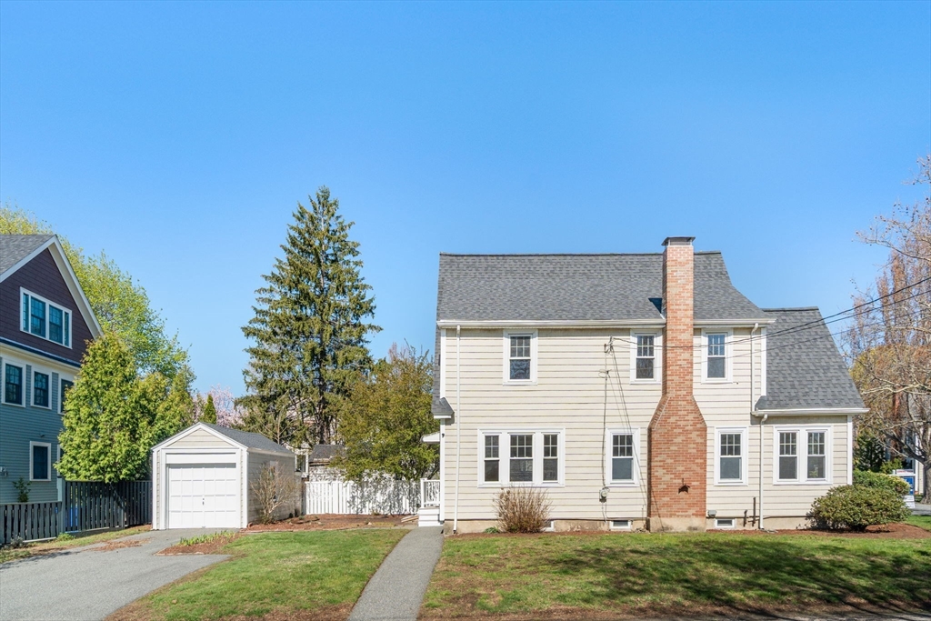 Charming 3-bed, 1-bath home ideally located on a quiet side street in the heart of Belmont Center. Lovingly maintained by the same family for apprx 70 years, this home features a spacious living room with a wood-burning fireplace and a formal dining room with beautiful period details and built-in china cabinets. A bright sunroom wrapped in windows offers a perfect spot to relax or work from home. An updated kitchen with access to the patio completes this level. A generous landing welcomes you to the second floor. The primary bedroom includes a walk-in closet, along with two additional well-sized bedrooms. Set on a corner lot, the home is filled with natural light. Newer roof and replacement windows throughout. Additional highlights include a one-car garage, expanded off-street parking, and a private patio. High ceilings, a walk-up attic, and an unfinished lower level, offers potential for expansion. Close to commuter rail, bus to Harvard Square, and shops and restaurants of Belmont.