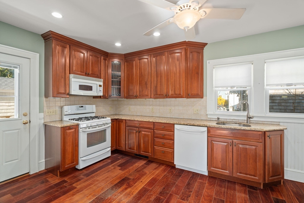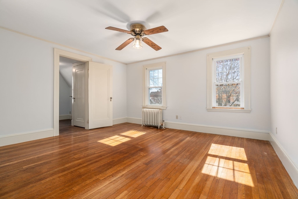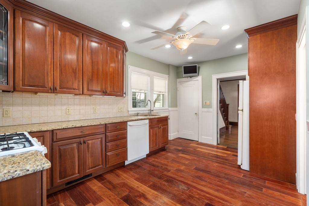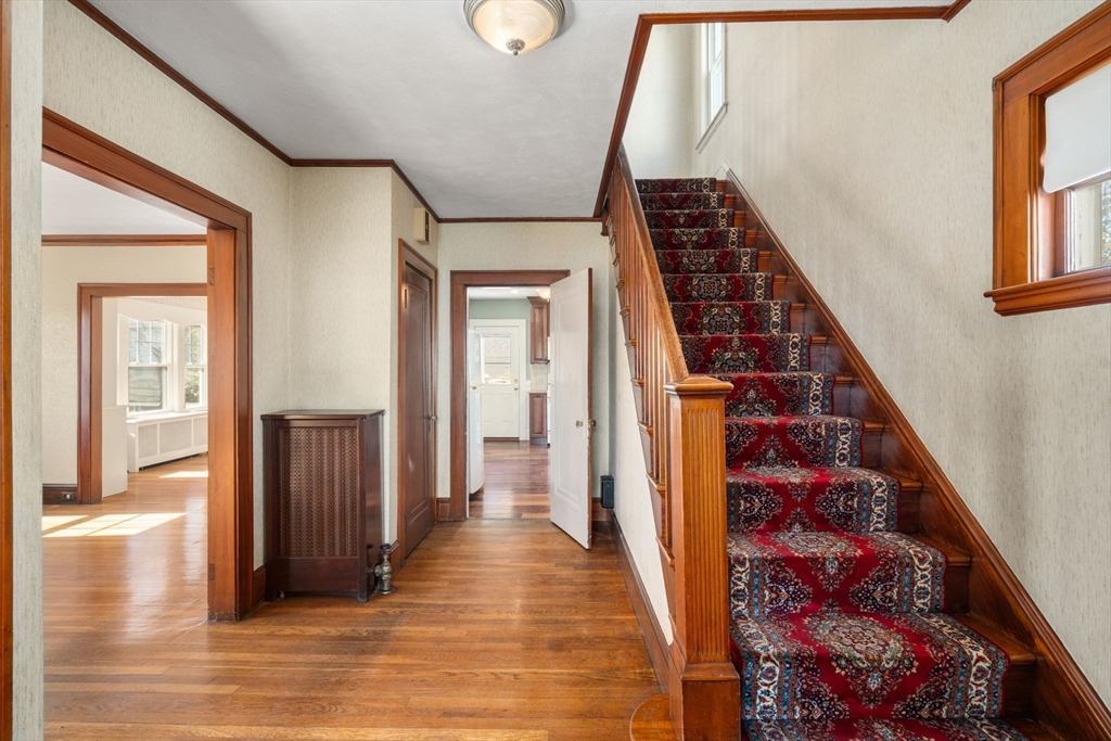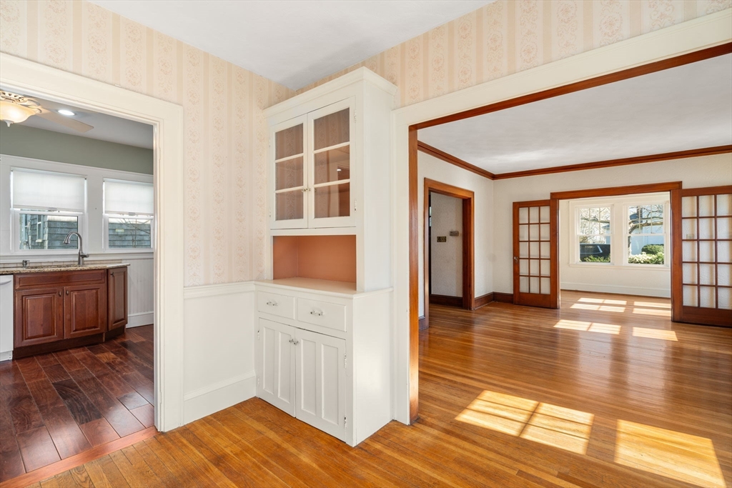 Charming 3-bed, 1-bath home ideally located on a quiet side street in the heart of Belmont Center. Lovingly maintained by the same family for apprx 70 years, this home features a spacious living room with a wood-burning fireplace and a formal dining room with beautiful period details and built-in china cabinets. A bright sunroom wrapped in windows offers a perfect spot to relax or work from home. An updated kitchen with access to the patio completes this level. A generous landing welcomes you to the second floor. The primary bedroom includes a walk-in closet, along with two additional well-sized bedrooms. Set on a corner lot, the home is filled with natural light. Newer roof and replacement windows throughout. Additional highlights include a one-car garage, expanded off-street parking, and a private patio. High ceilings, a walk-up attic, and an unfinished lower level, offers potential for expansion. Close to commuter rail, bus to Harvard Square, and shops and restaurants of Belmont.