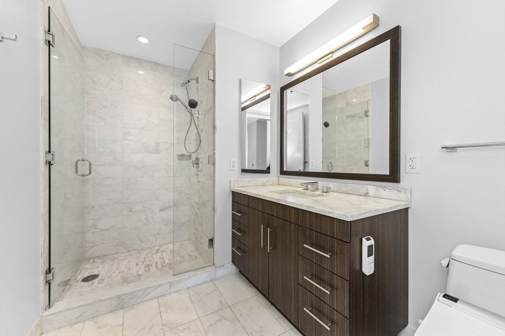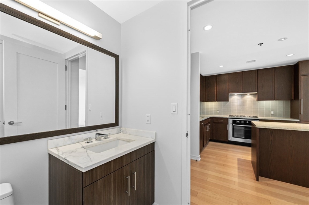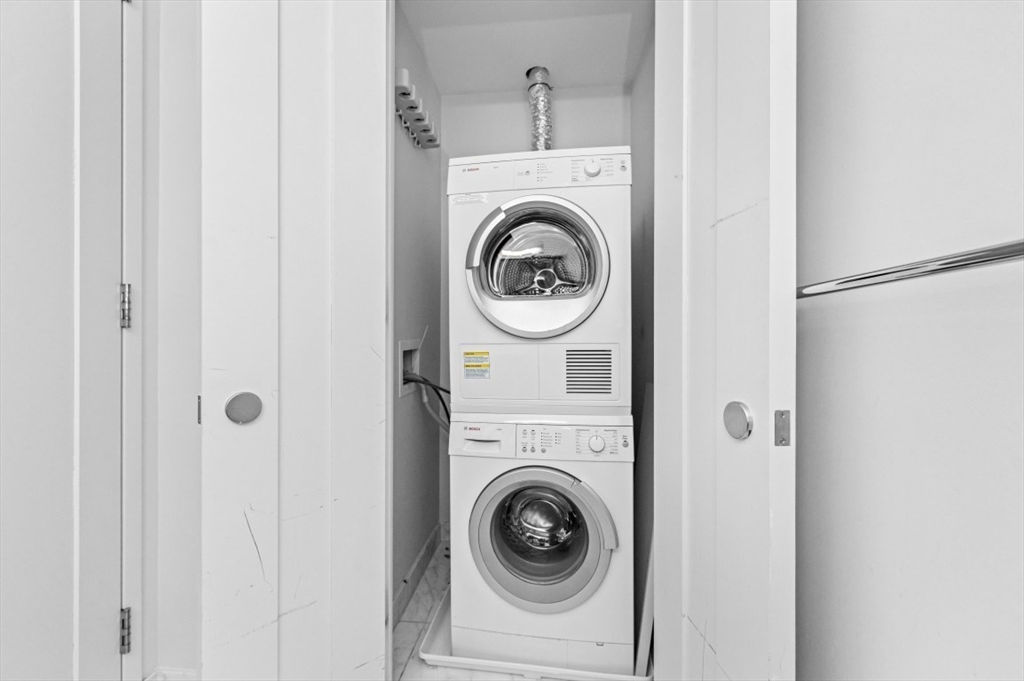Available immediately - A spacious 1 Bedroom, 1.5 Bathroom with modern open layout and views overlooking Washington Street. This 8th floor location provides a 10 foot ceiling height making it feel even more spacious. Features include a custom kitchen with gas cooking, hardwood floors in the living room, primary bath with white marble, and an in-unit laundry. Millennium Place is one of Boston's premier downtown, full service-buildings including 24 hour concierge and doorman services, access to a private club, a bar/lounge area and a beautifully cultivated garden. Other amenities include a fitness center with Pilates/Yoga/Massage studios.