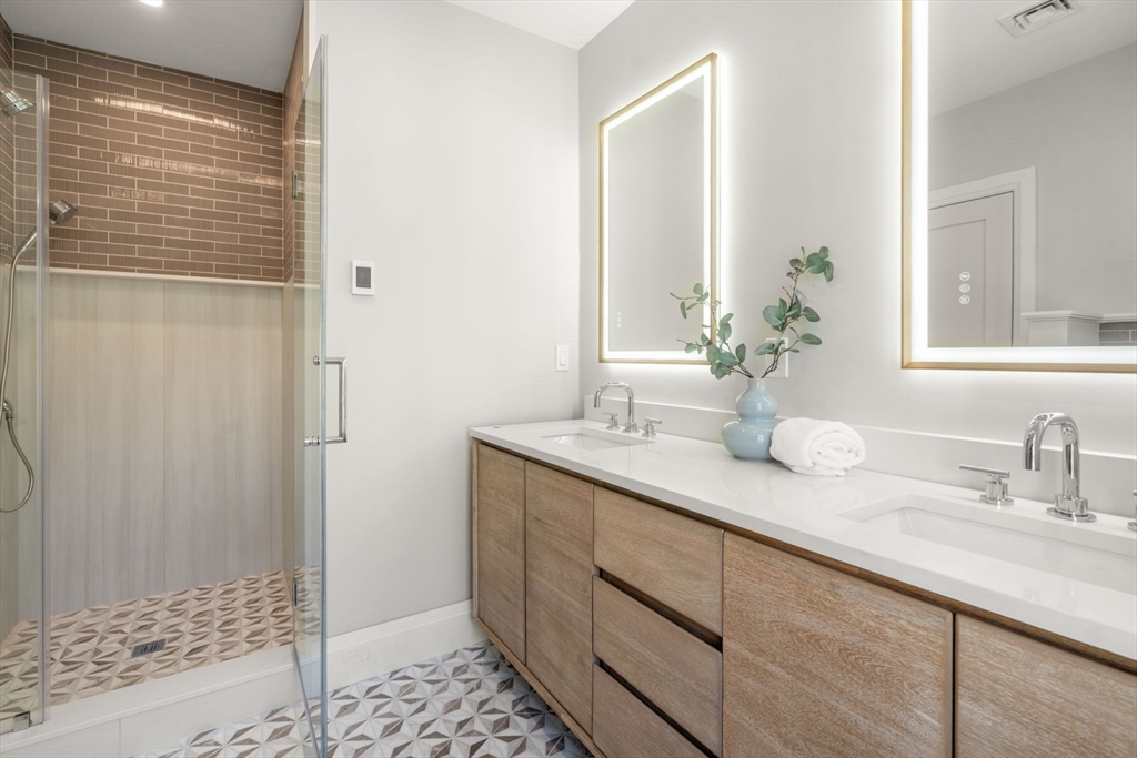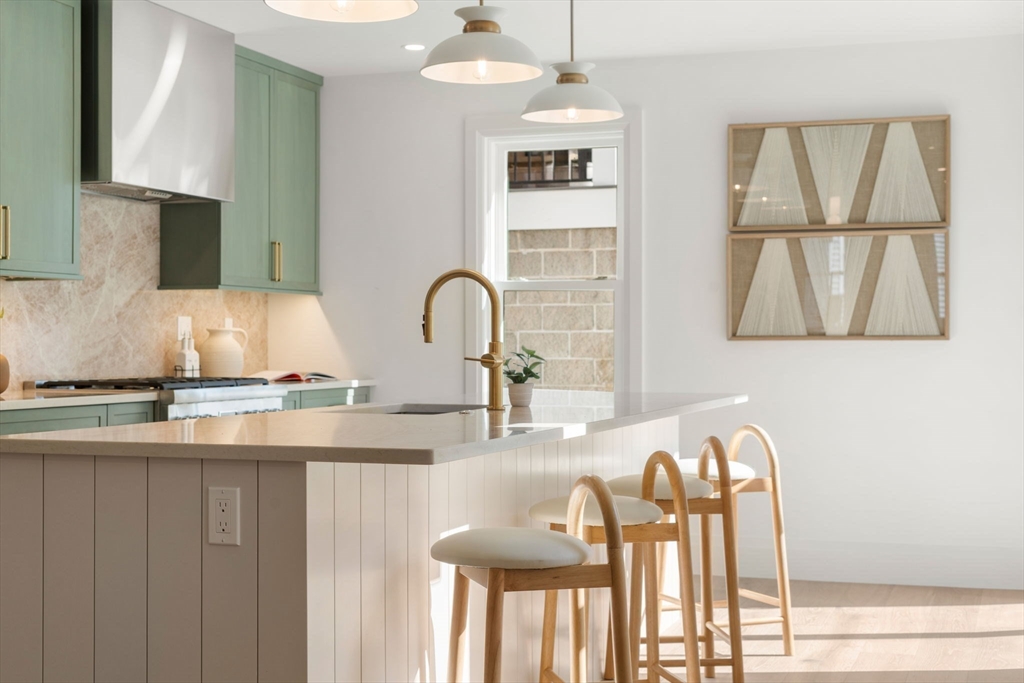 Rare opportunity to own a fully gut-renovated single-family home with 4 bedrooms, 3.5 baths, 3-car driveway parking and a private backyard / patio in a prime West Side South Boston location! Thoughtfully designed by Best of Boston designer Louis Ashman, this home blends high-end finishes with exceptional functionality. The main level offers an open layout with living, dining, and a stunning chef’s kitchen featuring an oversized island, Thermador appliances, wine fridge, custom cabinetry, and designer lighting. A mudroom and stylish half bath lead directly to the backyard and patio. The 2nd floor includes a luxurious primary suite with an enormous walk-in closet and spa-like en-suite bath, along with 2 additional bedrooms and a full laundry room. The top level provides a flexible 4th bedroom and full bath, ideal for guests or a home office, complete with treetop views. The lower level offers excellent bonus space for a media room, gym, or playroom. An exceptional single family offering!