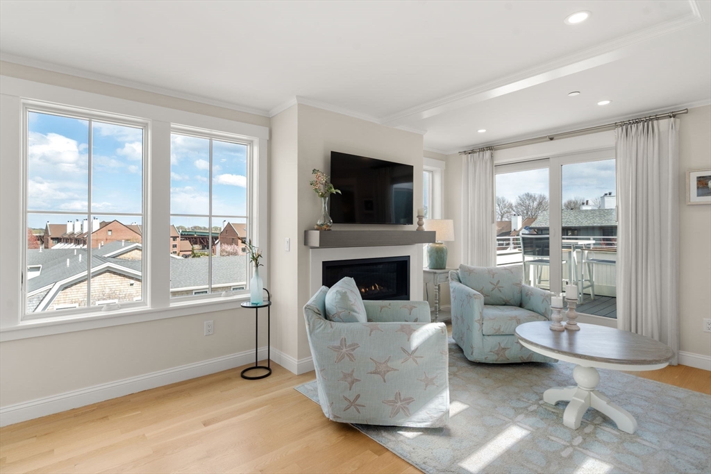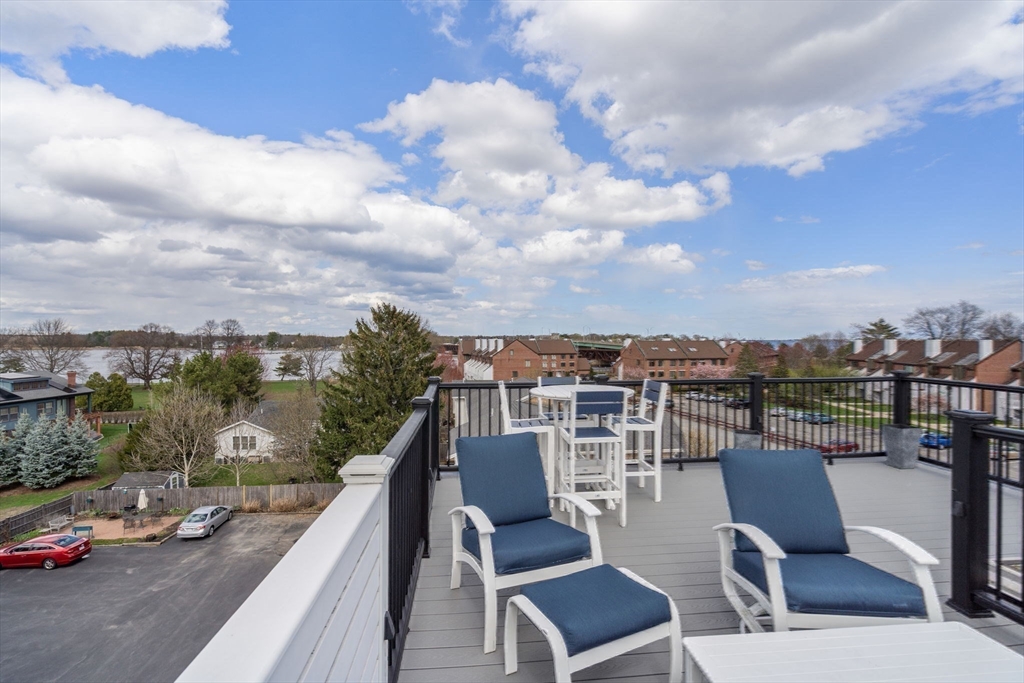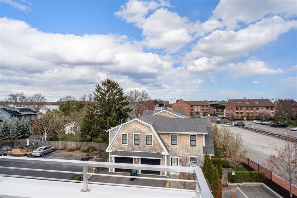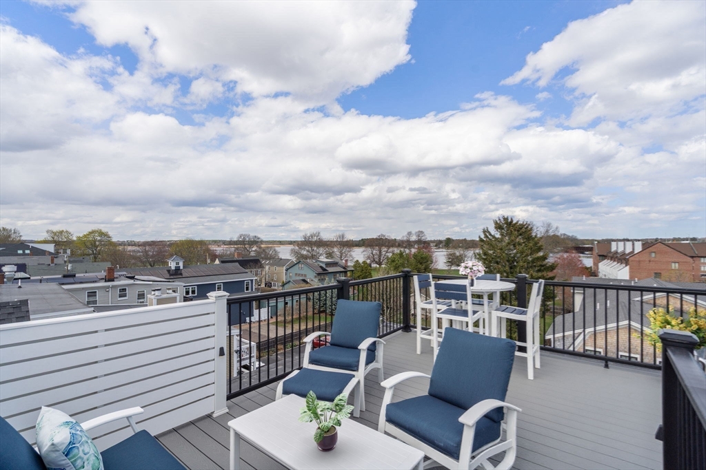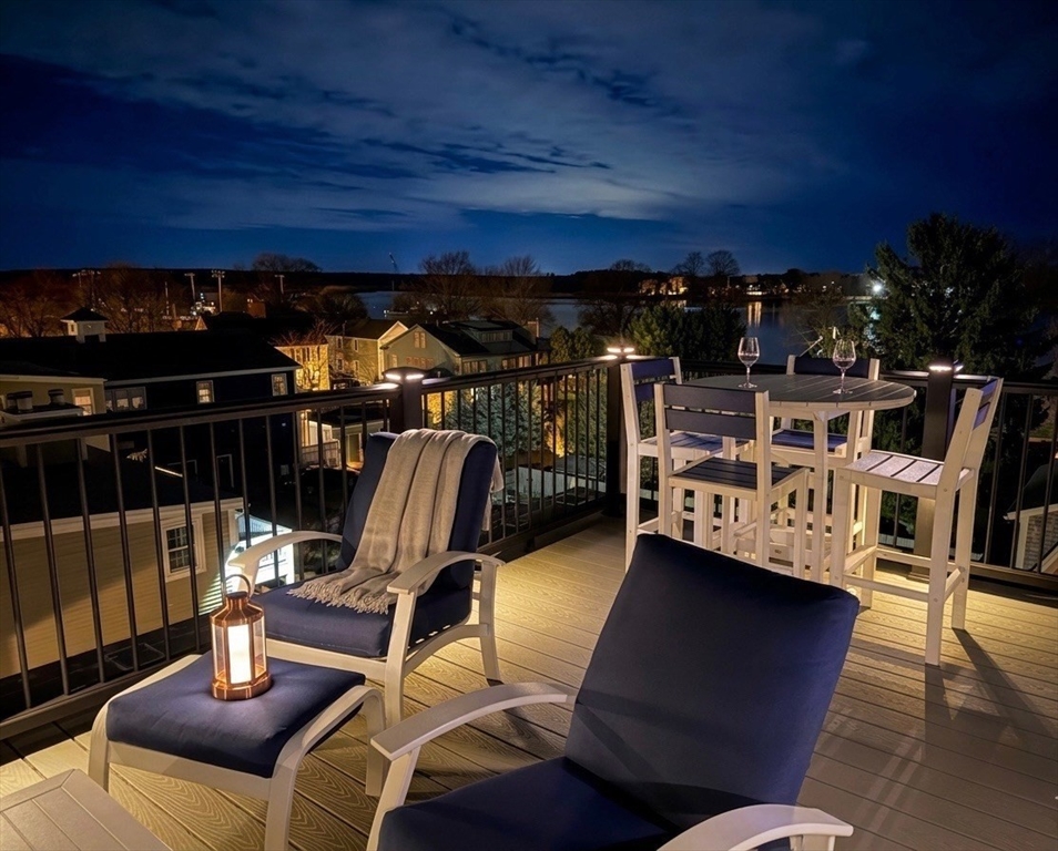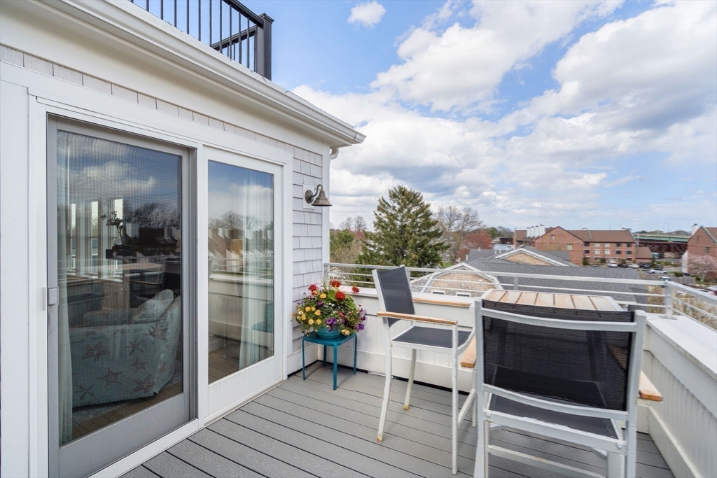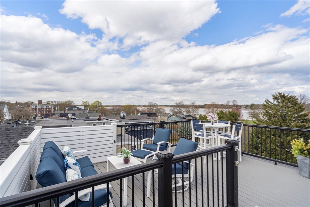 Welcome to this beautifully renovated 3-bedroom, 2 full-bath condo in the heart of downtown Newburyport. This home offers spectacular water views and stunning sunrise vistas. Oversized windows flood the living and dining areas with natural light, complemented by sliding glass doors opening to a private 10’ x 10’ deck Fully renovated within the last 4 years, the interior features a beautiful kitchen, hardwood floors throughout, and a spacious primary suite with private bath, walk-in closet, and direct access to the deck. One of the home’s most exceptional features is the expansive 20’ x 20’ private rooftop deck with sweeping river views—perfect for morning coffee or sunset entertaining. Additional highlights include three assigned parking spaces and a private storage closet. Just steps from downtown, enjoy easy access to boutiques, restaurants, marinas, and scenic waterfront trails. Coastal living at its finest—sophisticated, effortless, and truly turnkey.