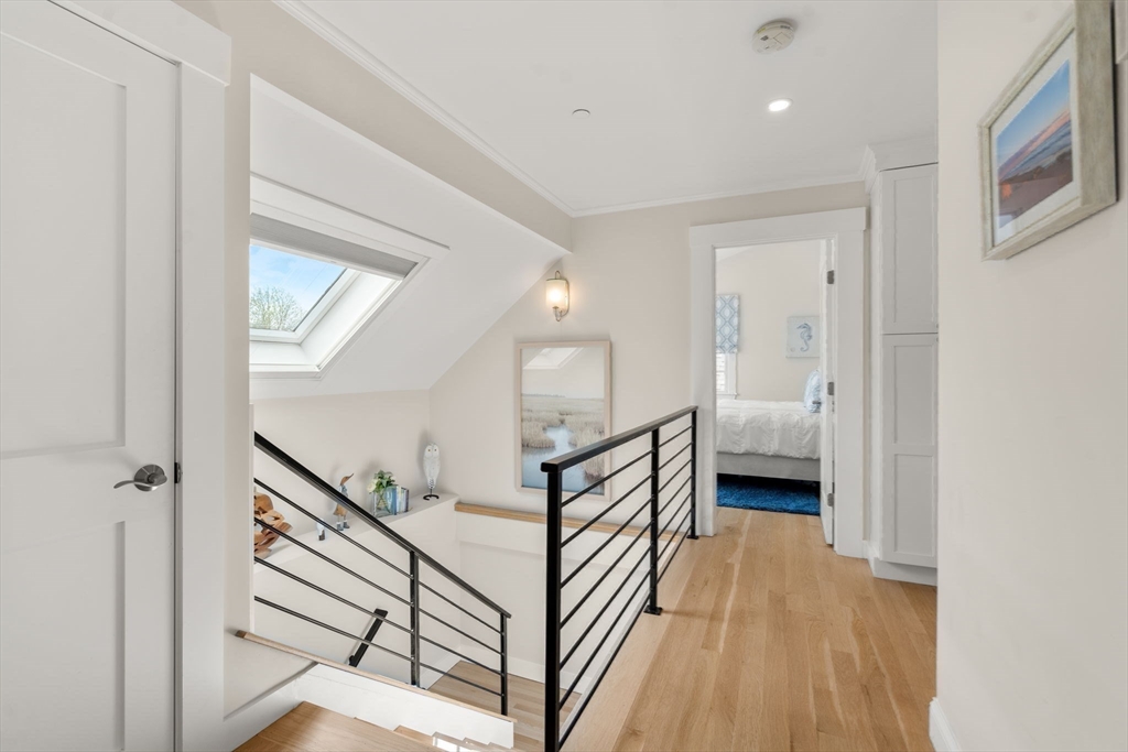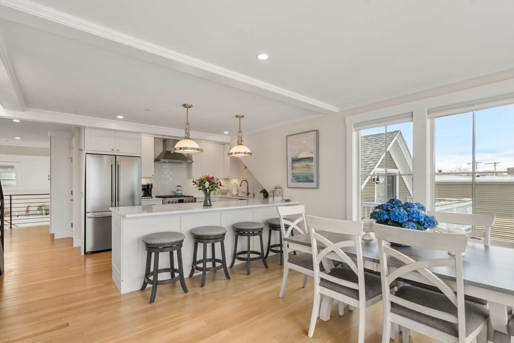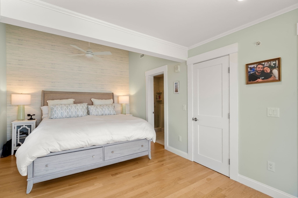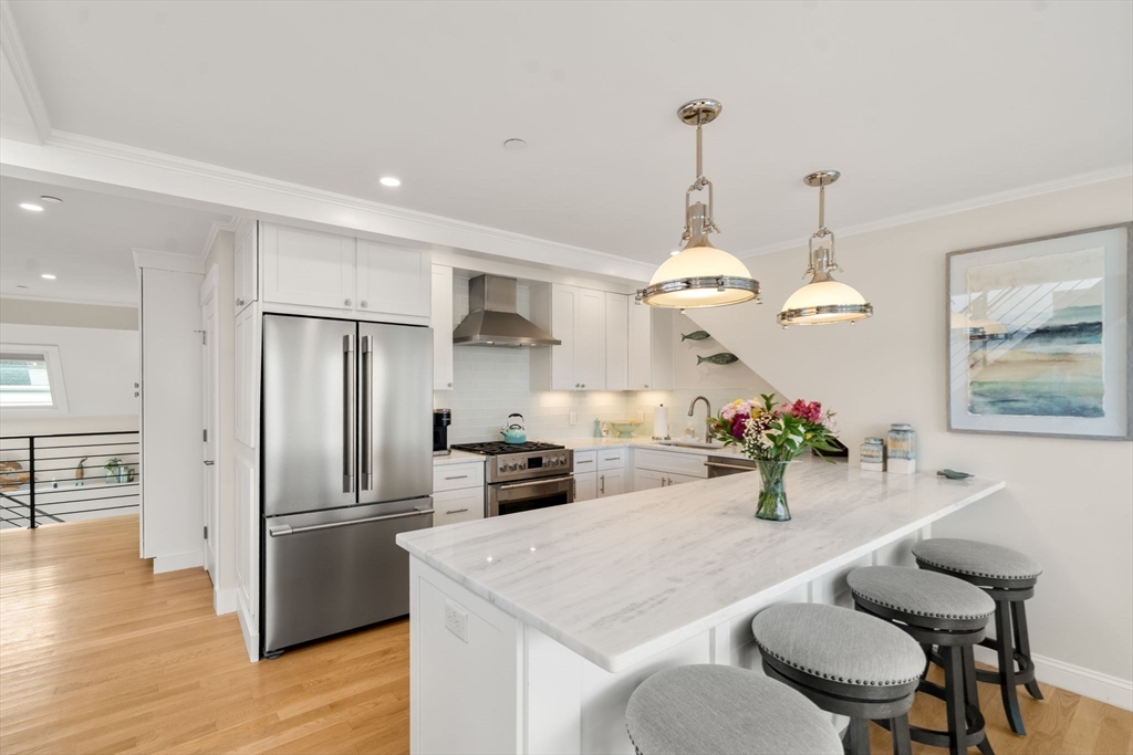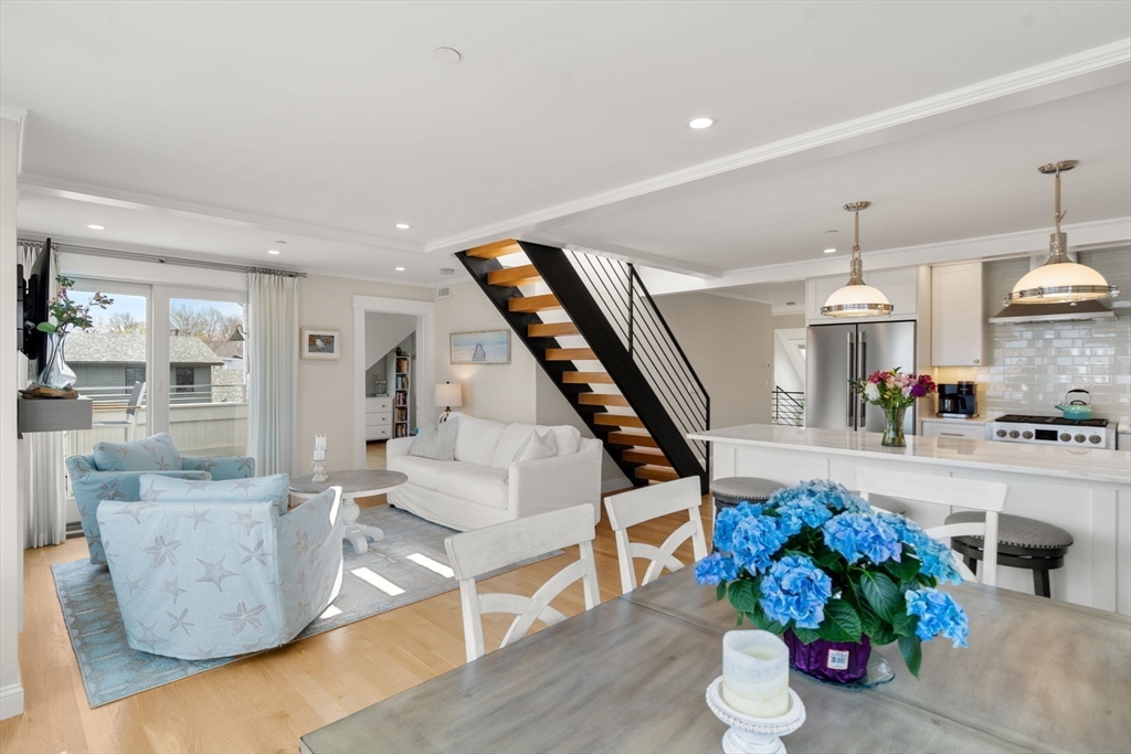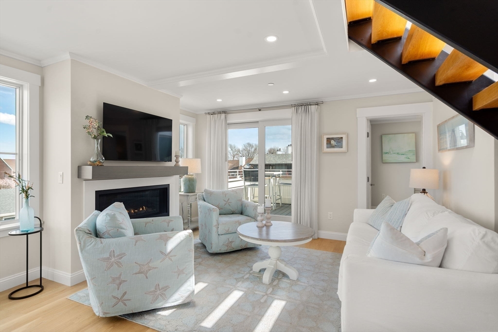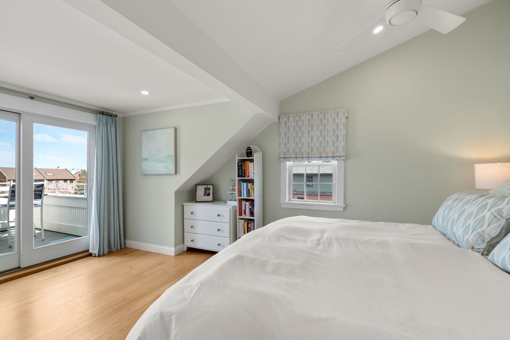 Welcome to this beautifully renovated 3-bedroom, 2 full-bath condo in the heart of downtown Newburyport. This home offers spectacular water views and stunning sunrise vistas. Oversized windows flood the living and dining areas with natural light, complemented by sliding glass doors opening to a private 10’ x 10’ deck Fully renovated within the last 4 years, the interior features a beautiful kitchen, hardwood floors throughout, and a spacious primary suite with private bath, walk-in closet, and direct access to the deck. One of the home’s most exceptional features is the expansive 20’ x 20’ private rooftop deck with sweeping river views—perfect for morning coffee or sunset entertaining. Additional highlights include three assigned parking spaces and a private storage closet. Just steps from downtown, enjoy easy access to boutiques, restaurants, marinas, and scenic waterfront trails. Coastal living at its finest—sophisticated, effortless, and truly turnkey.