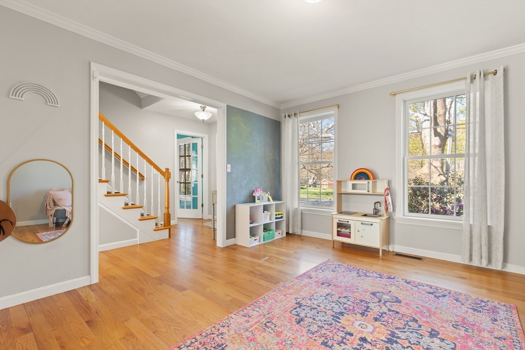WELCOME to this beautiful Colonial offering over 2,495 sq ft of thoughtfully designed living space, complete w/ a two-car attached garage & a versatile 3rd level flr plan. Stunning kitchen features granite countertops, ss appliances, a center island w/ pendant lighting, a pantry, & a spacious coat closet. It opens to a bright family rm w/ a gas fireplace & recessed lighting—Perfect for everyday living & entertaining. A formal dining rm & dedicated home office.Upstairs, the spacious primary suite includes a walk-in closet & a full bath w/ a tiled shower. Two additional generously sized bedrms w/ ceiling fans, a 2nd flr laundry area, & a full bath w/ granite countertops, tile flring, & a tub/shower round out this level. The walk-up 3rd flr provides flexible space ideal for a 4th bedrm, home gym, or bonus rm. Additional features include Hardwood flrs, 2 zone Gas heat & C/A (1st flr newer system), irrigation & a storage shed. Step outside onto your patio w/ a built-in natural gas firepit.
