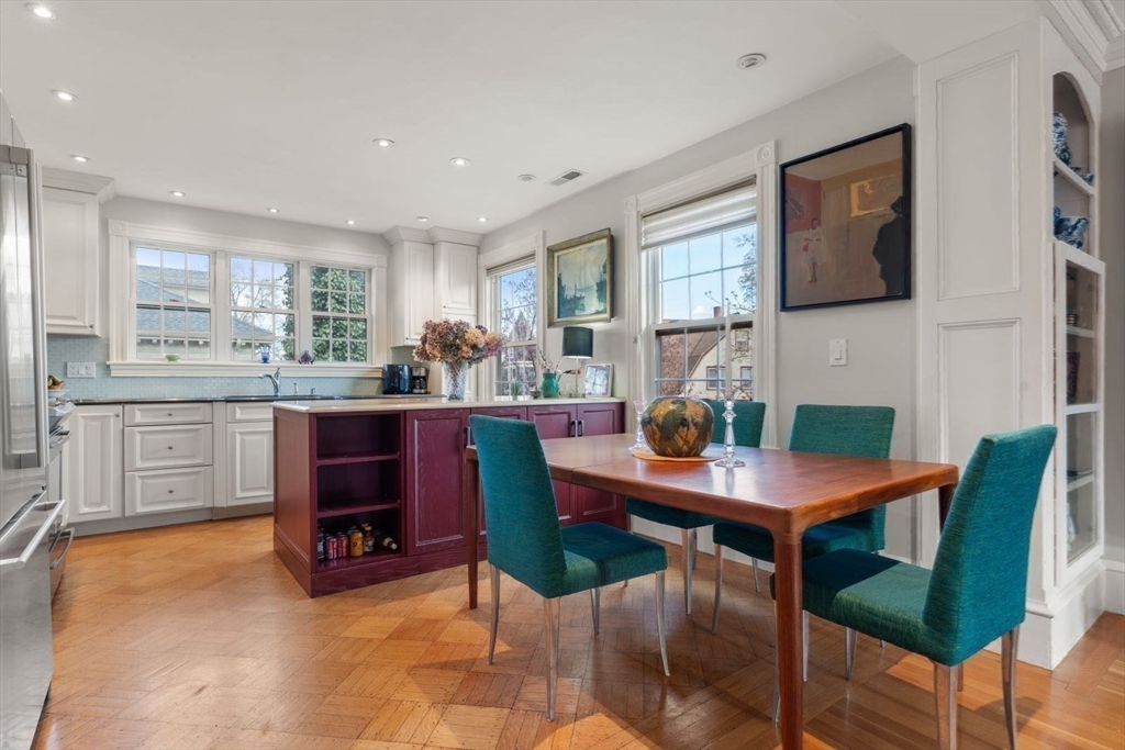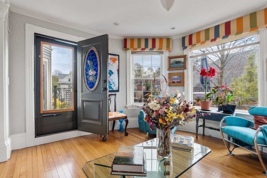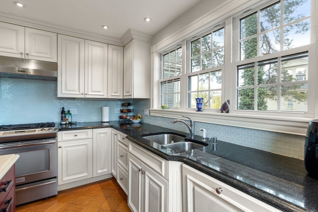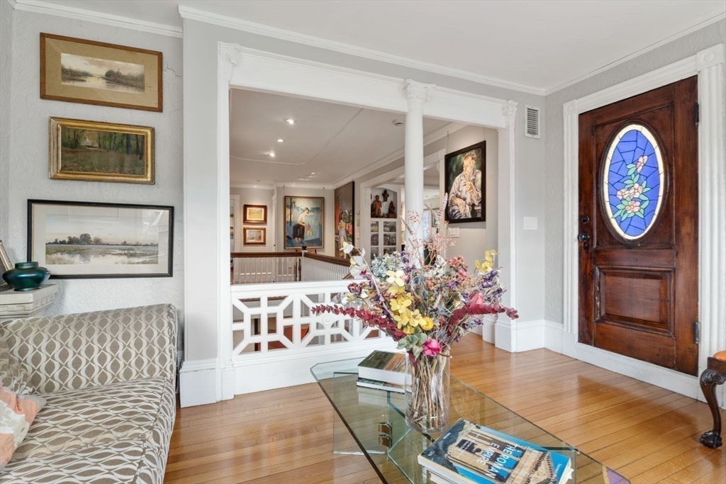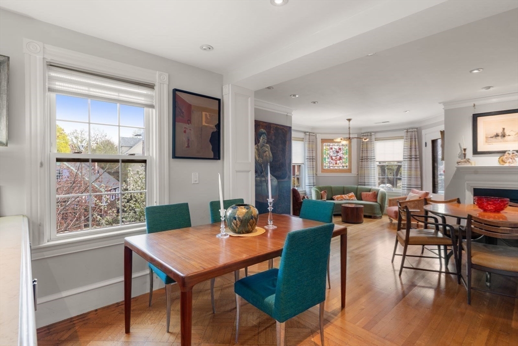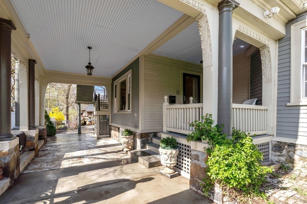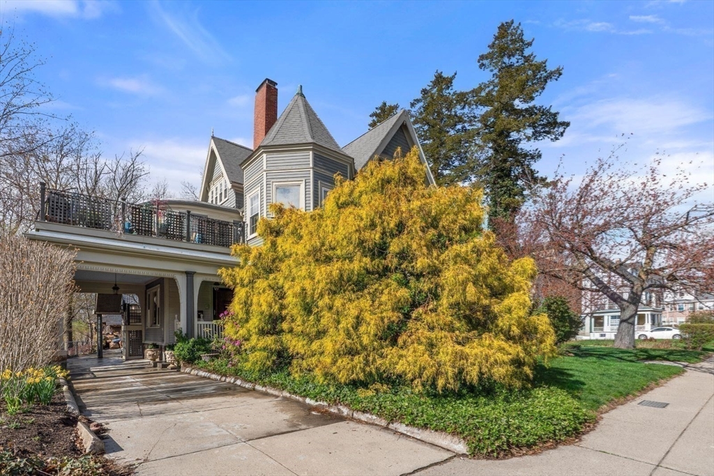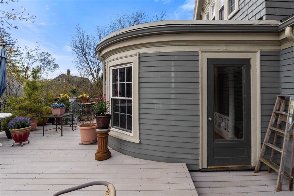 Rare opportunity to own a spacious, sunny 2100 sq ft 3bed/2bath in an iconic Melville Ave 1895 Victorian home. Originally the 2nd & 3rd floors of the single family, this home offers original architectural details - stain glass accent windows, mantel, woodwork, fretwork, China cabinets, curved glass windows, ect. Enter through the porte cochere into a spacious foyer with a sunny seating area. The upstairs open floor plan offers the living-dining room (with China cabinets and gas fireplace), kitchen, and a bedroom/den/family room, whatever! The renovated kitchen features quartz and granite counters, glass tile backsplash, stainless steel appliances, gas range. Laundry room. Direct/private access to a spacious, sunny private deck, perfect for the gardener or entertaining. Hardwood Flr’s throughout. The upper floor features a large bedroom, plus a 2nd bedroom and a full bath. Excellent closet space/storage space, plus a storage space in the basement with wine coolers included