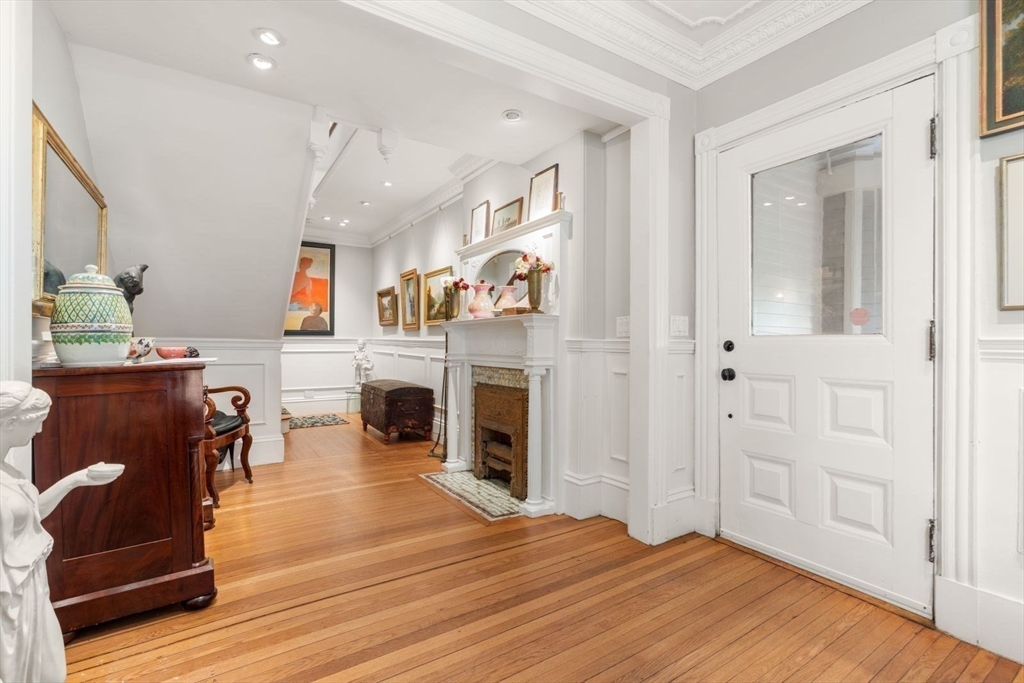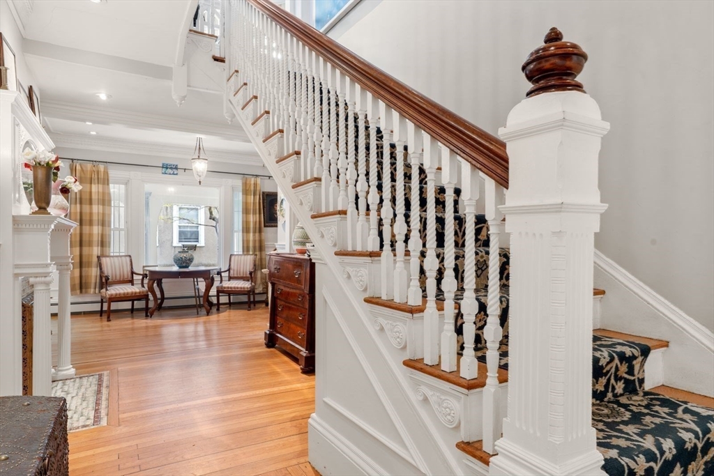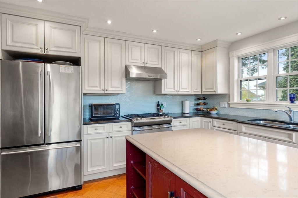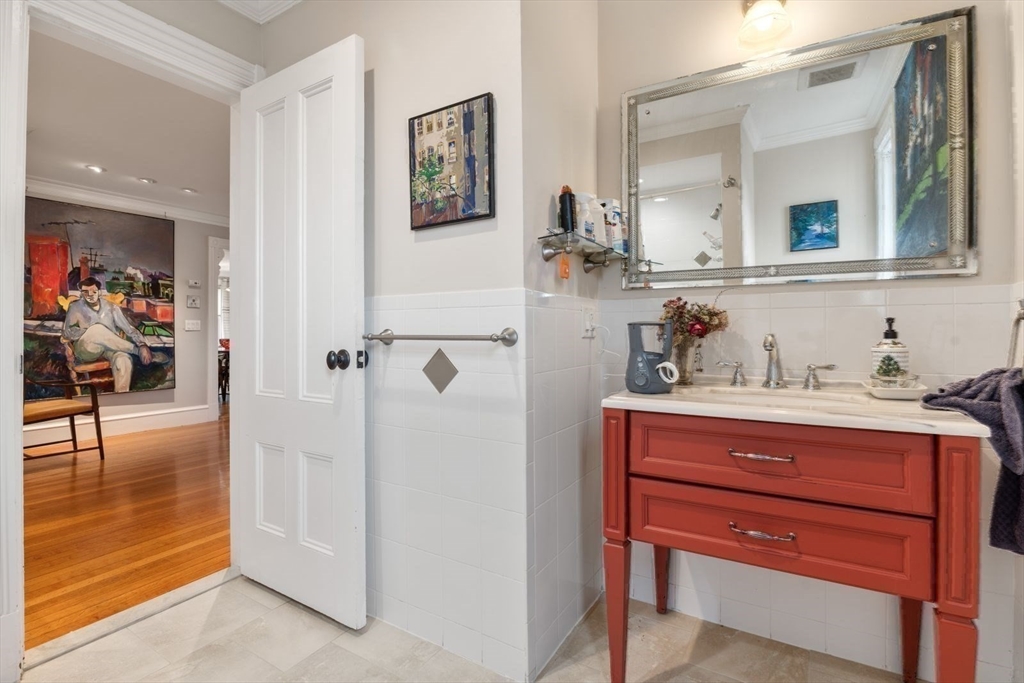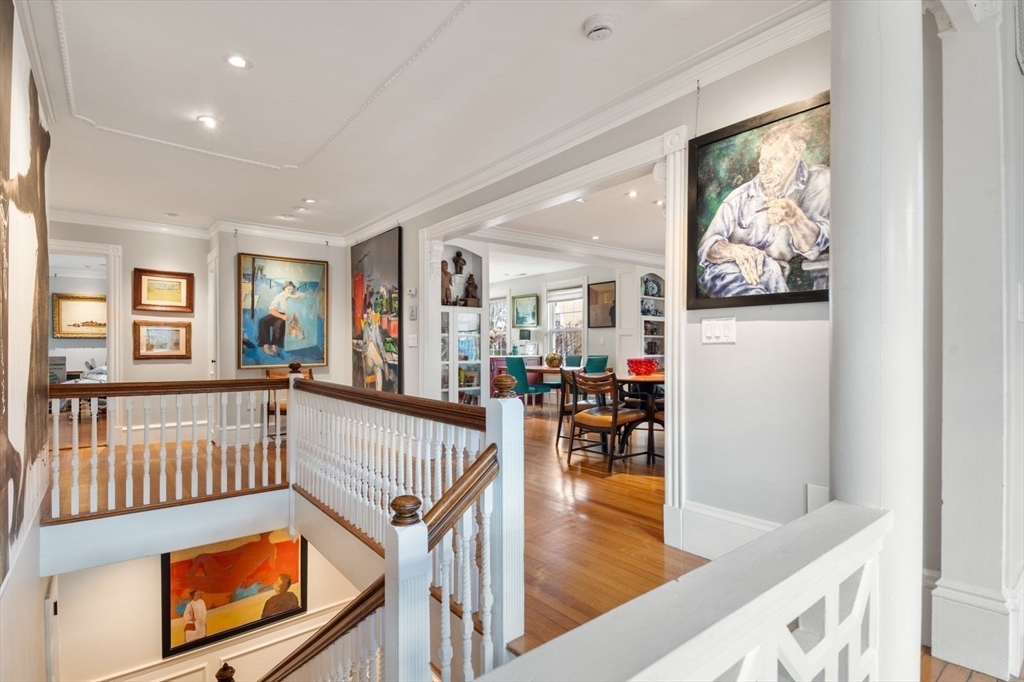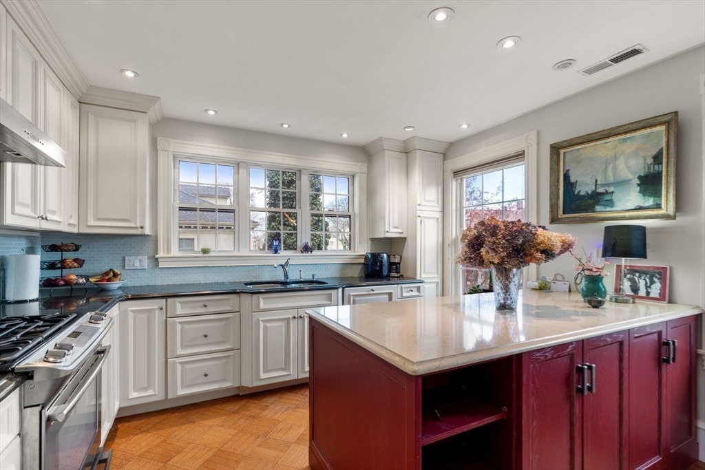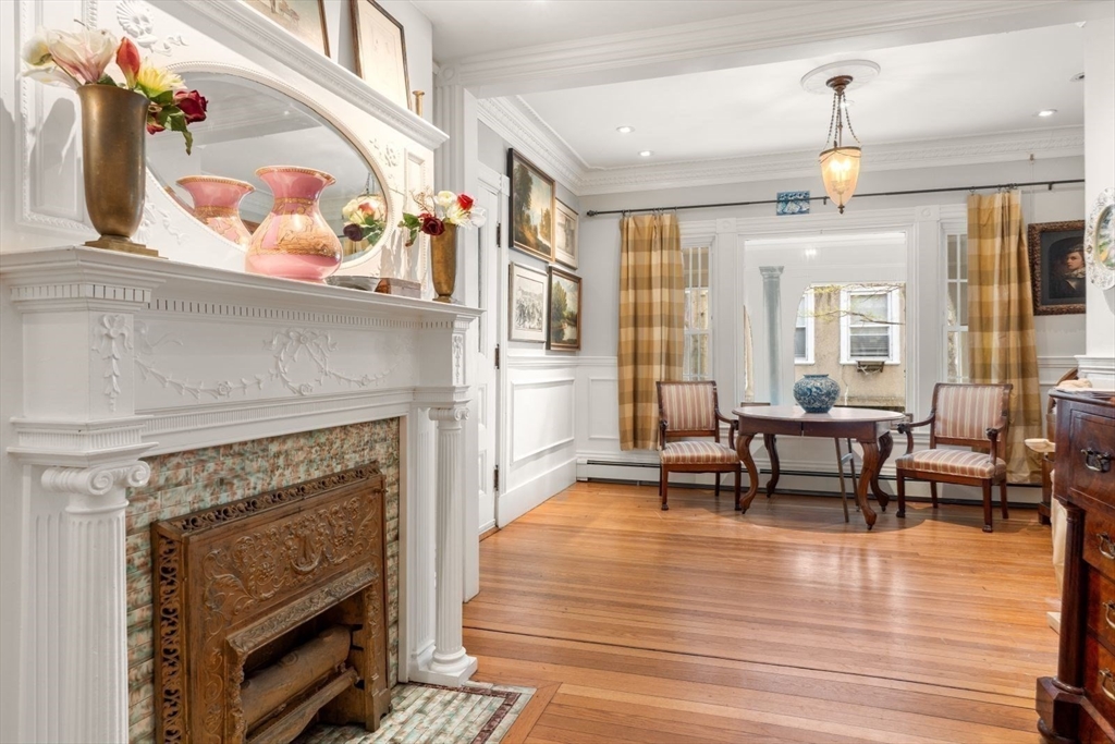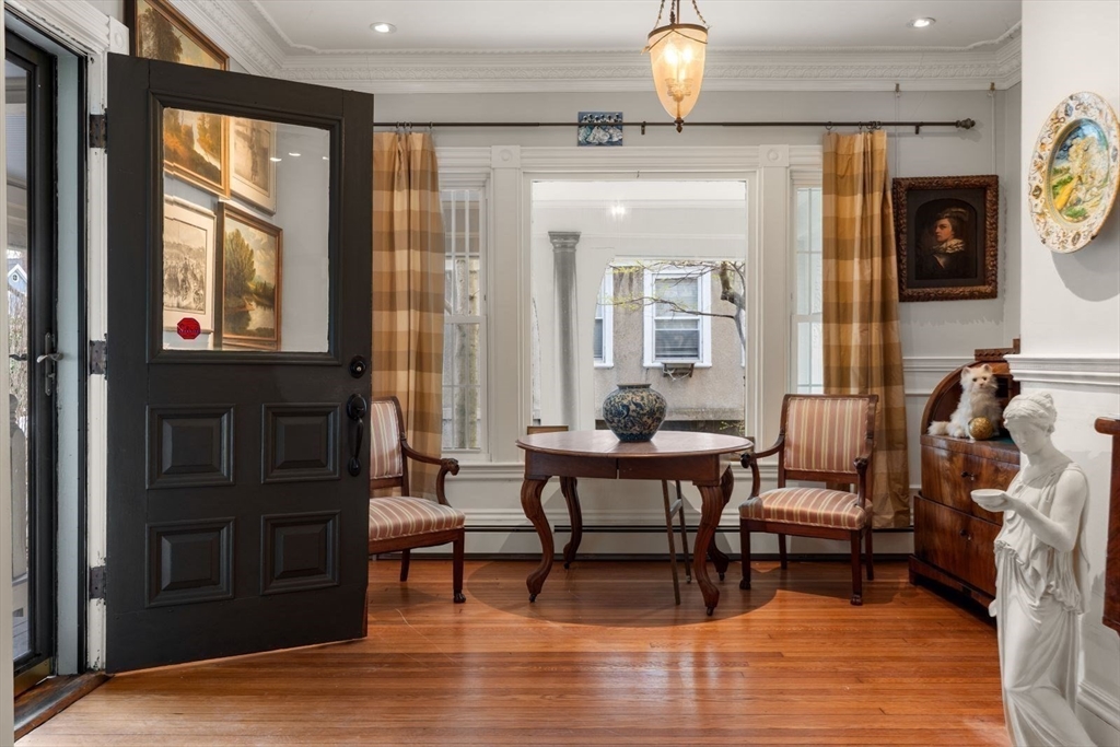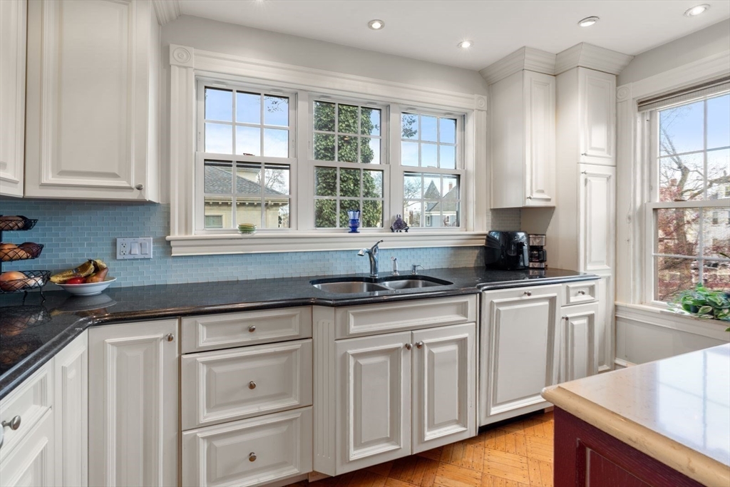 Rare opportunity to own a spacious, sunny 2100 sq ft 3bed/2bath in an iconic Melville Ave 1895 Victorian home. Originally the 2nd & 3rd floors of the single family, this home offers original architectural details - stain glass accent windows, mantel, woodwork, fretwork, China cabinets, curved glass windows, ect. Enter through the porte cochere into a spacious foyer with a sunny seating area. The upstairs open floor plan offers the living-dining room (with China cabinets and gas fireplace), kitchen, and a bedroom/den/family room, whatever! The renovated kitchen features quartz and granite counters, glass tile backsplash, stainless steel appliances, gas range. Laundry room. Direct/private access to a spacious, sunny private deck, perfect for the gardener or entertaining. Hardwood Flr’s throughout. The upper floor features a large bedroom, plus a 2nd bedroom and a full bath. Excellent closet space/storage space, plus a storage space in the basement with wine coolers included