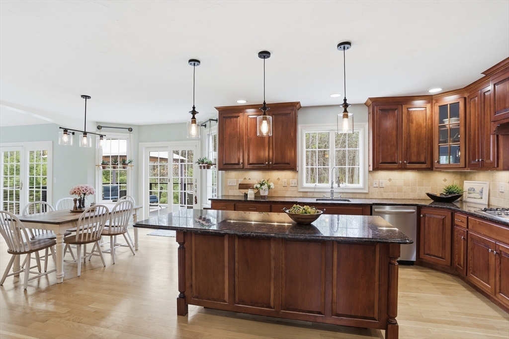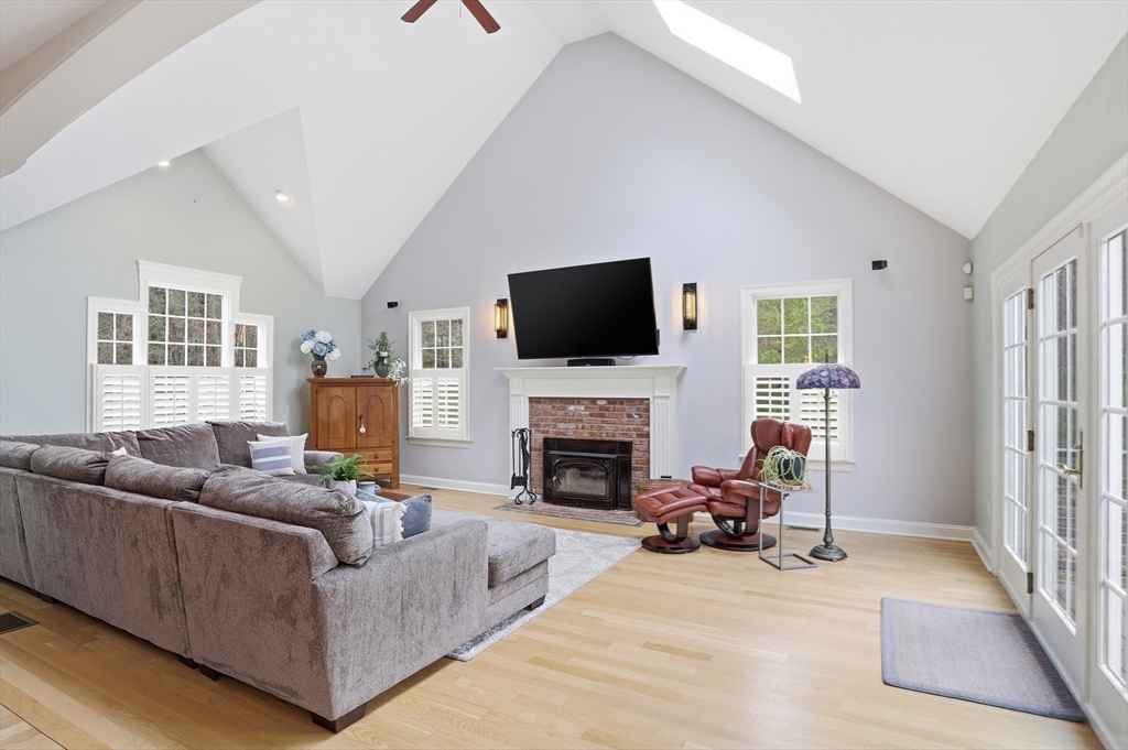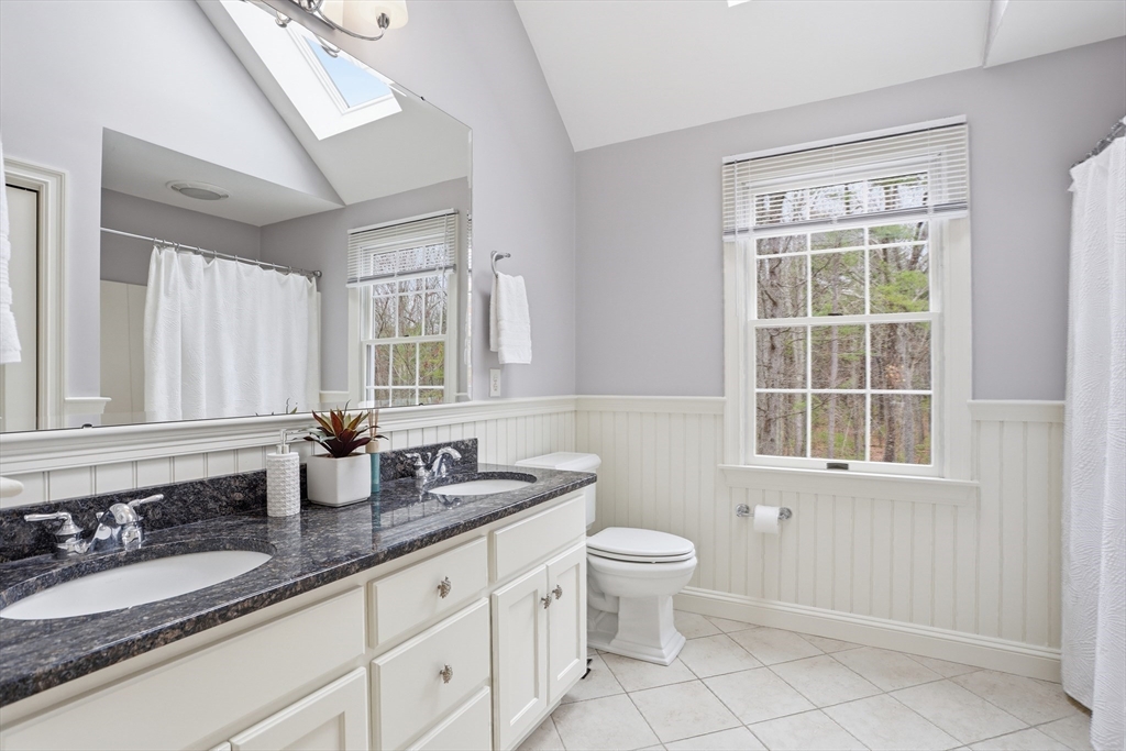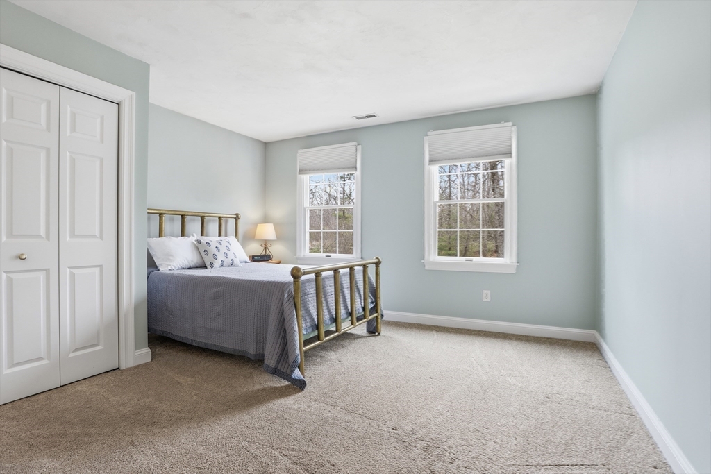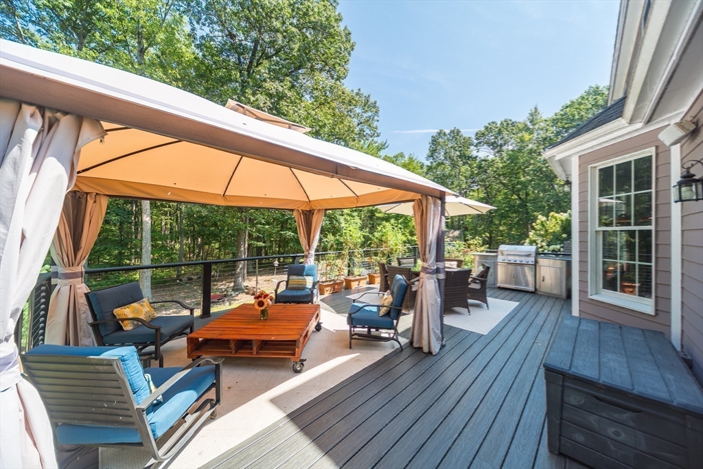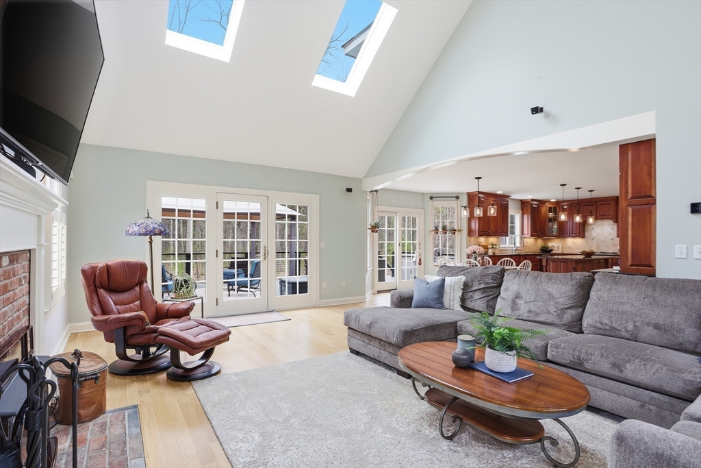 Captivating 5-bedroom Colonial set on a premier lot in coveted n'hood checks every box on the wish list. Savor the inviting chef’s kitchen with center island, pantry, double ovens, 5-burner gas range & generous dining area flowing into a sun-drenched vaulted ceiling family room with cozy fireplace. Host memorable gatherings in the formal living & dining rooms or work comfortably from the 1st floor office. The expansive finished lower level offers space to play, relax & recharge with a game room, media room, gym, guest suite & bath. Unwind amidst nature's beauty or enjoy outdoor entertaining in your private backyard sanctuary featuring an expansive composite deck, sprawling patio & relaxing hot tub overlooking peaceful grounds & conservation land. Thoughtful updates include energy-saving OWNED solar panels, high-efficiency Buderus heat & hot water, Hardie siding with almost entirely PVC trim, generator switch, plus a walk-up 3rd floor attic ready for future expansion. Truly exceptional!