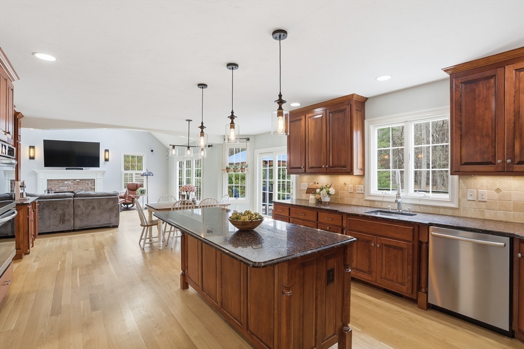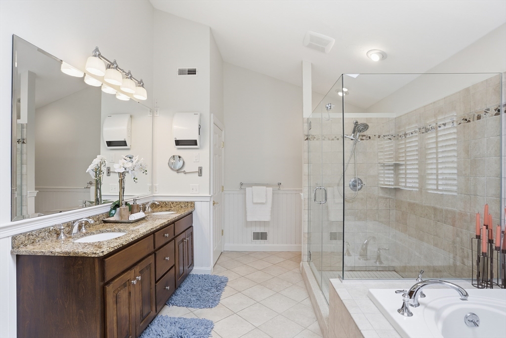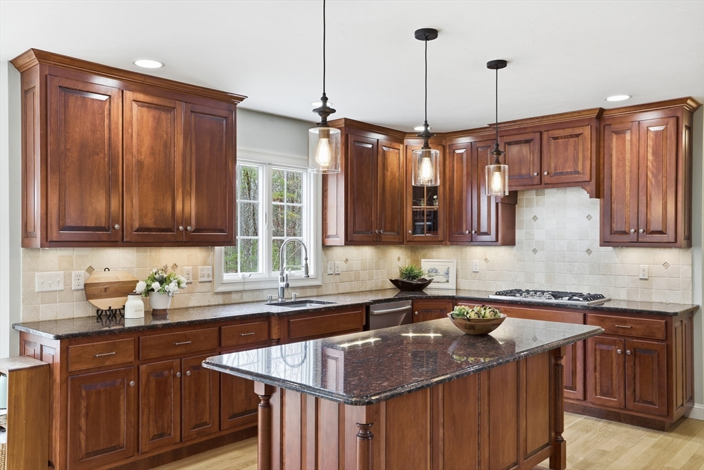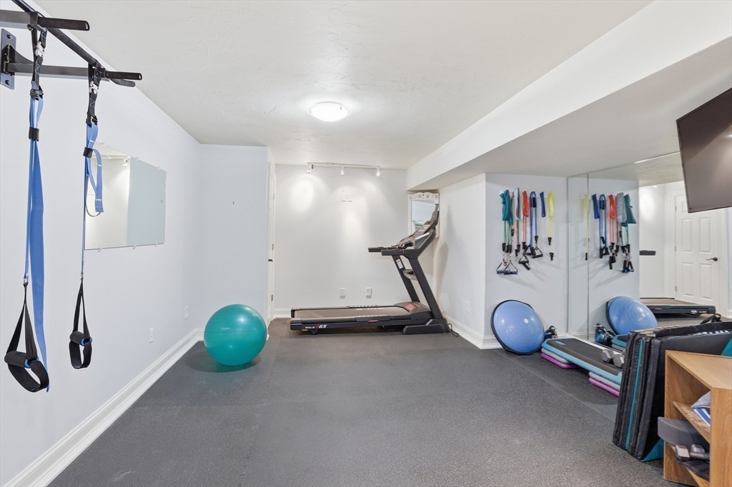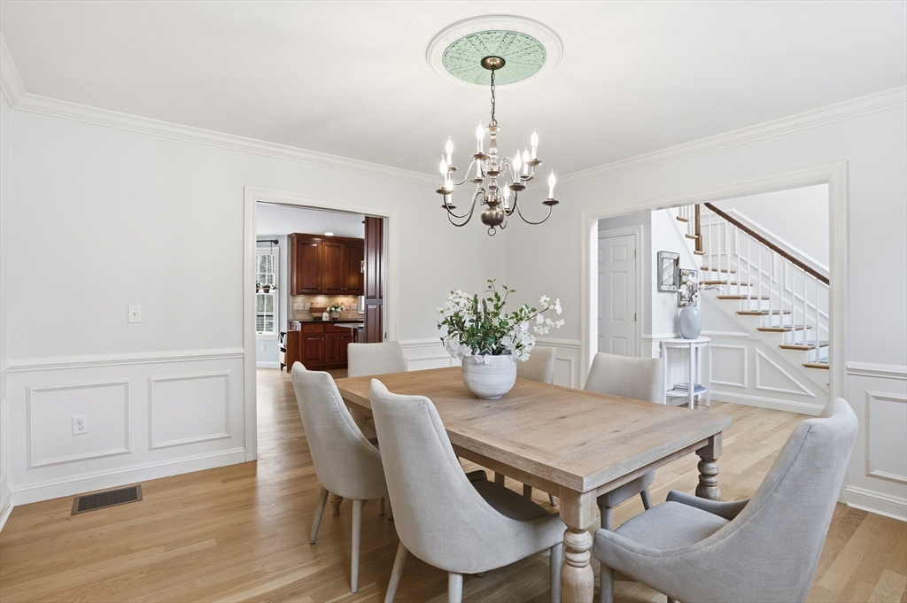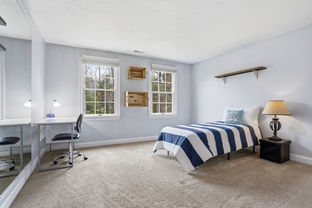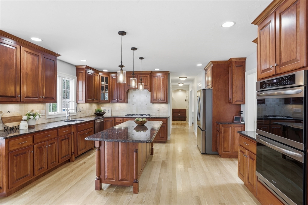 Captivating 5-bedroom Colonial set on a premier lot in coveted n'hood checks every box on the wish list. Savor the inviting chef’s kitchen with center island, pantry, double ovens, 5-burner gas range & generous dining area flowing into a sun-drenched vaulted ceiling family room with cozy fireplace. Host memorable gatherings in the formal living & dining rooms or work comfortably from the 1st floor office. The expansive finished lower level offers space to play, relax & recharge with a game room, media room, gym, guest suite & bath. Unwind amidst nature's beauty or enjoy outdoor entertaining in your private backyard sanctuary featuring an expansive composite deck, sprawling patio & relaxing hot tub overlooking peaceful grounds & conservation land. Thoughtful updates include energy-saving OWNED solar panels, high-efficiency Buderus heat & hot water, Hardie siding with almost entirely PVC trim, generator switch, plus a walk-up 3rd floor attic ready for future expansion. Truly exceptional!