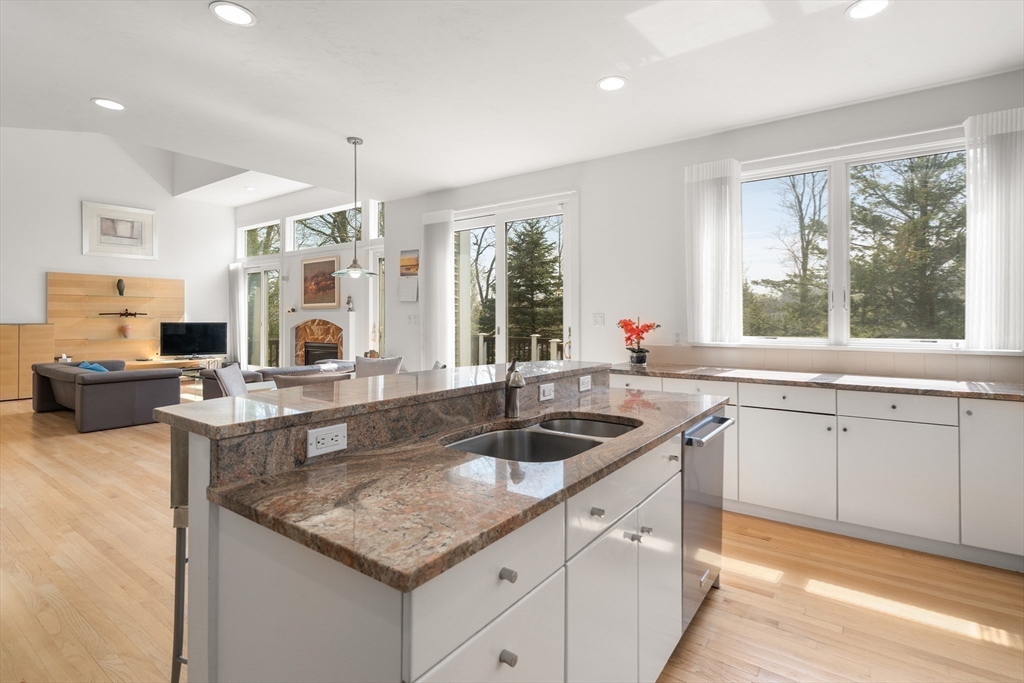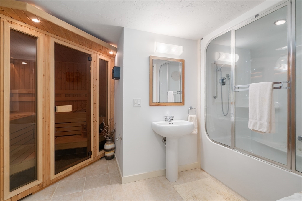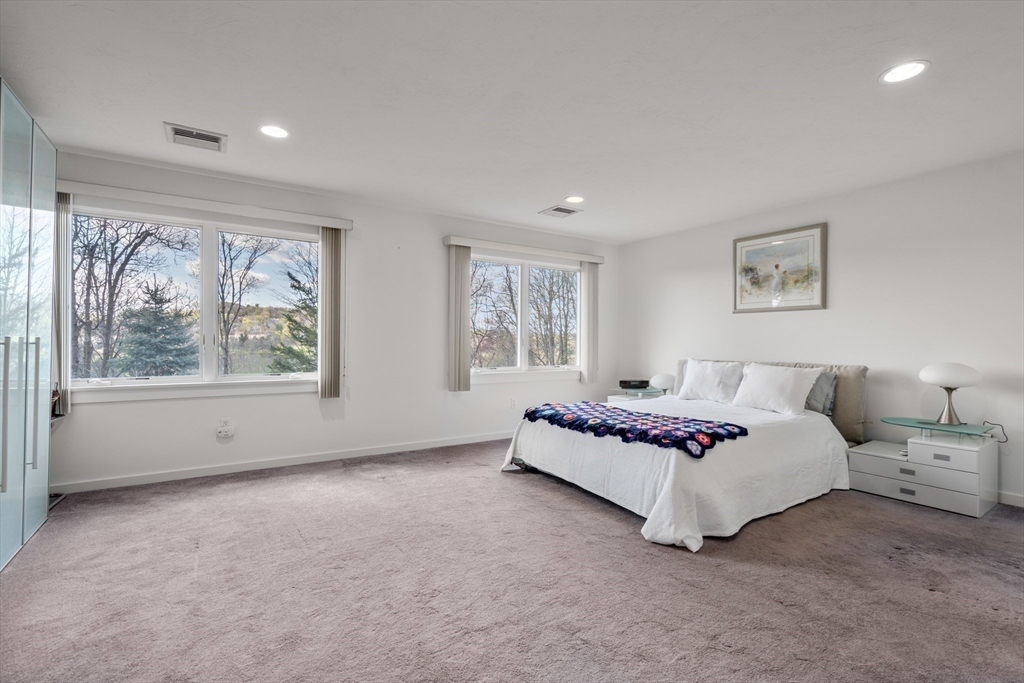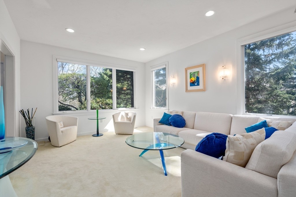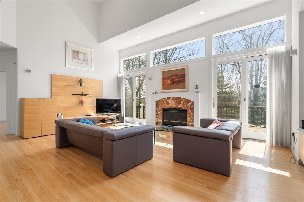 Enjoy expansive views in this stunning Farlow Hill contemporary residence located on the Newton/Brighton line. Streaming sunlight highlights stunning architectural features including soaring ceilings, oversized windows and a dramatic staircase in this open concept home. The marble Foyer leads to an open Great Room featuring a gas fireplace w/marble surround and surround sound system. The space flows into a sunfilled Kitchen w/white cabinetry, stainless appliances, granite counters, dining area and sliders leading to the deck. Double doors from the Great Room lead into a spacious Bonus Room currently used as an office. The second level features a large Master Suite with two WI closets, oversized windows and luxurious Master Bath. Three additional bedrooms, one w/ensuite bathroom. The walkout Lower Level offers a spacious Playroom Room w/wet bar, an add'l room, al bathroom w/steam room and sauna and stereo speakers in the ceiling. New HVAC, 2012 roof.