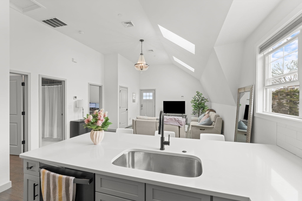 Welcome to The LUXE at Summer St, an exceptional 2020 construction where design, convenience, and quality meet. This 2 bedroom, 1 bath unit offers a refined living experience with premium finishes throughout. Soaring cathedral ceilings and statement lighting set the tone for upscale living. The stylish kitchen features quartz countertops, high end cabinetry, graphite appliances, and a 5 burner gas range perfect for everyday living and entertaining. Hardwood flooring, soundproofed walls, and in unit laundry enhance comfort and convenience. Enjoy a beautifully sized private patio, ideal for relaxing or entertaining, along with a deeded off-street parking space. Energy efficient systems include central heating, on demand hot water, and central air, plus keyless entry. Located in desirable West Lynn with easy access to Boston, bus routes to Wonderland and Haymarket, and nearby bike and walking paths.