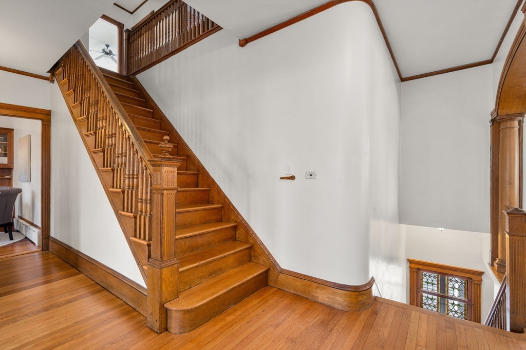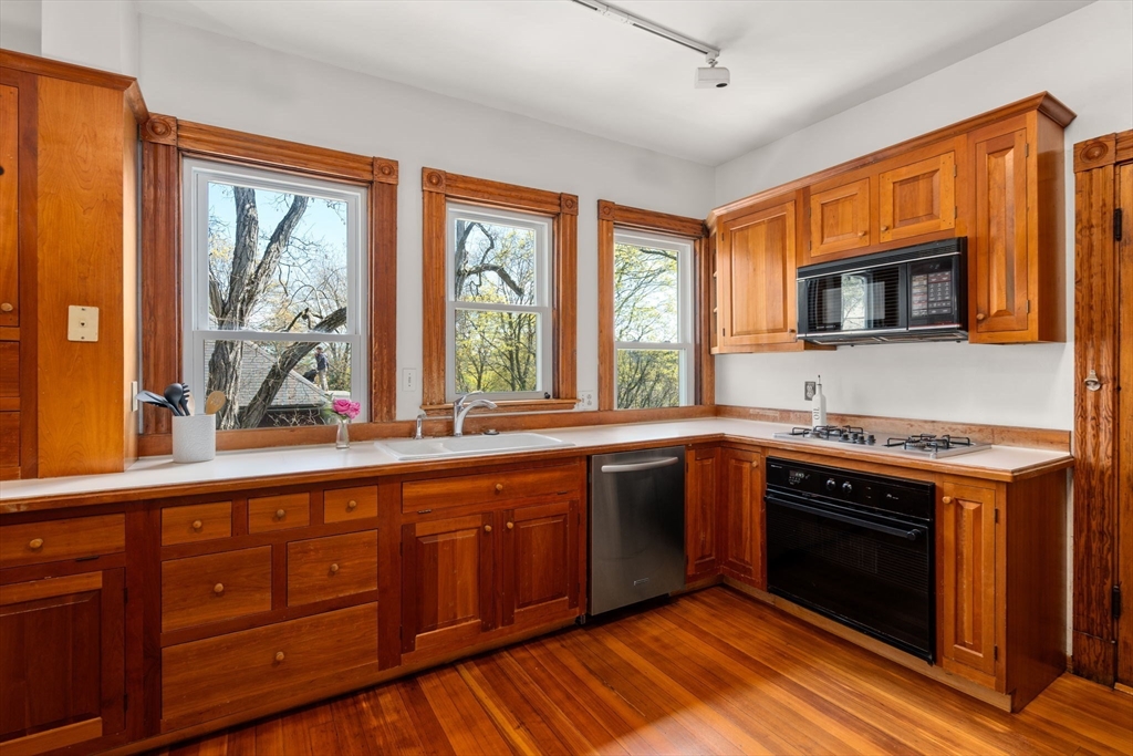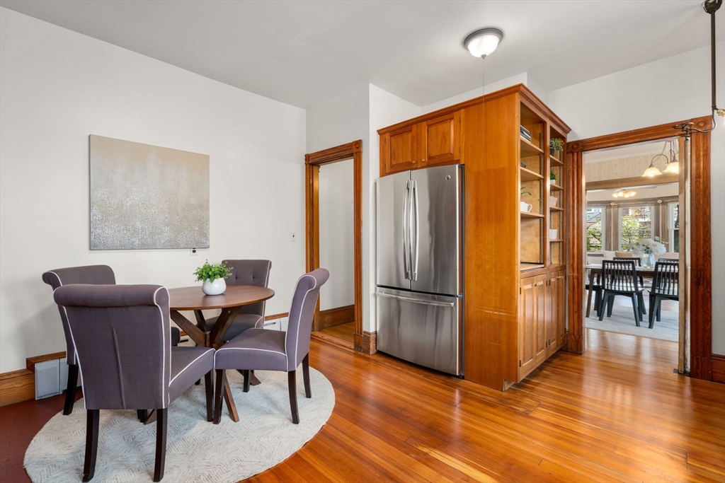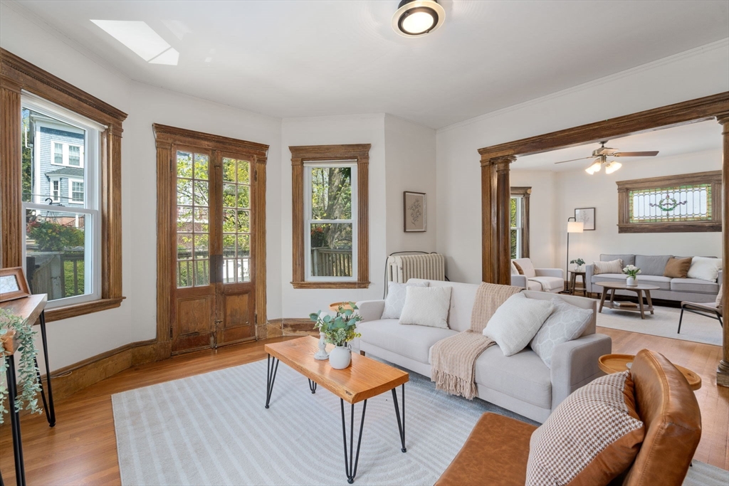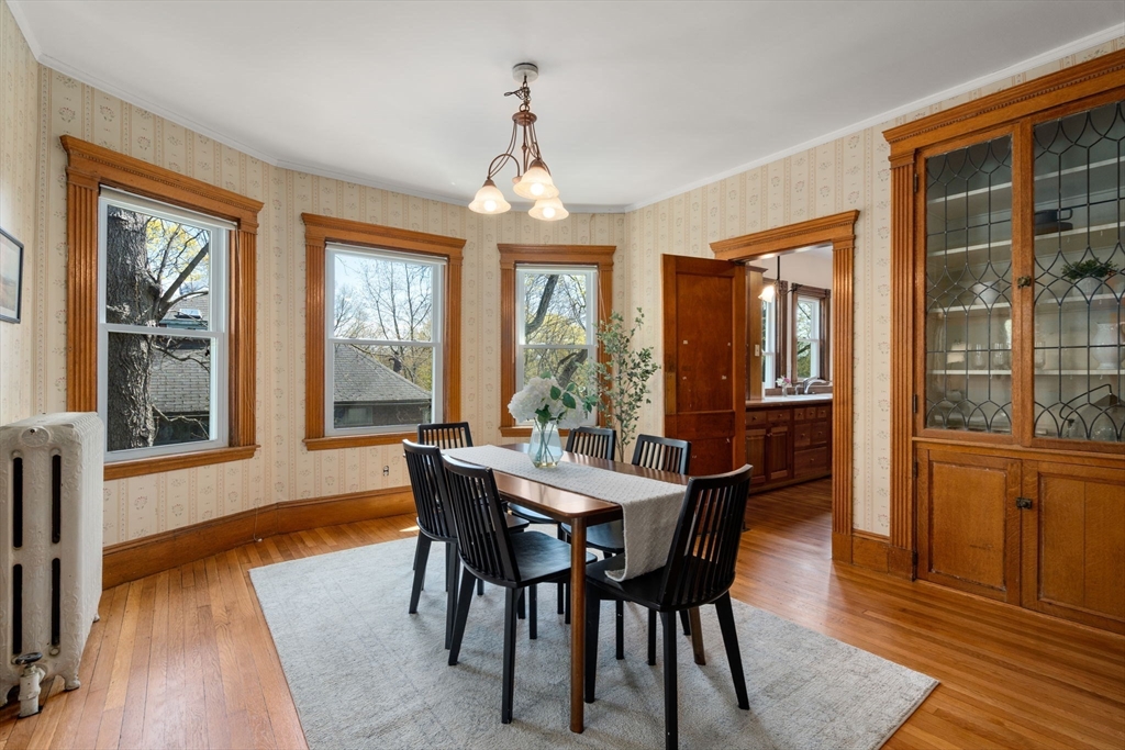 Perched atop a hill in a charming two-unit residence, this exceptional 10 room home offers 6 bedrooms and 3.5 bathrooms with magnificent treetop views and stunning sunsets. Spanning two levels, the residence is designed for today’s lifestyle. The home offers generous light and lives like a single-family residence. The first floor has great flow from living, dining and family rooms to the kitchen. The top floor comes with 5 beds, 2 baths and a laundry room. The home features hardwood floors throughout, high ceilings, and generous natural light. Additional highlights include a spacious finished basement with a full bath, abundant storage, and a tankless hot water heating system. Parking is convenient with one garage space plus two additional outdoor spots. Located in the highly sought-after Driscoll School district, this property is also close to the shops, restaurants, and Green Line “T” in Coolidge Corner and Washington Square, offering both neighborhood charm and city convenience.