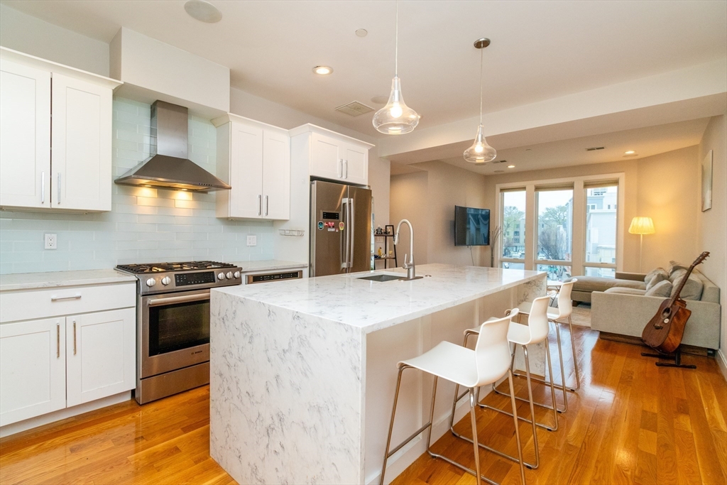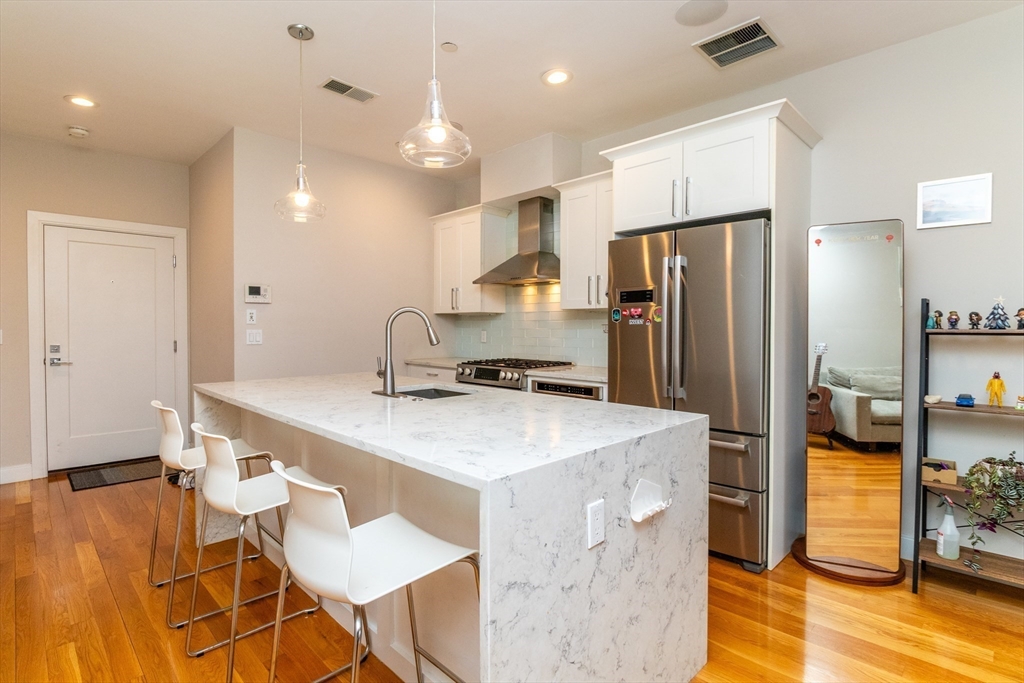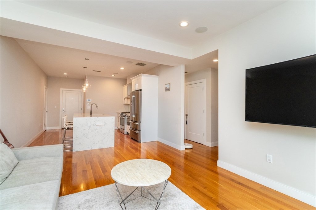 Rarely available at 275 Old Colony Ave, this sun-drenched 2-bedroom, 2-bath residence is a true standout and a must-see, thoughtfully designed with modern finishes and seamless indoor-outdoor living in the heart of South Boston. This open-concept home features floor-to-ceiling windows, hardwood floors, and a sleek chef’s kitchen with custom cabinetry, Bosch stainless steel appliances, and quartz waterfall countertops. Both bedrooms are well-proportioned with custom closets, including a primary suite with a beautifully appointed bath featuring a frameless glass shower and rainfall fixture. Enjoy a spacious private open-air balcony, perfect for dining or lounging. Additional highlights include central air, built-in surround sound, in-unit laundry, private storage, and 1 garage parking space. Ideally located near public transportation, beaches, and neighborhood amenities, this home offers the perfect blend of comfort, style, and convenience, to be delivered partially furnished.