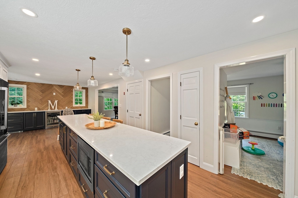 Welcome to 89 Sunset Way, where elegance meets functionality in this expansive home. Nestled in the serene Edgewater neighborhood, this exquisite property offers 4 bedrooms, 3.5 bathrooms and approximately 4,000 square feet of refined living space. Stepping inside from the new front walk-way and new front door, you’ll discover a gorgeous custom kitchen adorned with modern finishes and top-of-the-line appliances, serving as the heart of the home. The spacious living room flaunts a gorgeous beamed ceiling and a custom stone gas fireplace. The inviting ambiance extends throughout the first floor, complimented by luxury vinyl flooring and cozy sunroom. All bathrooms have brand new vanities w/ Quartz countertops. The newly finished lower level features a brand new boiler, new water heater, a half bathroom, and a pool room that opens up to the outdoor oasis. The heated pool provides the ideal setting for summer parties or quiet days basking in the sun, don't miss out on this Pembroke beauty!