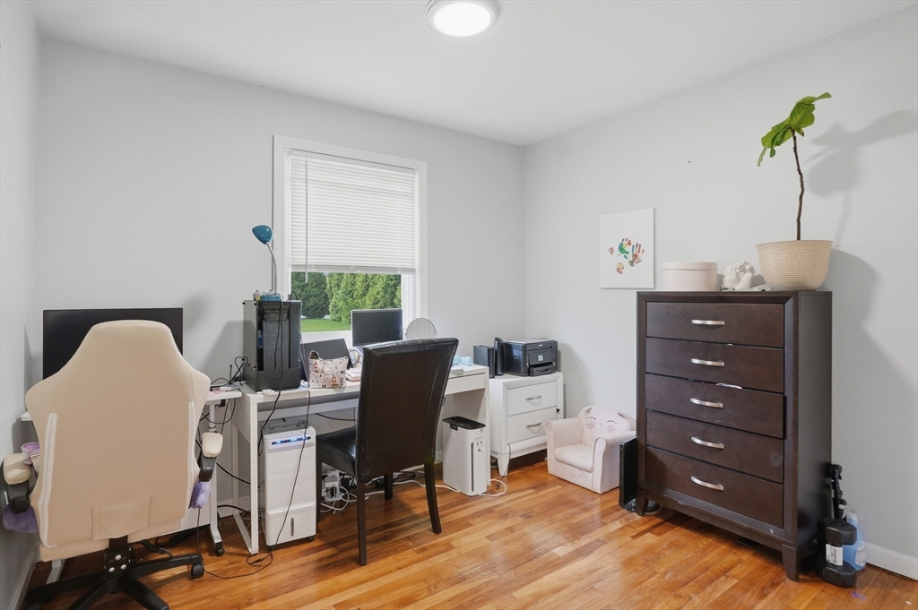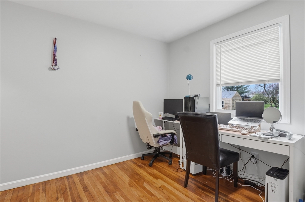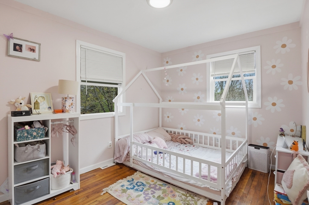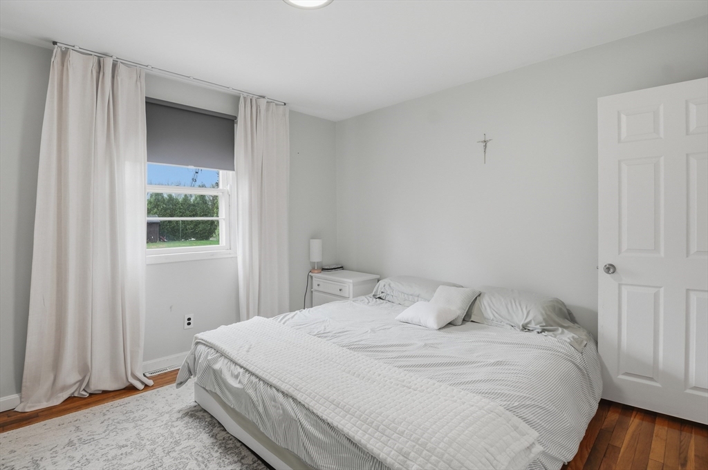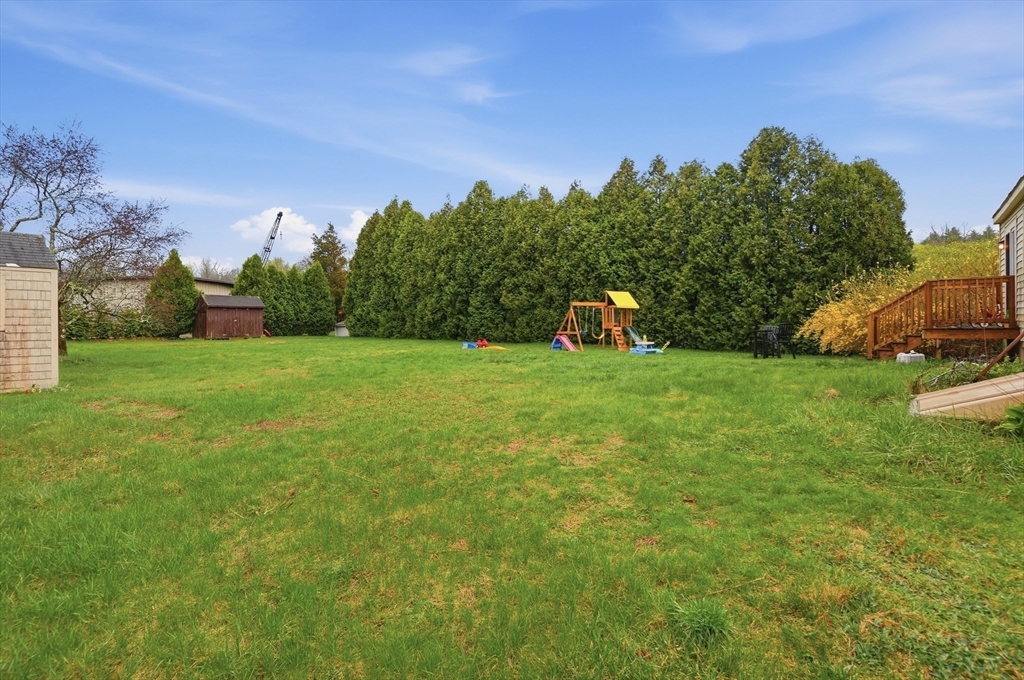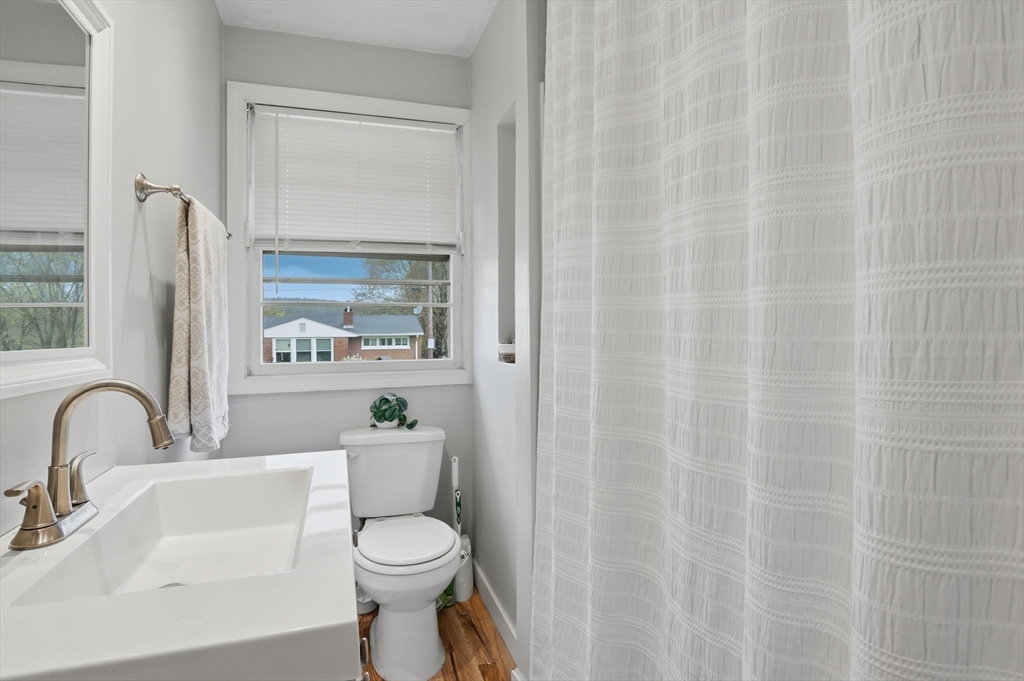 Perfectly situated on a dead-end street, this charming 3-bed, 1-bath split-entry blends comfort, style, and convenience—ideal for first-time buyers or down-sizers. The light-filled open layout features a welcoming living room with a bow window and soaring vaulted ceilings with exposed beams. The eat-in kitchen was updated just 2 years ago with white shaker cabinets, stainless steel appliances, quartz countertops, plus updated electrical and plumbing. A breakfast bar, tiled backsplash, and slider to the back deck enhance functionality and flow. Down the hall are three comfortable bedrooms with hardwood flooring and a full bath with tub and shower. Set on a spacious .37-acre lot, the level backyard offers endless possibilities for entertaining, relaxing, or creating your dream outdoor space. Enjoy the level yard and storage shed, all while being tucked away yet conveniently located near Routes 169 and 131.
