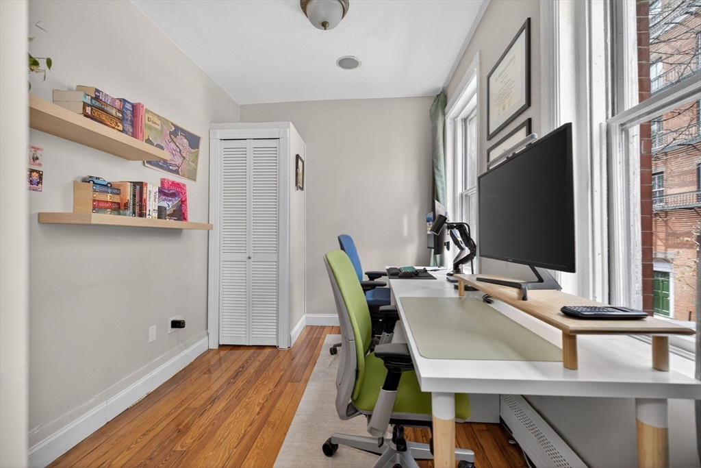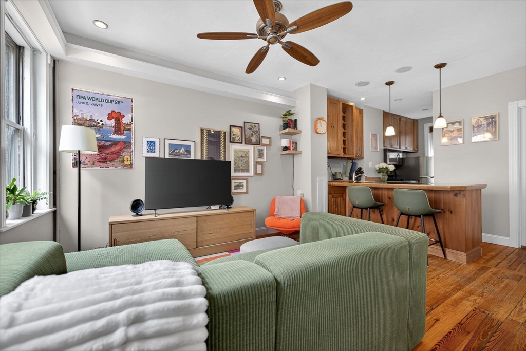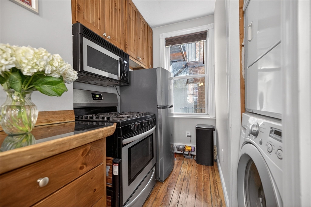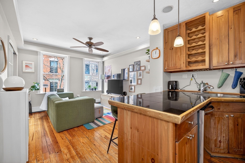 Elegant front-facing second-floor two-bedroom, one-bath home in the heart of historic Beacon Hill. This charming condo showcases beautiful pine floors throughout and an abundance of natural light, creating a warm and inviting ambiance. The sun-drenched living area opens seamlessly to an open-concept kitchen featuring an eat-in peninsula, granite countertops, and stainless steel appliances with a gas range. In-unit laundry adds everyday convenience. An excellent opportunity for both first-time buyers and investors, ideally situated near MGH, Mass Eye & Ear, Whole Foods, and the vibrant shops and restaurants of Charles Street.