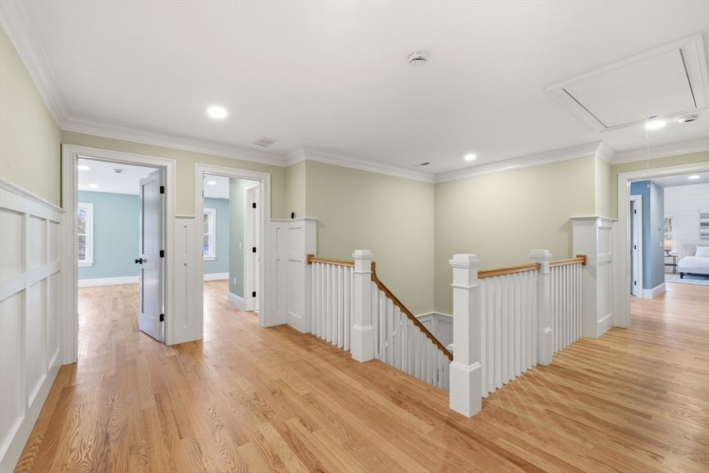 Not your average five-bedroom. This one has personality from the start — a welcoming front porch, that barn-style detail over the garage, and herringbone hardwood floors in the foyer that immediately set the tone. Inside, the living room features a full wall of built-ins ready for books, photos, and everything that makes a house feel like home. The dining room is oversized and designed for hosting, with a butler’s pantry and a walk-in pantry that connect seamlessly to the kitchen. The kitchen delivers — big, functional, and loaded with storage — and it opens right into the great room with a gas fireplace, so no one misses the conversation. Tucked behind the oversized mudroom is a flexible bedroom and full bath, perfect for guests or extended stays. Out back, a deck leads to a patio with a fire pit and a yard ready for soccer games or a swingset. Upstairs, the primary suite offers three walk-in closets and a sitting area. One ensuite bedroom, plus two with a Jack and Jill.