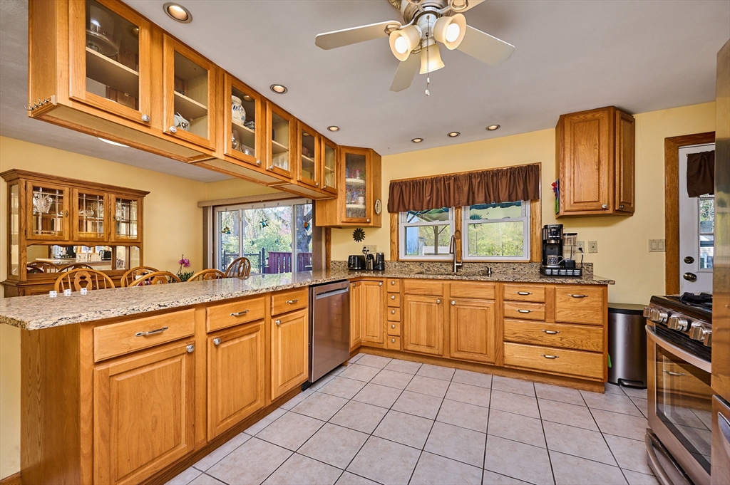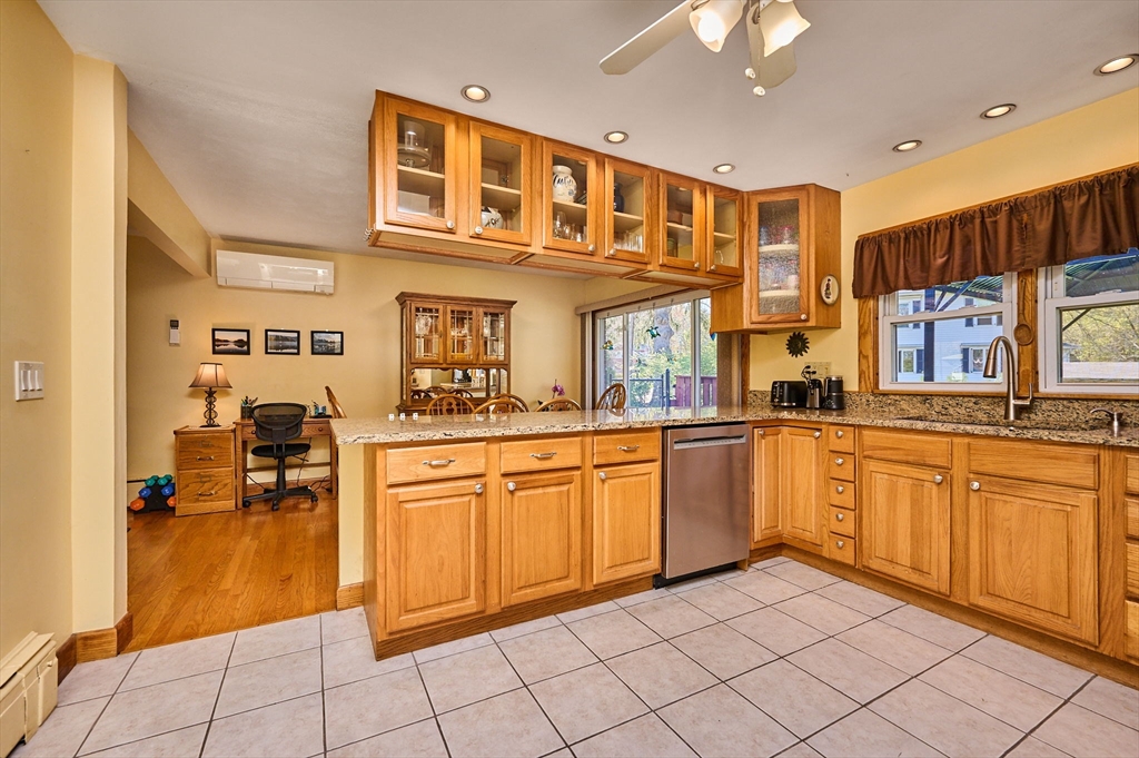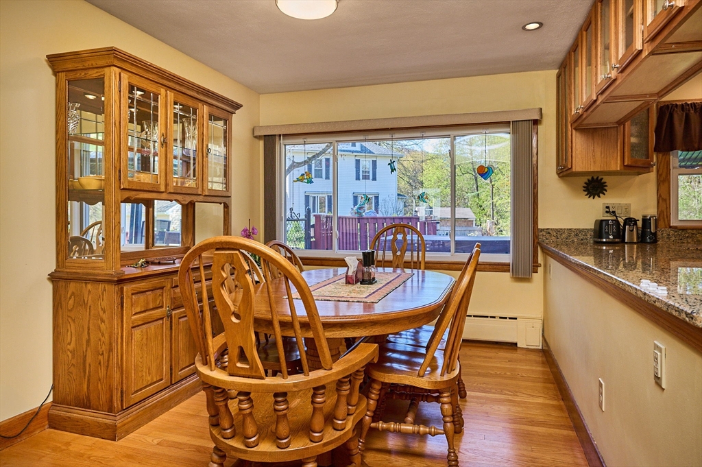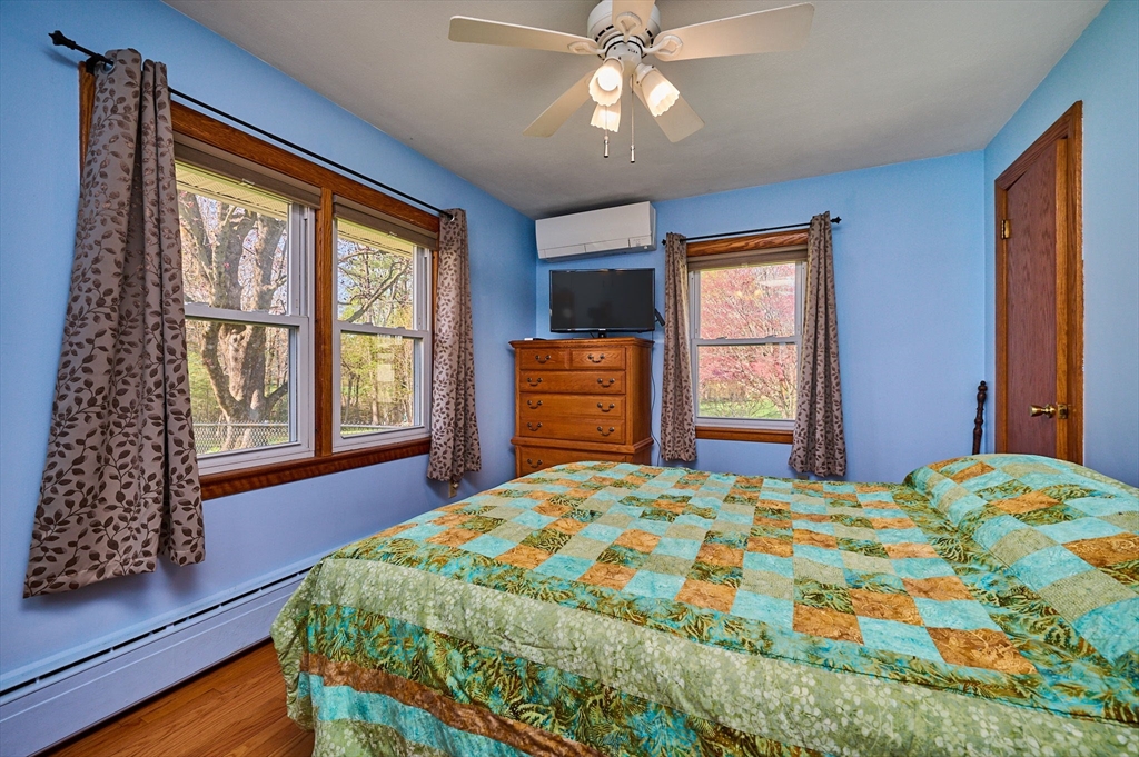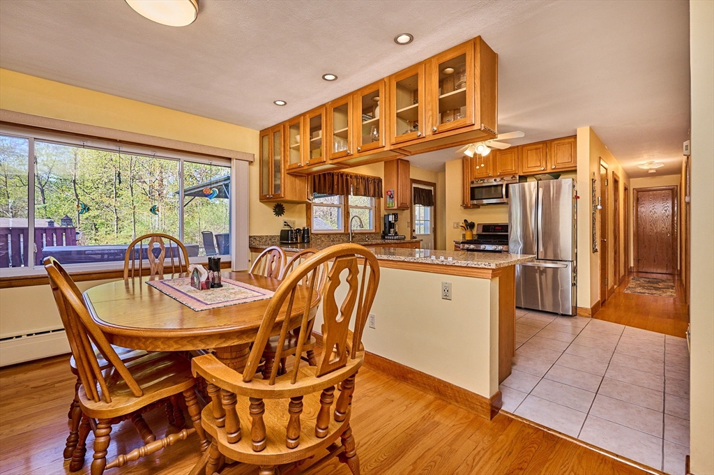 What a great location near the base of Mt. Tom on a quiet street yet close to all that Easthampton has to offer! The spacious living room has hardwood flooring, a beautiful fireplace flanked by custom built-ins, and is open to a good size dining area. The kitchen is nicely updated with granite counters and stainless steel appliances. There are three bedrooms and a full bath that is also tastefully remodeled with a tiled surround. You will enjoy your outdoor time with a rear deck that leads to a spacious, fenced yard with a hot tub and outdoor shower. Some of the recent updates include a new roof (10/23) with a solar powered vent fan & transferable warrantee, granite countertop in kitchen, remodeled bath with tiled shower, attic insulation and perimeter sealing, newer driveway, and Mini Splits for efficient cooling or heating. All in a convenient, peaceful setting! OPEN HOUSE Sun. April 26, 11 to 12:30.